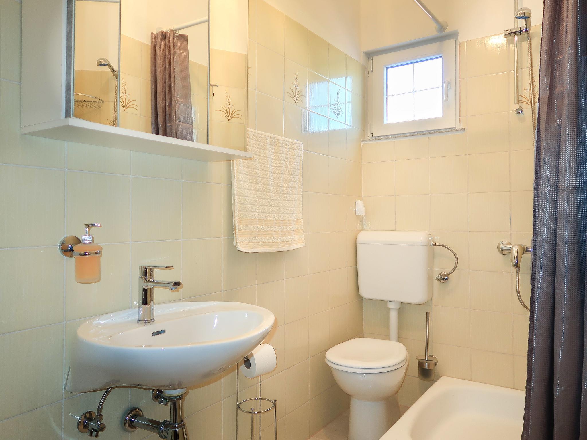 3-room apartment 60 m2 on 1st floor. Object suitable for 6 adults + 1 child. Partly renovated in 2019, comfortable furnishings: 1 room with 1 double bed (2 x 90 cm, length 200 cm), 1 folding bed, shower/WC, satellite TV and air conditioning. Exit to the balcony. 1 room with 1 double bed (2 x 90 cm, length 200 cm), shower/WC, satellite TV and air conditioning. 1 room with 1 double bed (2 x 90 cm, length 200 cm), shower/WC, satellite TV and air conditioning. Exit to the balcony. Dining room with satellite TV. Exit to the veranda. Open kitchen (oven, dishwasher, 4 ceramic glass hob hotplates, toaster, kettle, microwave, freezer, electric coffee machine). Forced-air heating. 2 balconies 5 m2, lawn 10 m2. Terrace furniture, balcony furniture, barbecue. Partial view of the sea. Facilities: mosquito net, children's high chair, baby cot (extra). Internet (WiFi, free). Please note: non-smoking house. Maximum 1 pet/ dog allowed. Fire extinguisher. Veranda (terrace furniture, sat/TV).