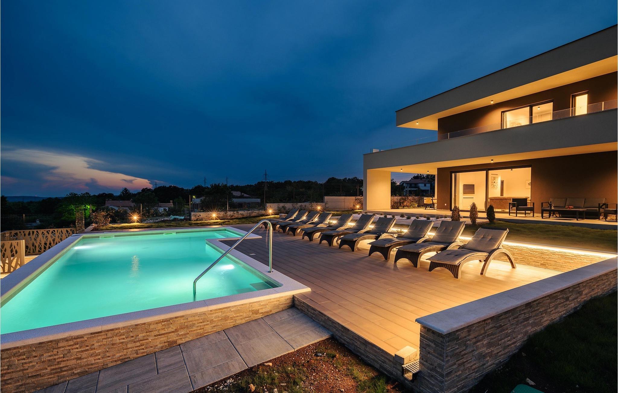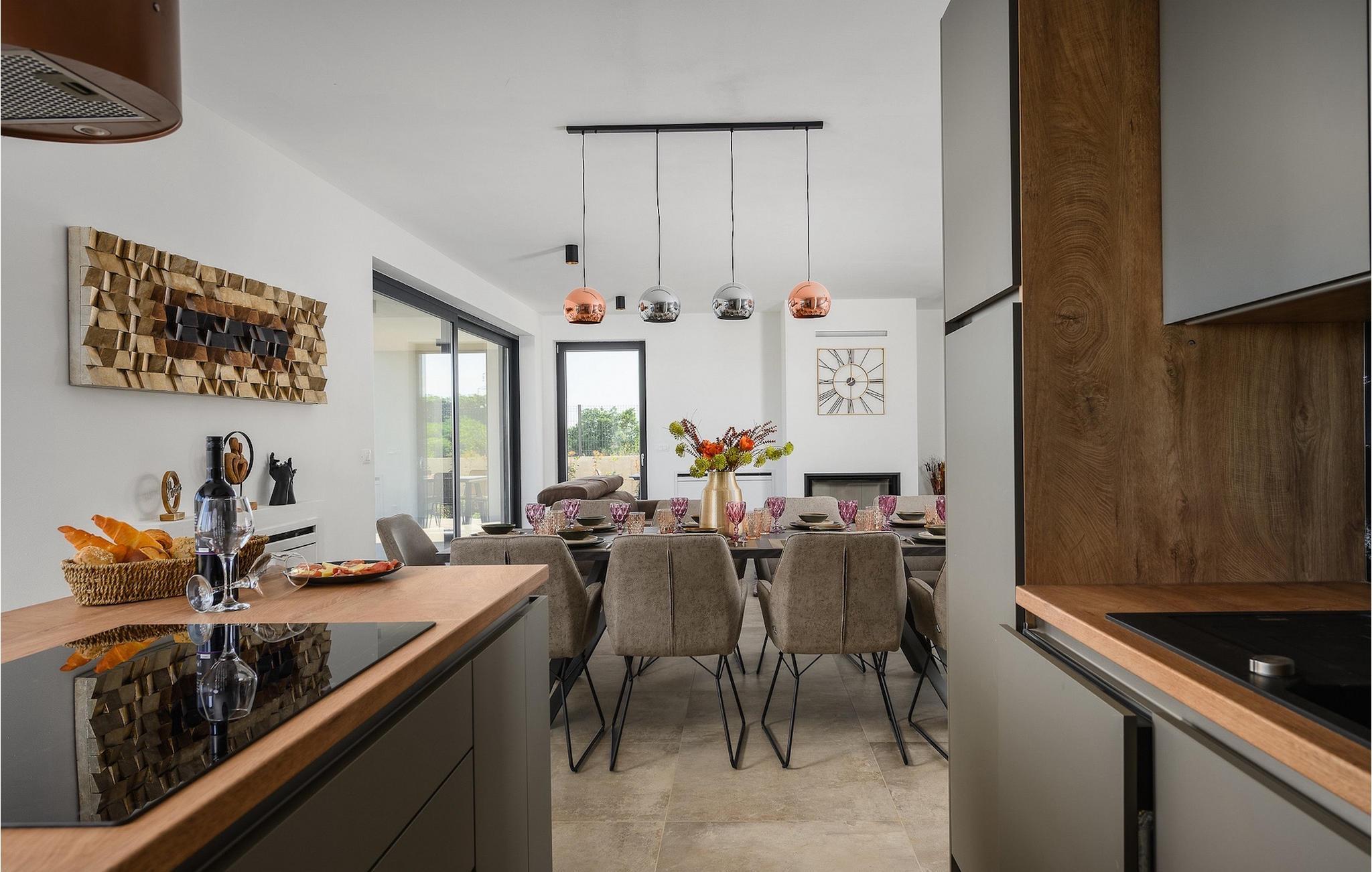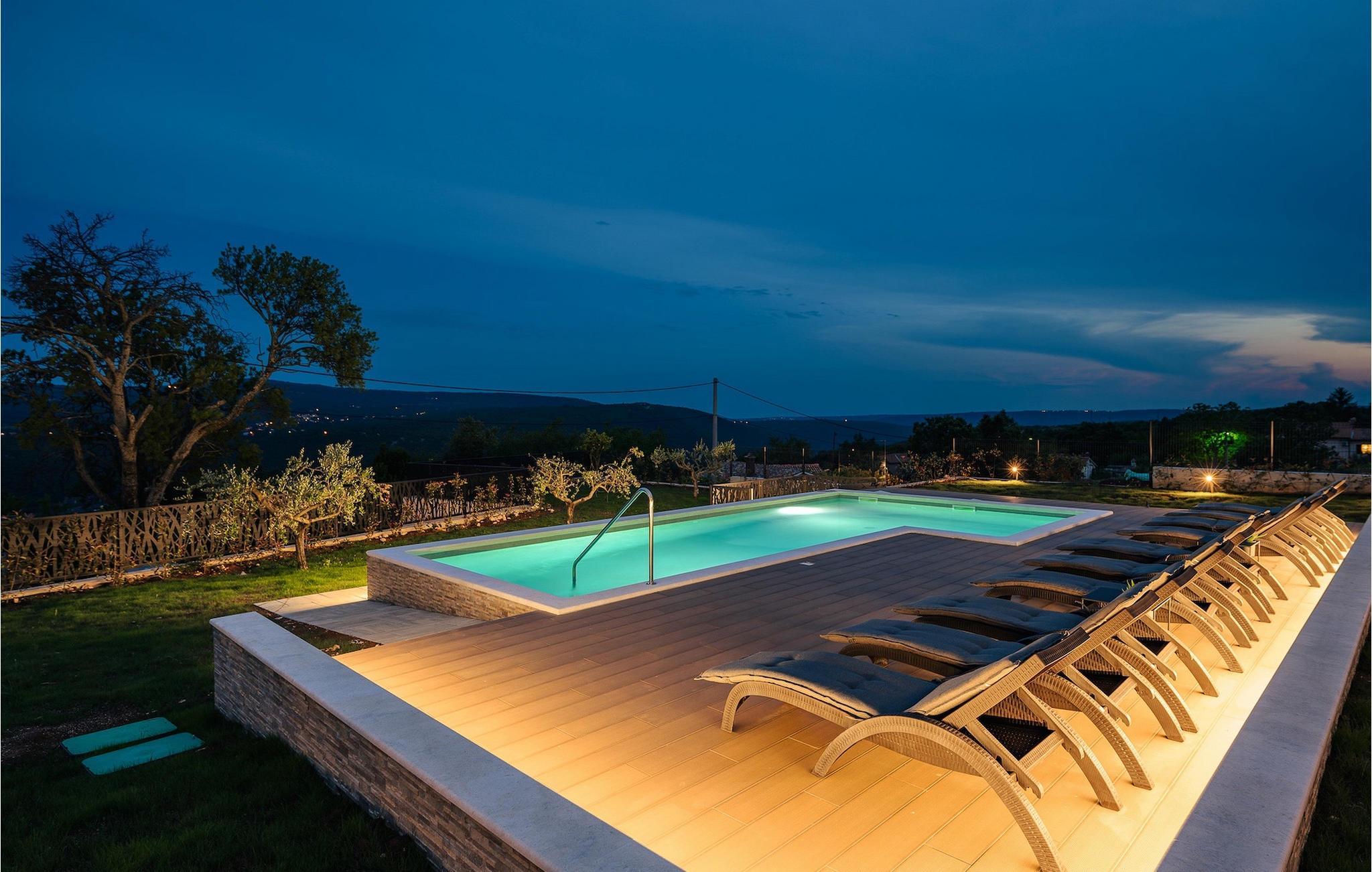 Die wunderschöne Villa De la vie im Dorf St. Bartul ist ideal für einen unvergesslichen Urlaub mit Familie und Freunden. Vor der Villa befindet sich ein wunderschöner Pool von 38 m2, in dem Sie sich während der Sommerhitze erfrischen oder erfrischende Getränke trinken und die Strahlen der istrischen Sonne auf den Liegestühlen am Pool genießen können. Genießen Sie traditionelle Mahlzeiten in einem überdachten Bereich mit Esstisch für 10. Vergnügen Sie sich mit den jüngsten Familienmitgliedern auf dem Trampolin vor der Villa. Im Erdgeschoss der Villa gibt es einen offenen, lichtdurchfluteten Raum, in dem sich ein gemütliches Wohnzimmer, eine voll ausgestattete Küche und ein Esszimmer mit 10 Sitzplätzen befinden. Das erste Schlafzimmer mit eigenem Bad und Doppelbett sowie einer separaten Toilette befindet sich im Erdgeschoss der Villa. Die restlichen 4 Schlafzimmer befinden sich im ersten Stock und sind mit Doppelbetten und eigenem Bad ausgestattet. Alle Schlafzimmer verfügen über Klimaanlage und Fernseher. Genießen Sie den Morgen auf der Terrasse der Villa im ersten Stock bei Kaffee und der istrischen Atmosphäre. Villa De la Vie bietet Ihnen den Urlaub, den Sie sich wünschen, und lässt Sie den Charme der istrischen Atmosphäre genießen. Dieser attraktive, inhaltsreiche Urlaub in St. Bartul wird Sie bestimmt begeistern. Villa De la vie ist kein Partyhaus und Jugendgruppen sind nicht erlaubt. Villa De la vie befindet sich im Dorf St. Bartul in der Nähe von Labin. Alle Liebhaber des Landlebens werden von den traditionellen Gerichten dieses Teils Istriens und der charmanten Bevölkerung begeistert sein. Lernen Sie die Umgebung von Labin auf dem Radweg kennen, der von Sveti Bartul zur Berghütte Skitaca führt. Besuchen Sie die Touristenzentren Rabac und Labin. Rabac ist bekannt für seine natürliche Schönheit, bezaubernde Kaps und Strände, während die mittelalterliche Stadt Labin voller Inhalte ist. Werfen Sie auch einen Blick auf das Nationalmuseum und die Gedenksammlung von Matija Vlacic Iliriko. Folgen Sie den Spuren der Labiner Bergleute auf einer interessanten und attraktiven Route. Entdecken Sie durch die bezaubernden engen Gassen von Labin das reiche Angebot lokaler Restaurants und Konobas. Der Hauptplatz der Stadt wird Sie mit seiner hervorragend erhaltenen Loggia aus dem 16. Jahrhundert begeistern. Wir empfehlen Ihnen auch, die größte istrische Stadt Pula zu besuchen. Bewundern Sie das imposante römische Amphitheater in Pula und viele andere historische Denkmäler. Besuchen Sie den Naturpark Ucka, der reich an natürlicher Schönheit und vielfältiger Flora und Fauna ist.