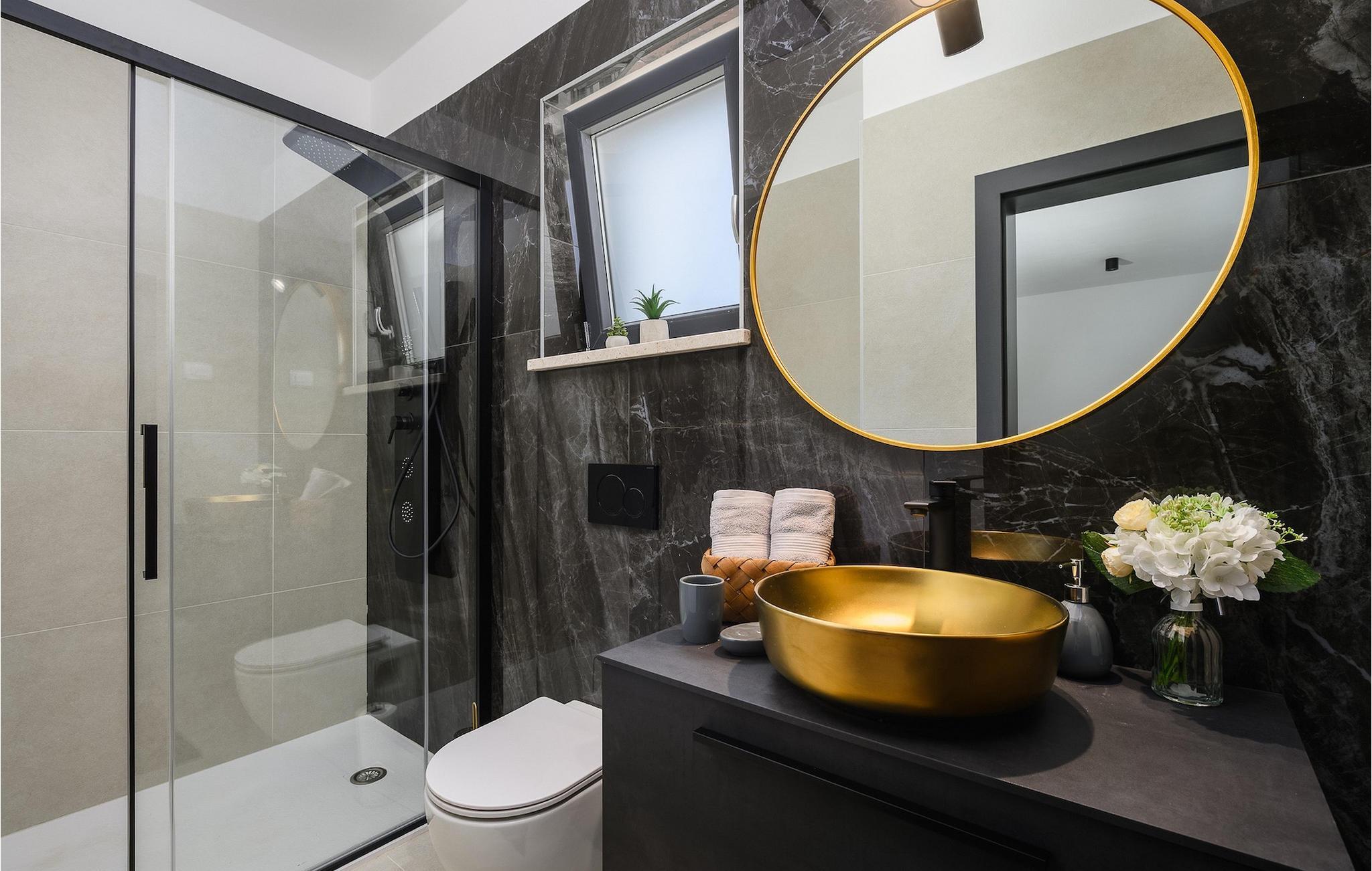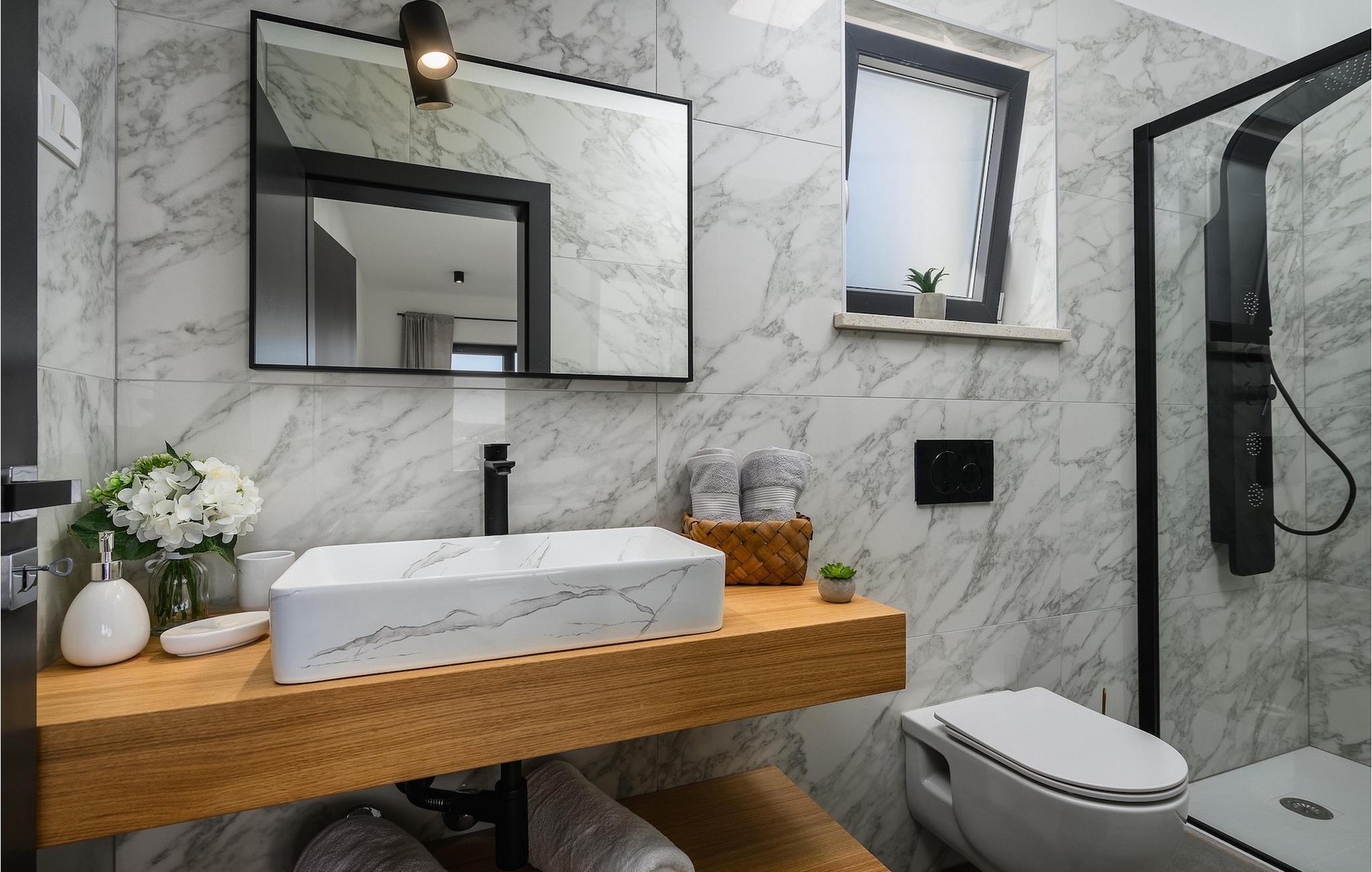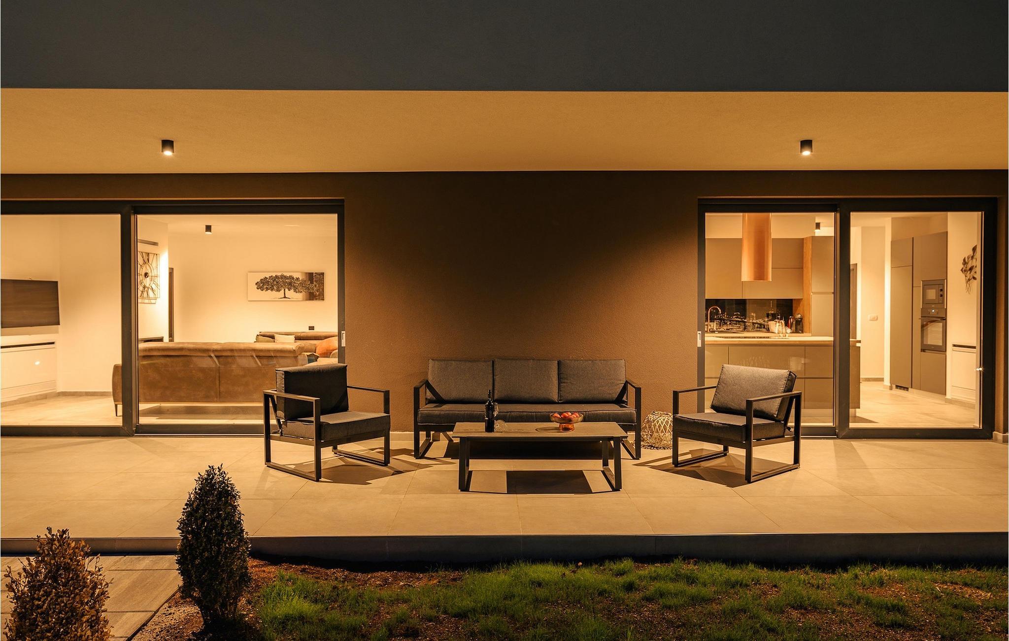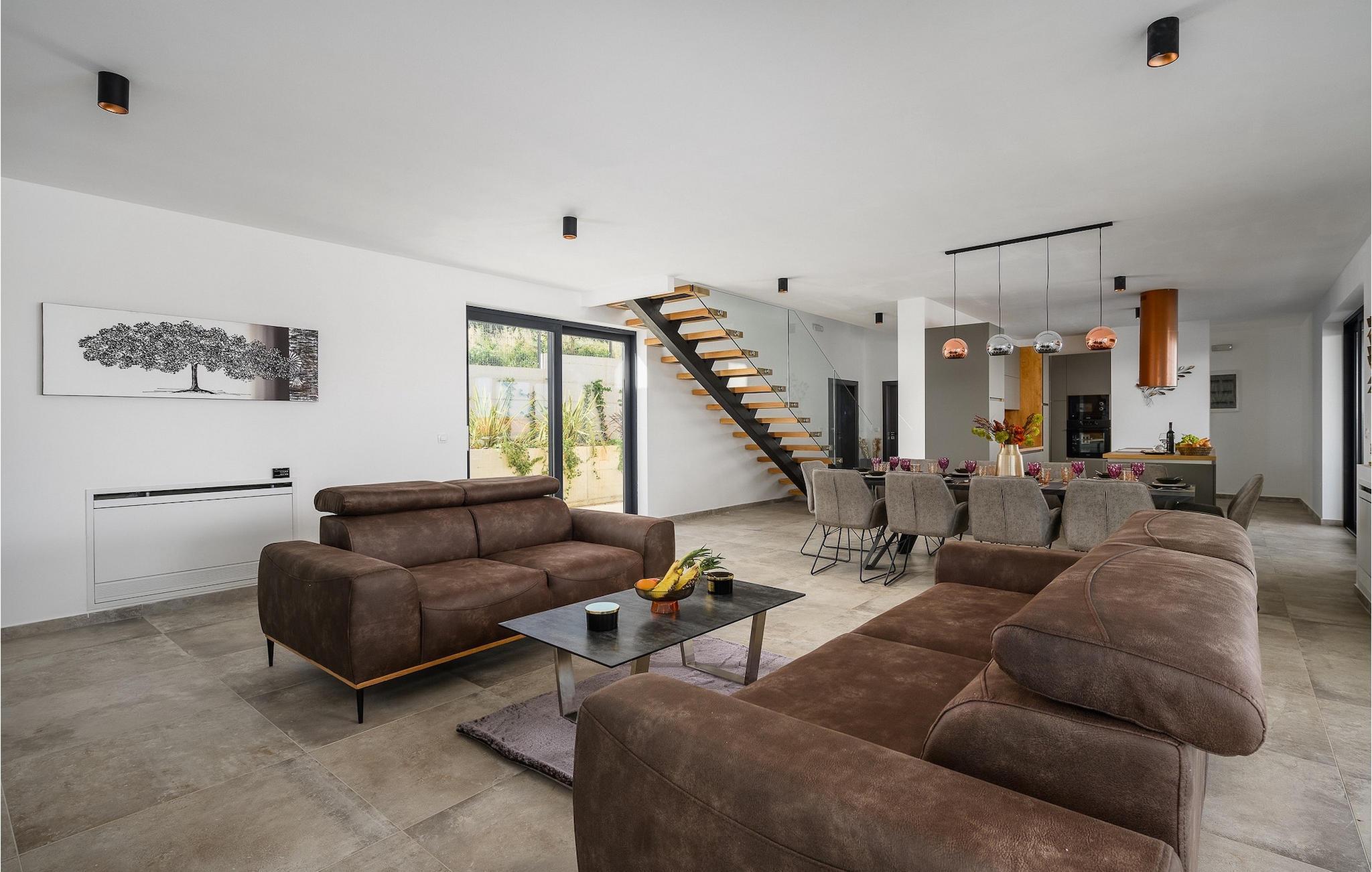 Die wunderschöne Villa De la vie im Dorf St. Bartul ist ideal für einen unvergesslichen Urlaub mit Familie und Freunden. Vor der Villa befindet sich ein wunderschöner Pool von 38 m2, in dem Sie sich während der Sommerhitze erfrischen oder erfrischende Getränke trinken und die Strahlen der istrischen Sonne auf den Liegestühlen am Pool genießen können. Genießen Sie traditionelle Mahlzeiten in einem überdachten Bereich mit Esstisch für 10. Vergnügen Sie sich mit den jüngsten Familienmitgliedern auf dem Trampolin vor der Villa. Im Erdgeschoss der Villa gibt es einen offenen, lichtdurchfluteten Raum, in dem sich ein gemütliches Wohnzimmer, eine voll ausgestattete Küche und ein Esszimmer mit 10 Sitzplätzen befinden. Das erste Schlafzimmer mit eigenem Bad und Doppelbett sowie einer separaten Toilette befindet sich im Erdgeschoss der Villa. Die restlichen 4 Schlafzimmer befinden sich im ersten Stock und sind mit Doppelbetten und eigenem Bad ausgestattet. Alle Schlafzimmer verfügen über Klimaanlage und Fernseher. Genießen Sie den Morgen auf der Terrasse der Villa im ersten Stock bei Kaffee und der istrischen Atmosphäre. Villa De la Vie bietet Ihnen den Urlaub, den Sie sich wünschen, und lässt Sie den Charme der istrischen Atmosphäre genießen. Dieser attraktive, inhaltsreiche Urlaub in St. Bartul wird Sie bestimmt begeistern. Villa De la vie ist kein Partyhaus und Jugendgruppen sind nicht erlaubt. Villa De la vie befindet sich im Dorf St. Bartul in der Nähe von Labin. Alle Liebhaber des Landlebens werden von den traditionellen Gerichten dieses Teils Istriens und der charmanten Bevölkerung begeistert sein. Lernen Sie die Umgebung von Labin auf dem Radweg kennen, der von Sveti Bartul zur Berghütte Skitaca führt. Besuchen Sie die Touristenzentren Rabac und Labin. Rabac ist bekannt für seine natürliche Schönheit, bezaubernde Kaps und Strände, während die mittelalterliche Stadt Labin voller Inhalte ist. Werfen Sie auch einen Blick auf das Nationalmuseum und die Gedenksammlung von Matija Vlacic Iliriko. Folgen Sie den Spuren der Labiner Bergleute auf einer interessanten und attraktiven Route. Entdecken Sie durch die bezaubernden engen Gassen von Labin das reiche Angebot lokaler Restaurants und Konobas. Der Hauptplatz der Stadt wird Sie mit seiner hervorragend erhaltenen Loggia aus dem 16. Jahrhundert begeistern. Wir empfehlen Ihnen auch, die größte istrische Stadt Pula zu besuchen. Bewundern Sie das imposante römische Amphitheater in Pula und viele andere historische Denkmäler. Besuchen Sie den Naturpark Ucka, der reich an natürlicher Schönheit und vielfältiger Flora und Fauna ist.