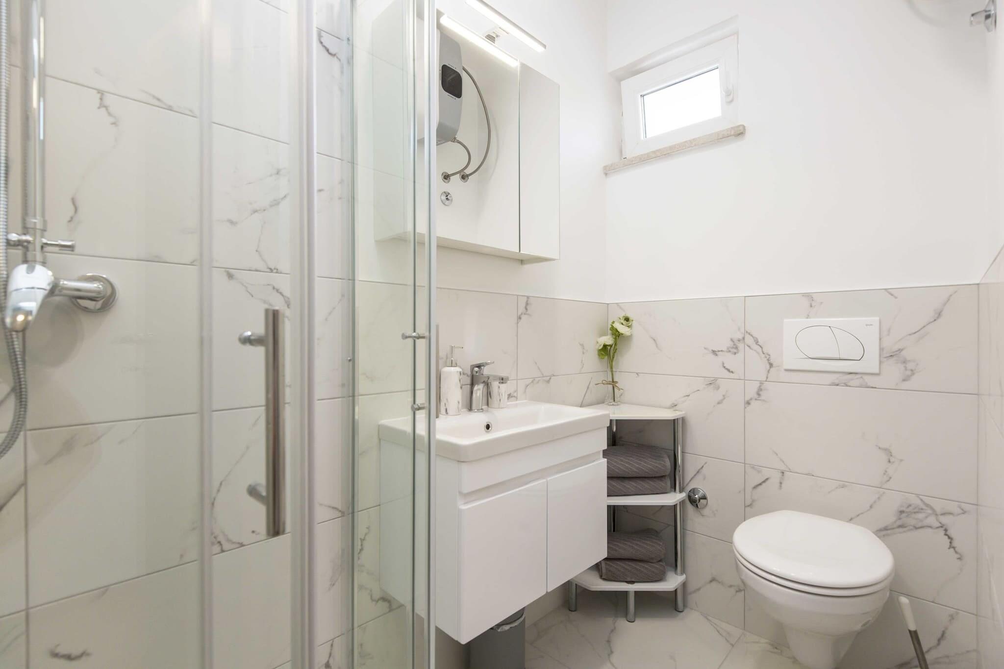 This charming holiday apartment, nestled in the peaceful countryside of Ripenda Verbanci, offers a perfect getaway for families or friends. The property features a private outdoor area with a well-maintained garden, a barbecue, and a furnished balcony, ideal for alfresco dining and relaxation. Inside, the apartment is comfortably furnished with a fully equipped kitchen, including a stove, fridge, freezer, coffee machine, and dishwasher, making it easy to prepare meals. Two spacious bedrooms with king-size beds ensure a restful stay for all guests. The apartment can accommodate up to 4 people. The property is ideally located just 3 kilometers from the town of Labin, offering easy access to restaurants, shops, and historical sites. Labin's Old Town, with its museums and galleries, provides a glimpse into the local history, while the Labin Castle offers panoramic views of Rabac and nearby islands. The popular Blue Flag beaches of Rabac, including Maslinica and Girandella, are just a short drive away and offer pristine waters and various water activities. Guests can enjoy the private 32-square-meter swimming pool and relax in the serene garden and terrace area, complete with garden furniture. The apartment also has two bathrooms with showers, air conditioning for year-round comfort, and essential amenities such as towels, linens, and free Wi-Fi. This holiday apartment is the ideal choice for those seeking a peaceful retreat while remaining close to the lively coastal attractions.