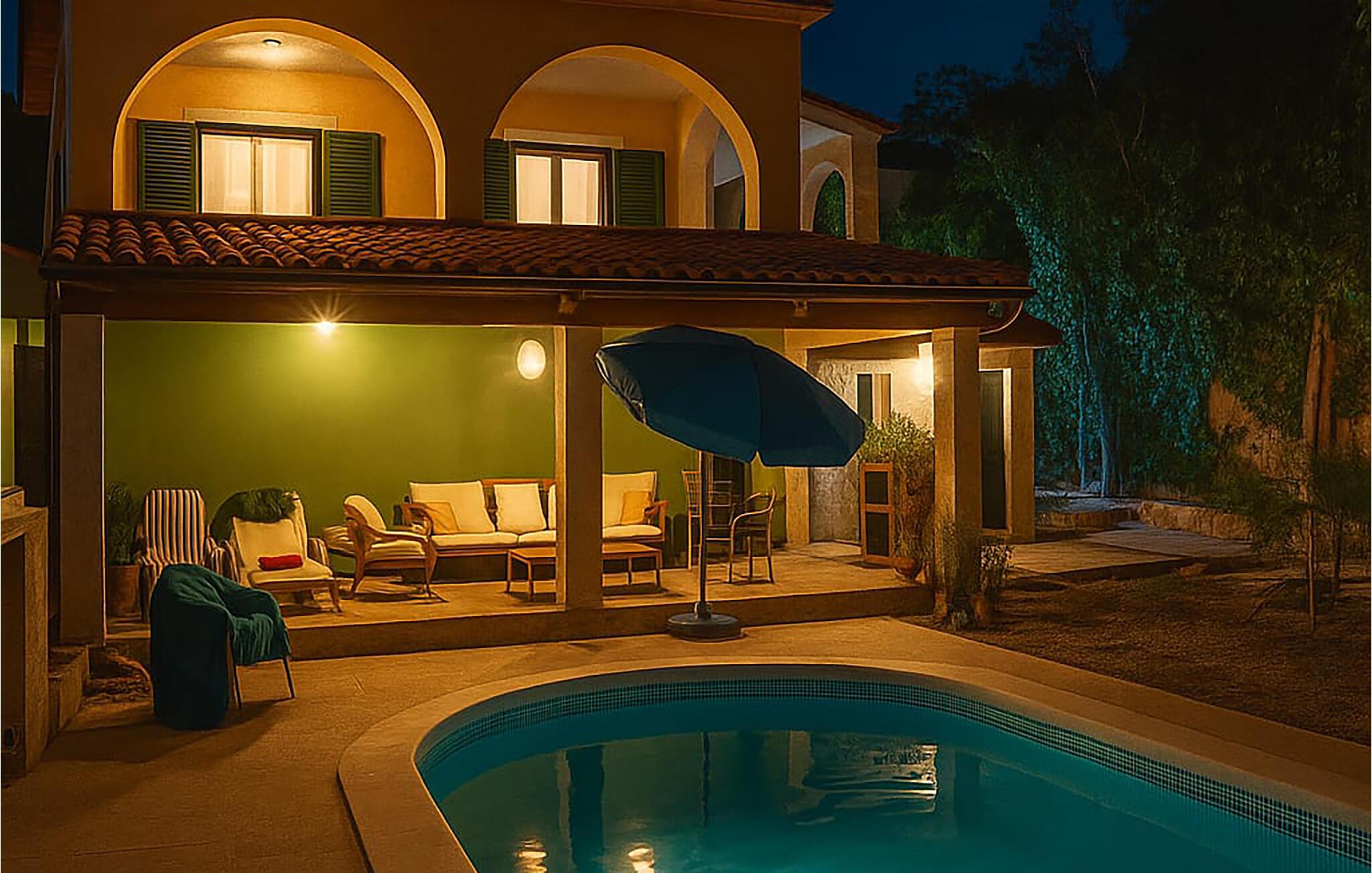 Verbringen Sie einen traumhaften Urlaub in diesem Ferienhaus mit Pool und Meerblick.