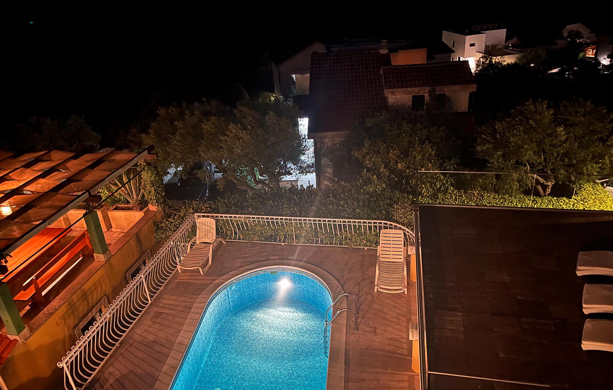 Ihr Ferienhaus in Stivasnica bietet Ihnen modernsten Komfort inmitten der Natur. Genießen Sie die schönen Annehmlichkeiten, wie den beheizten Pool und den großzügigen Whirlpool, in denen Sie sich nach einem Tag voller Entdeckungen entspannen können. Das Haus bietet Ihnen absolute Privatsphäre. Entspannen Sie in der gemütlichen Lounge-Zone und lassen Sie die Seele baumeln. Das Haus erstreckt sich über zwei Etagen und ein zusätzliches Erdgeschoss und bietet Ihnen reichlich Platz, um mit der Familie oder Freunden einen komfortablen Urlaub zu verbringen. Nutzen Sie das separate Studio-Apartment für noch mehr Flexibilität, ideal für Paare oder Gäste, die ein wenig mehr Ruhe suchen.