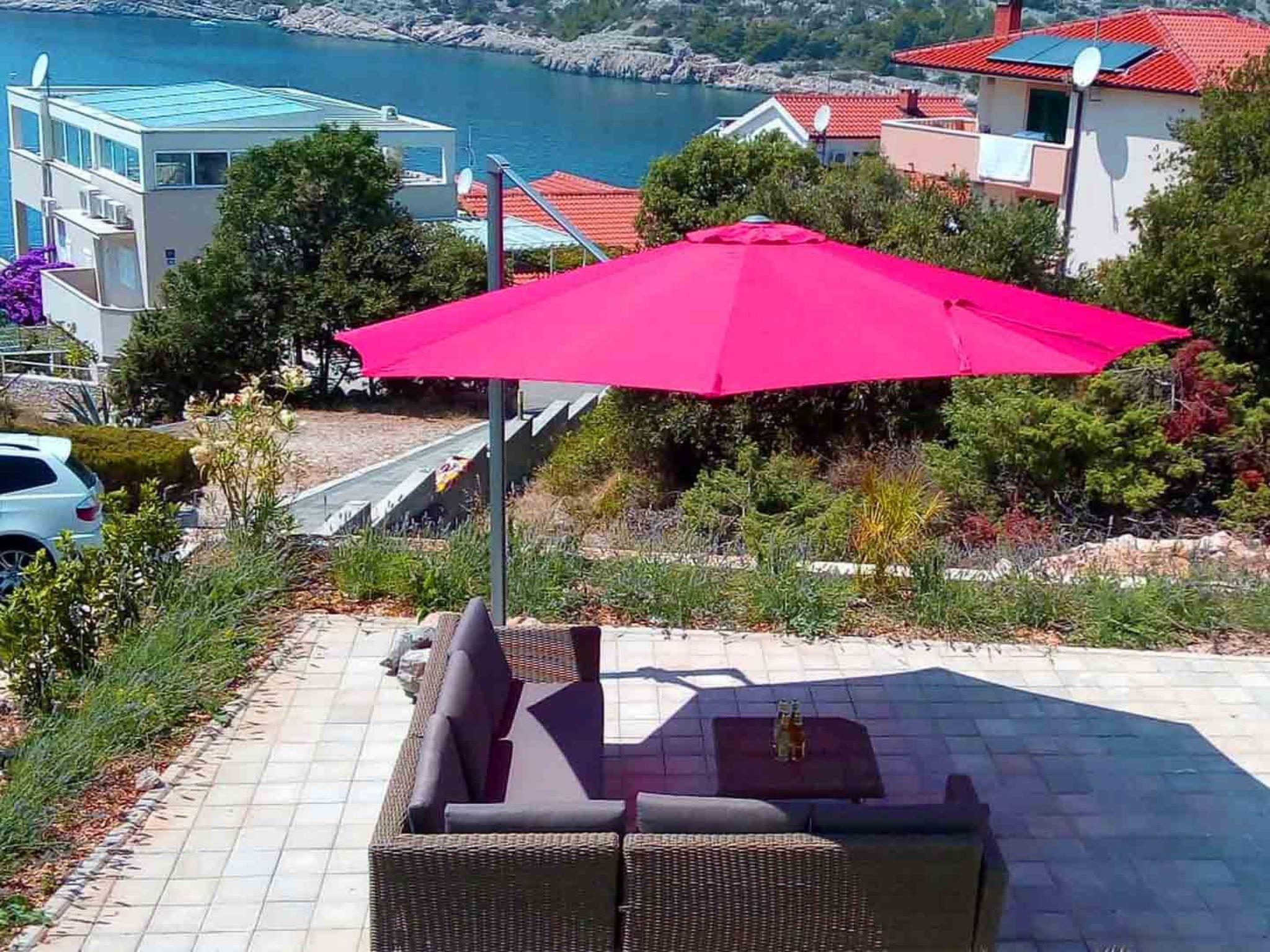 The outdoor area is designed as a comfortable garden equipped with outdoor table and chairs and a lounge area, while the guests can find refreshment in the heated outdoor pool (21 m2) with waterfall feature or soak up the sunshine on sun loungers around the pool, all while admiring the breathtaking seaview. Those who enjoy cooking outdoors will have outdoor barbecue on disposal.