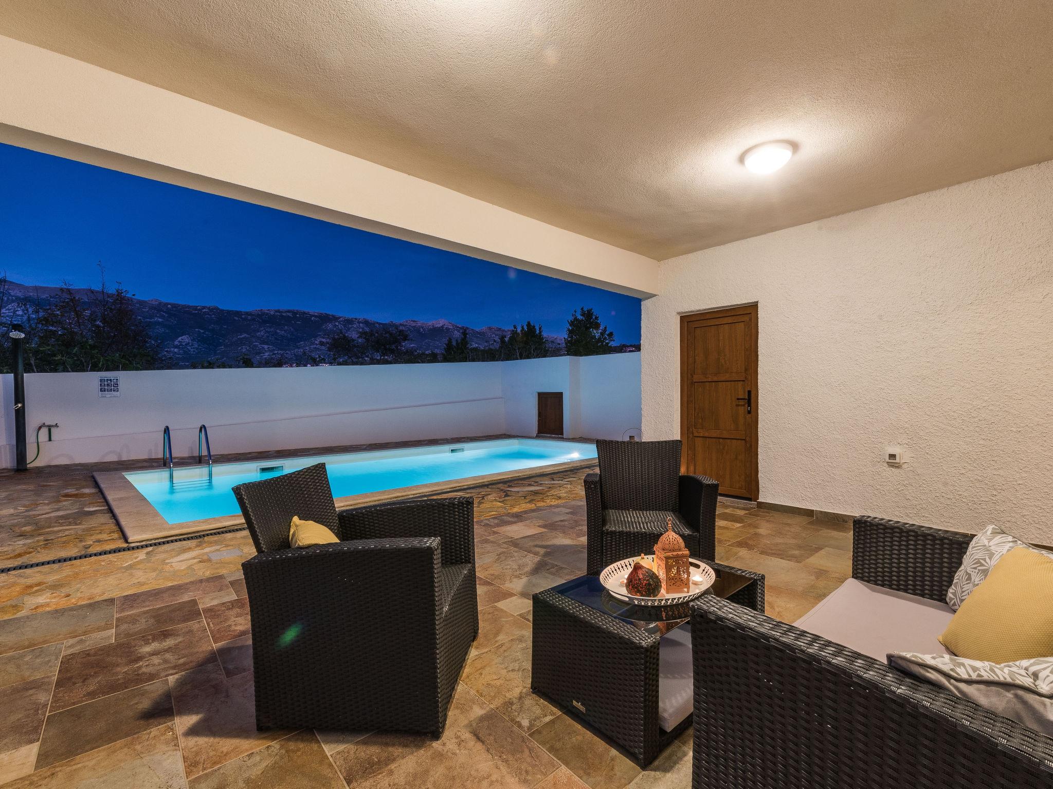 Single-family house "Velebit", 2 storeys. 12 km from the centre of Starigrad-Paklenica, in a sunny position, 250 m from the sea, 250 m from the beach. Private: property 830 m2, lawn and wildlife garden, swimming pool angular (8 x 4 m, depth 140 cm, seasonal availability: 04.May. - 28.Sep.). Outdoor shower, garden furniture, barbecue (slide). In the house: internet access, table tennis, washing machine, tumble dryer. Parking (for 3 cars) at the house on the premises. Shop 1 km, restaurant 1 km, café 200 m, bus stop 1.3 km, pebble beach 250 m. Nearby attractions: NP Paklenica 12 km, Cave Modric 2 km. Groups of teenagers on request only. By groups of young people double deposit is requested on arrival.