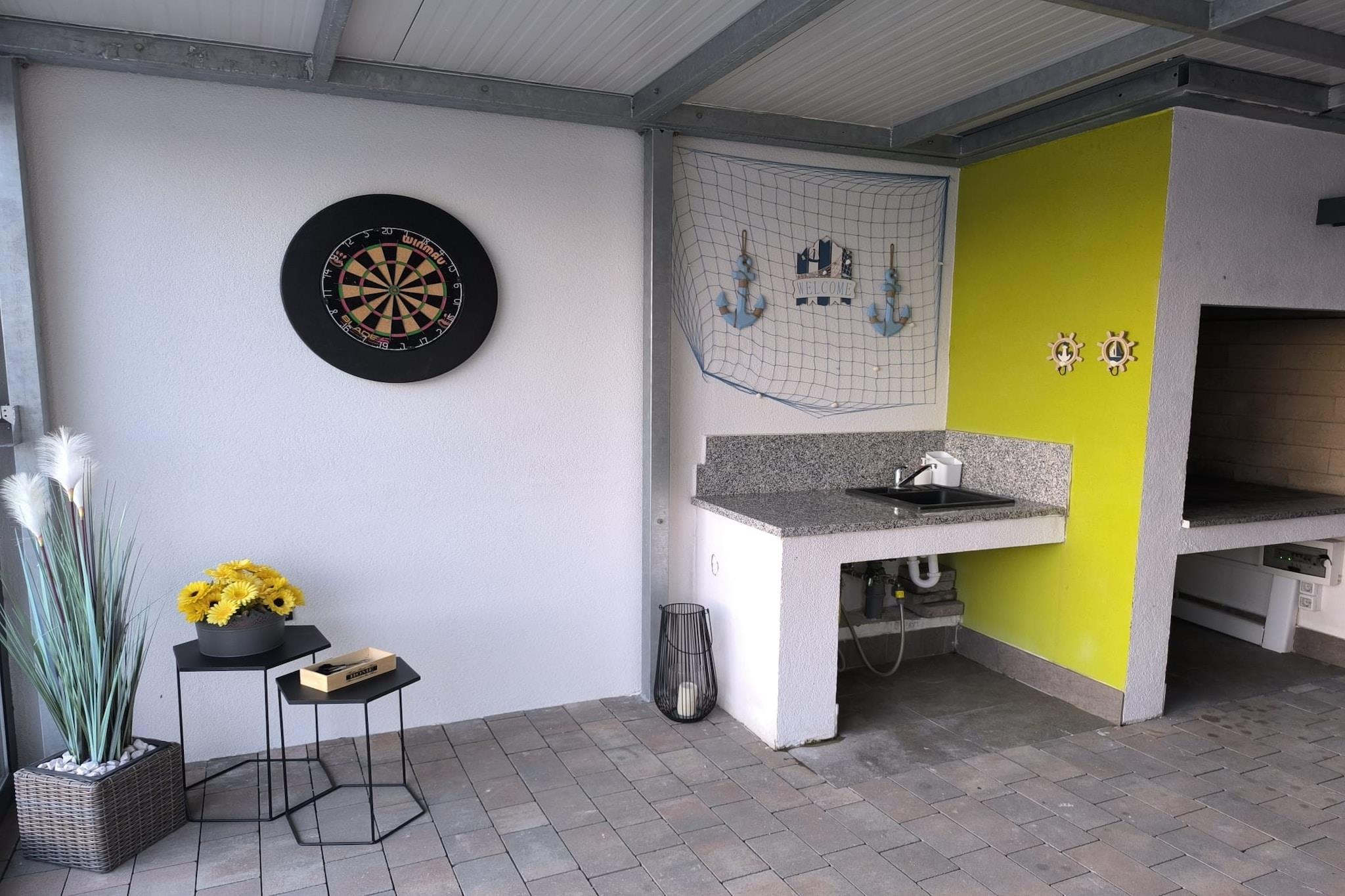 Ground floor: (open kitchen(hob(electric), toaster, coffee machine, oven, dishwasher, fridge-freezer, dishes and cutlery, Cooking basics), Living/diningroom(TV(flatscreen, satellite), dining table, seating area), bedroom(double bed), bedroom(single bed, single bed), bathroom(shower, washbasin, toilet)) On the 1st floor: (bedroom(double bed), bedroom(double bed), bedroom(single bed, single bed), bathroom(shower, washbasin, toilet), bathroom(shower, washbasin, toilet)) Garden Furniture , cot, washing machine, balcony, heating, air conditioning, terrace, garden(fenced), BBQ, parking, swimming pool(private, outside, heated), high chair, iron, Cleaning Disinfection