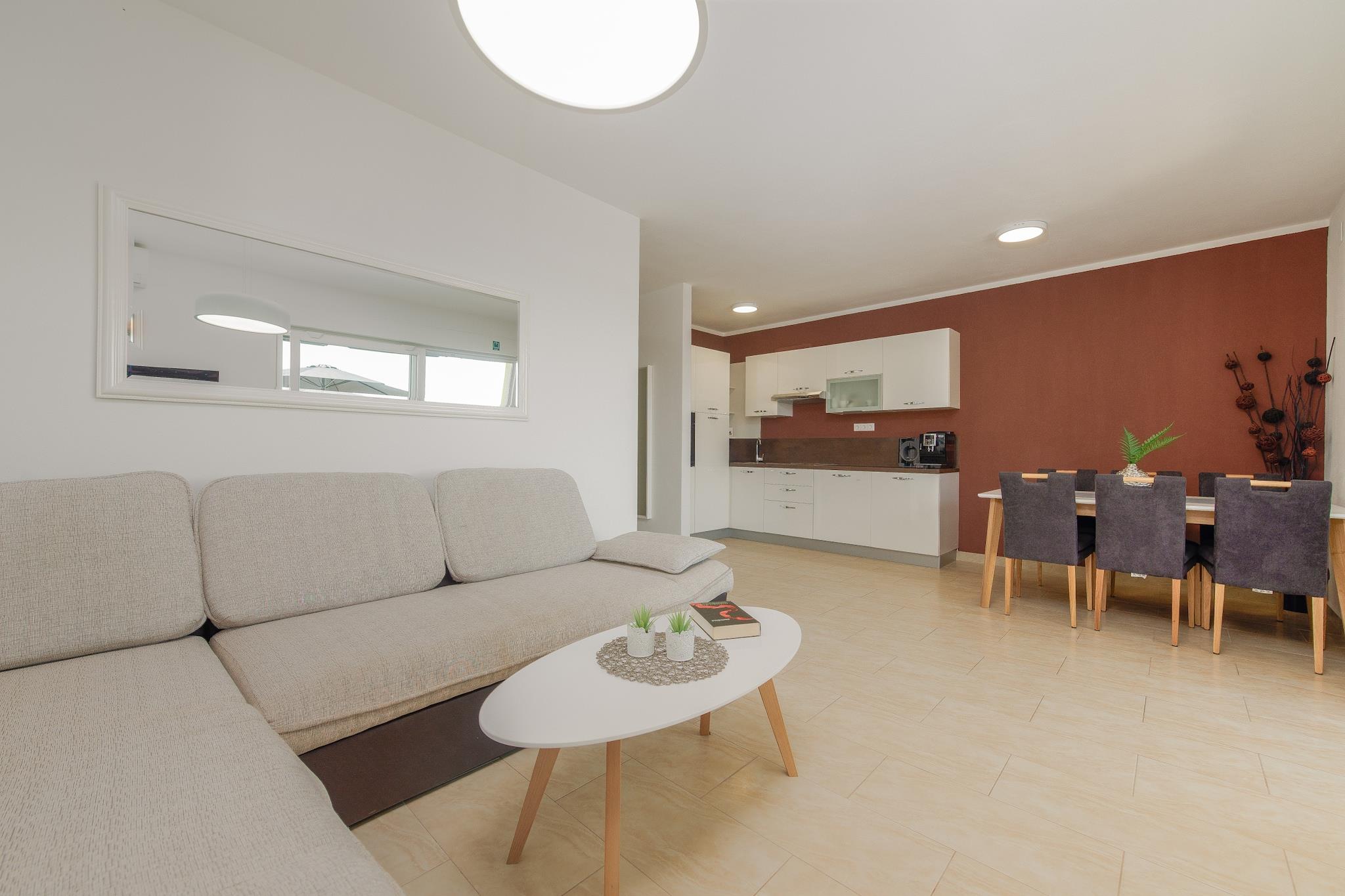 The villa in Rovanjska has 5 bedrooms and capacity for 10 persons. Accommodation of 157 m² tastefully-furnished and is very light, It has waterfront and swimming pool. The property is located 200 m the restaurant, 500 m coffee shop, 500 m rock beach, 3 km supermarket, 12 km city, 33 km airport, 33 km international airport and it is located in a a family-friendly zone. The accommodation is equipped with the following items: outdoor furniture, fenced plot, terrace, washing machine, barbecue, iron, internet (Wi-Fi), hair dryer, balcony, electric heating, air-conditioned, swimming pool private, heated swimming pool private, open-air parking in the same building, TV, satellite tv. The open plan kitchen, electric, is equipped with refrigerator, oven, freezer, dishwasher, dishes/cutlery, kitchen utensils, coffee machine and toaster.