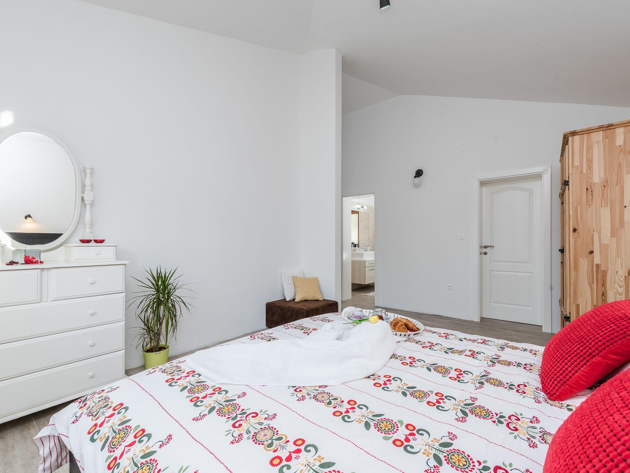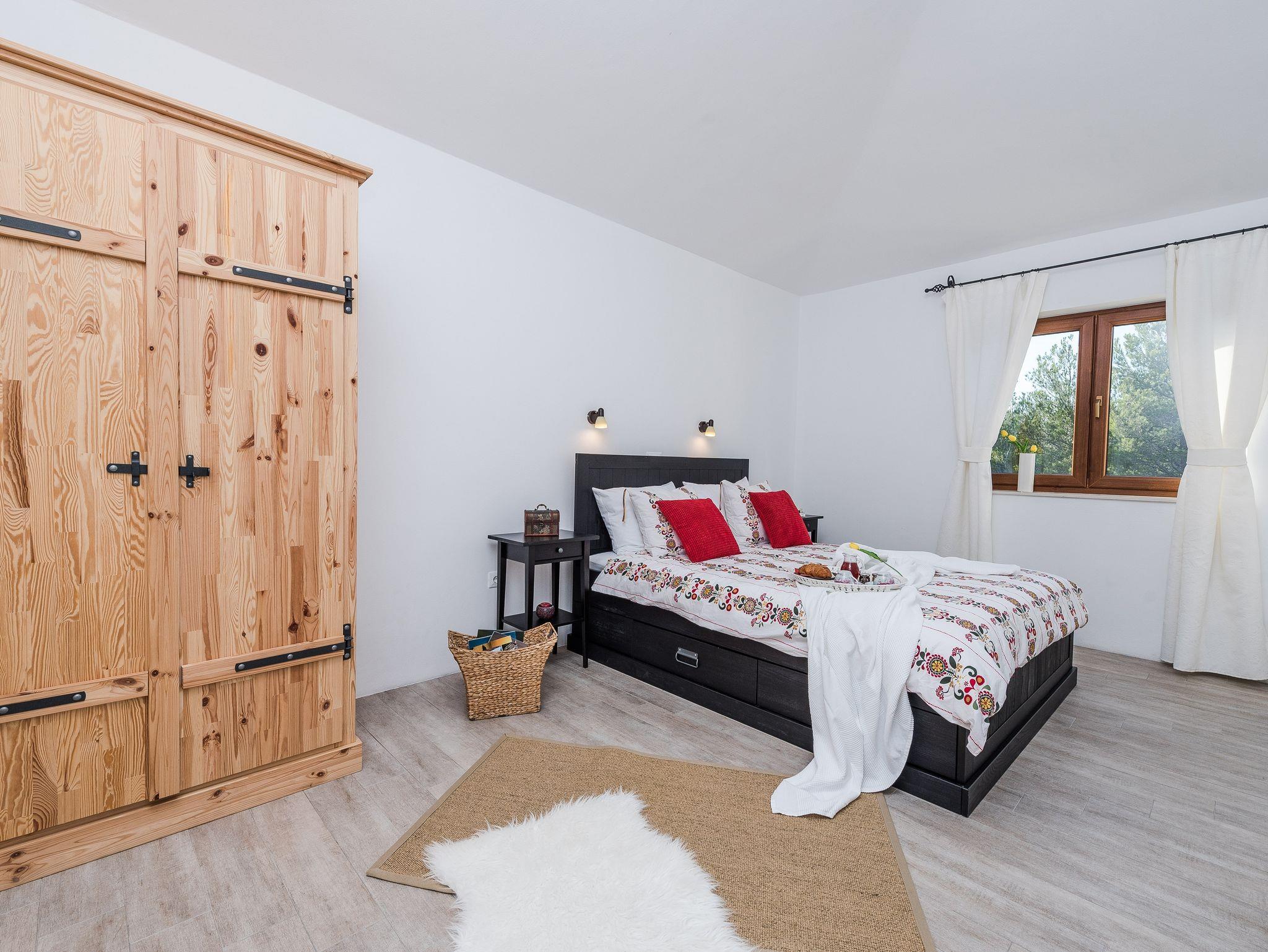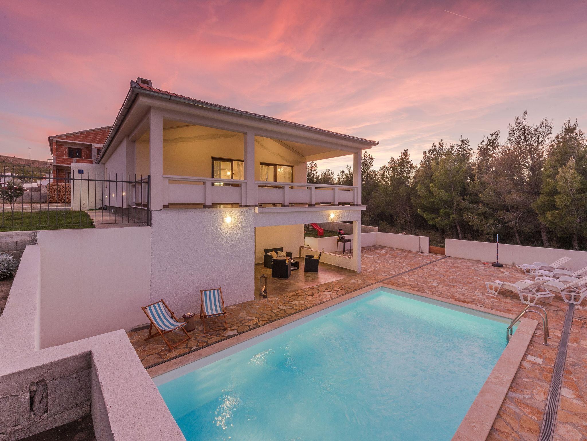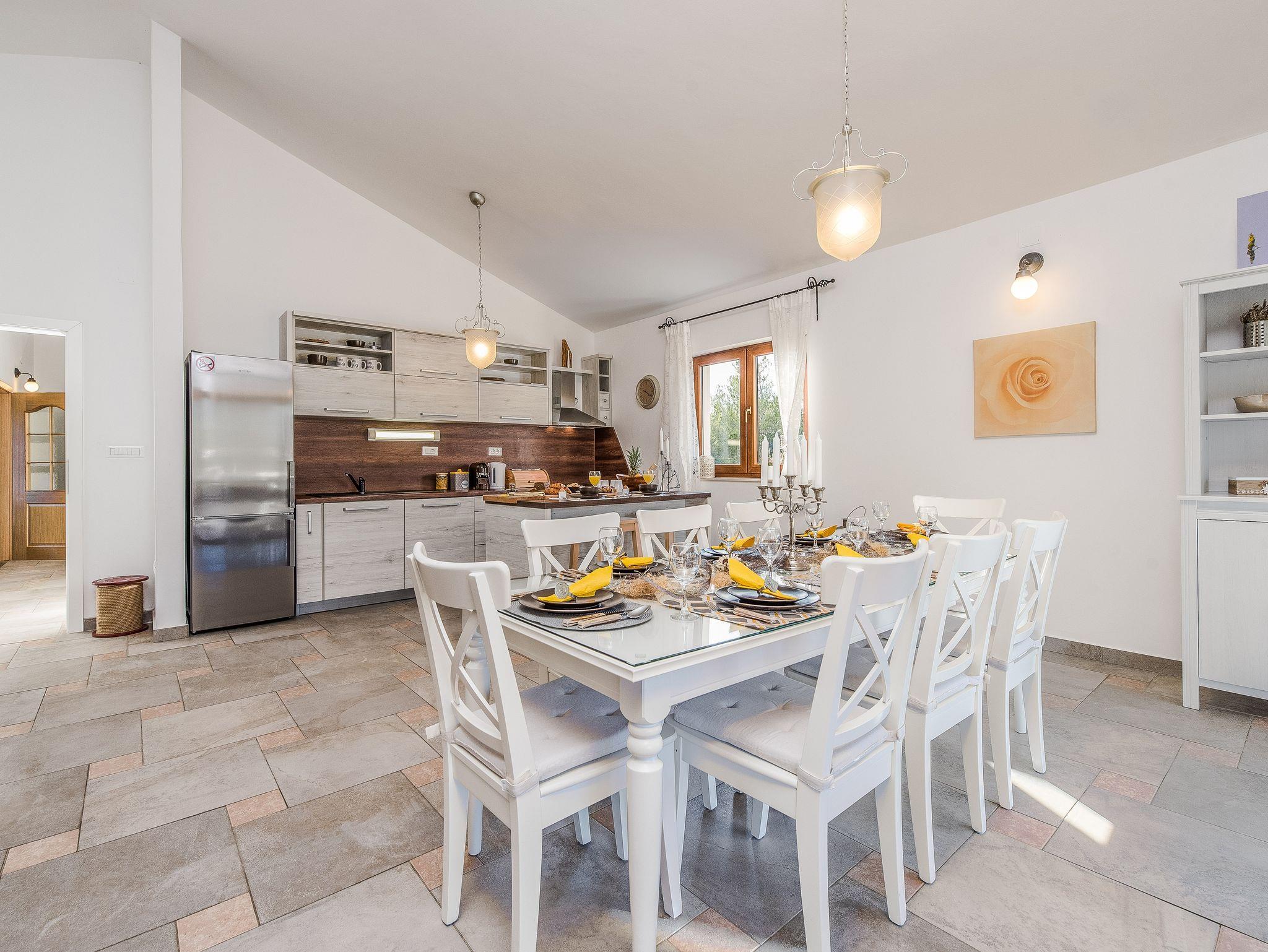 Haus bietet Platz für 10 Gäste. Die Betten sind in Schlafzimmern, die es 4 gibt, und in Wohnzimmer, innerhalb einer Gesamtfläche von 96m2, angeordnet. Die Gäste haben eine eigene Terrasse zur Verfügung, auf der sie in warmen Sommernächten genießen können. Für vollen Genuss und Entspannung gibt es einen privaten Grill für Gäste dieser Unterkunft. Während ihres Aufenthalts können sich Gäste im privaten Schwimmbad entspannen. IM PREIS INBEGRIFFEN: Kurtaxe, Endreinigung, Klimatisierung, Pool, Parkplatz, Internet, Bügeleisen, Bügelbrett. Die Verfügbarkeit zusätzlicher Dienstleistungen in Ihrem reservierten Termin und die Preise derselben (falls nicht aufgeführt) müssen im Voraus überprüft werden. Zusätzliche Dienstleistungen die in der Zahlungsaufforderung nicht aufgeführt sind werden direkt beim Vermieter bezahlt, angenommen der Gast nutzt auch diese.