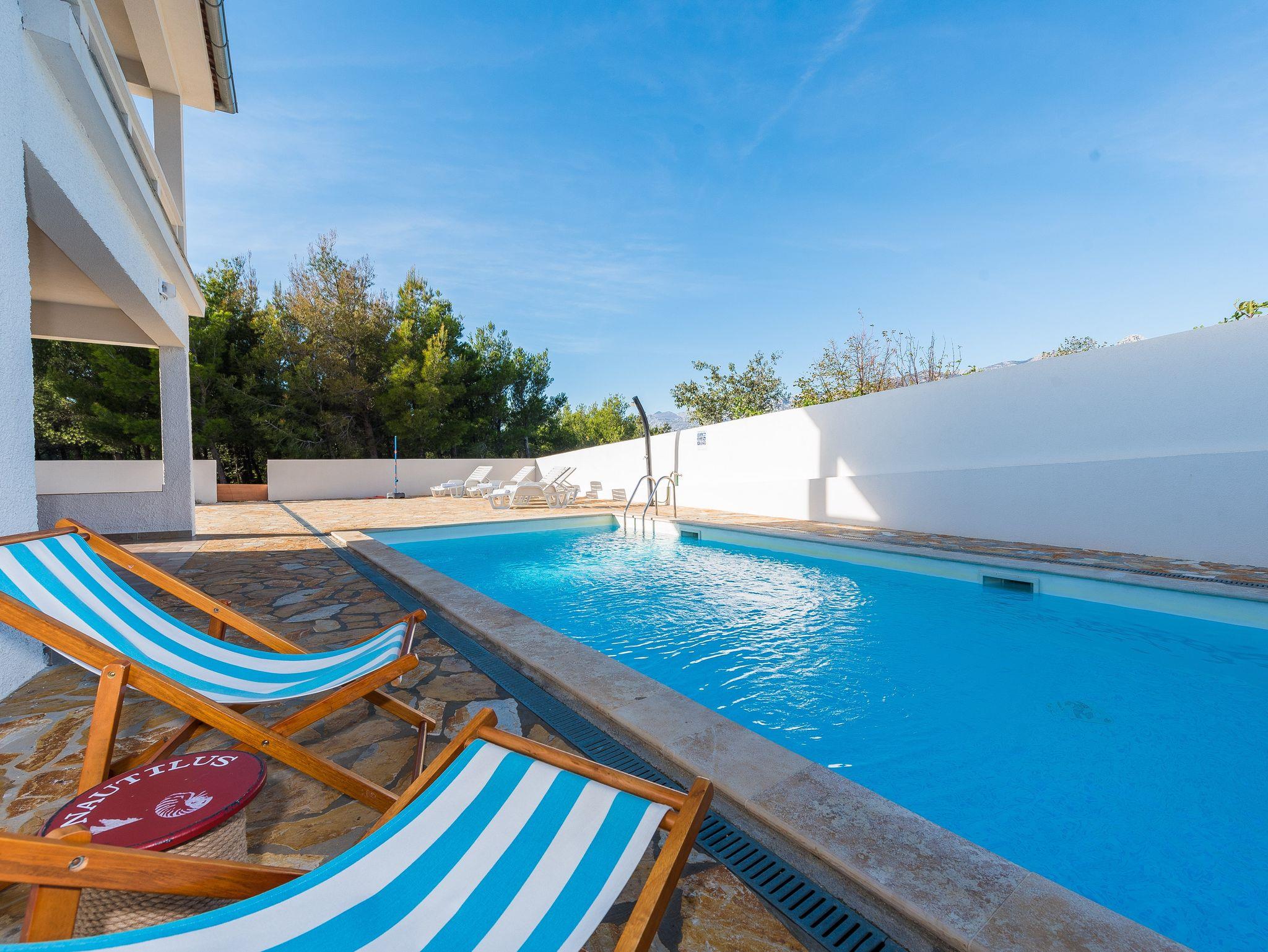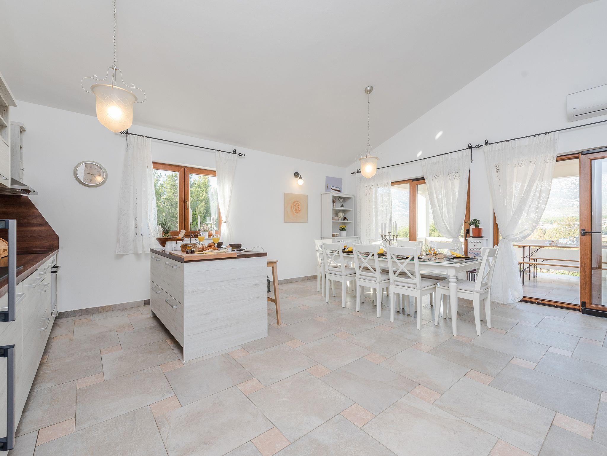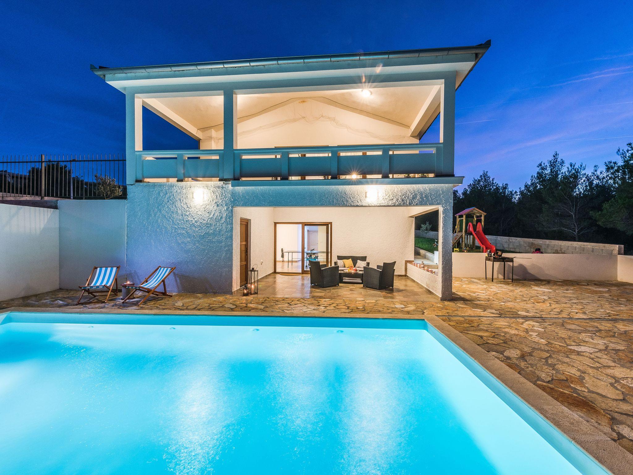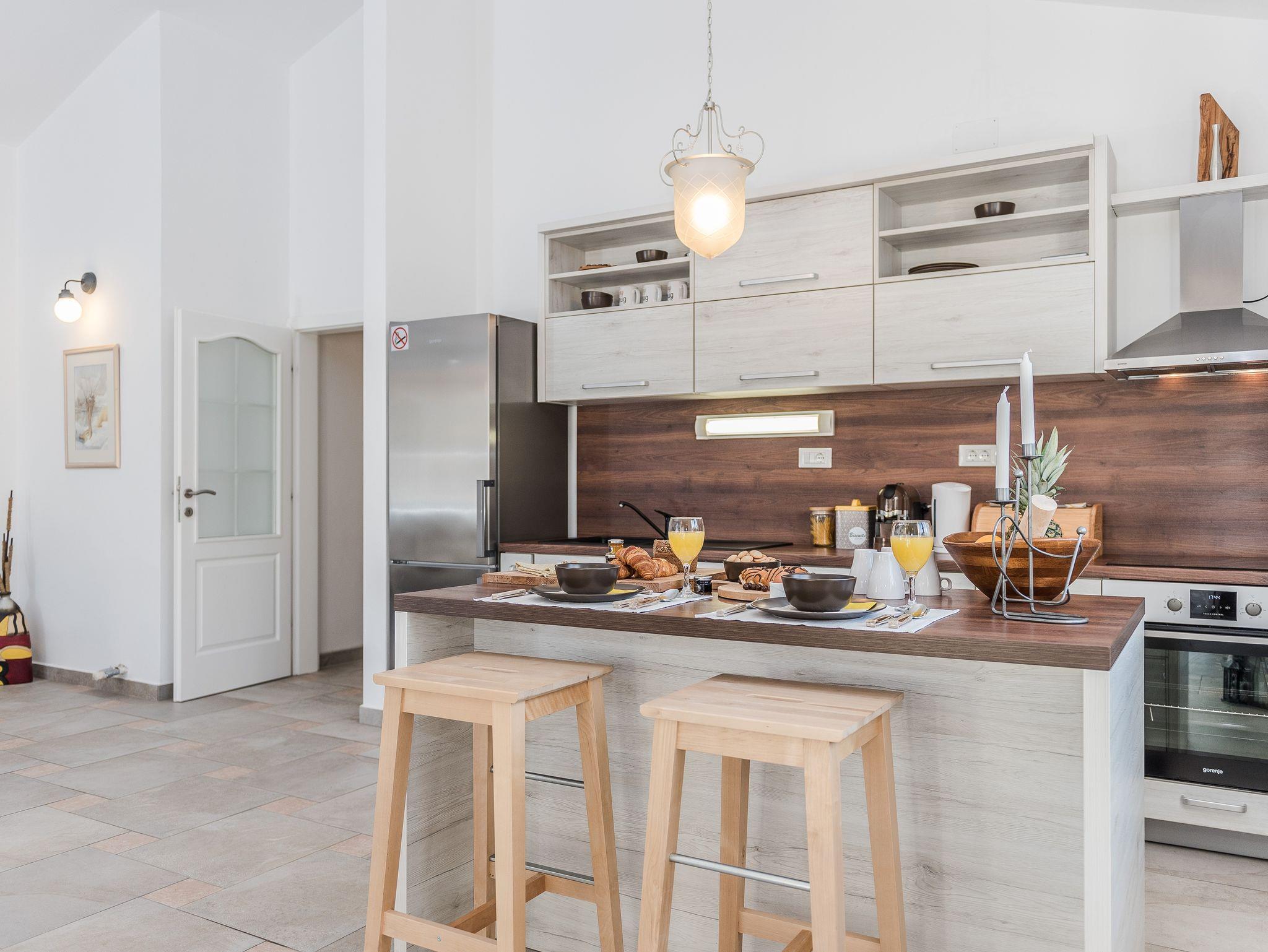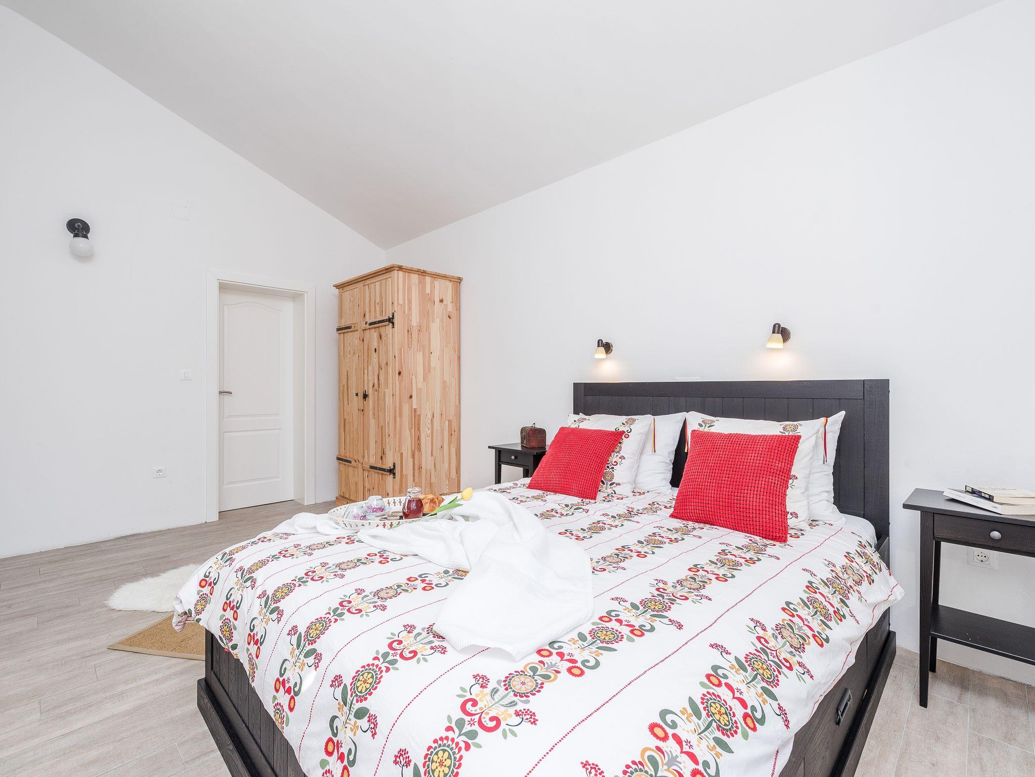 Haus bietet Platz für 10 Gäste. Die Betten sind in Schlafzimmern, die es 4 gibt, und in Wohnzimmer, innerhalb einer Gesamtfläche von 96m2, angeordnet. Die Gäste haben eine eigene Terrasse zur Verfügung, auf der sie in warmen Sommernächten genießen können. Für vollen Genuss und Entspannung gibt es einen privaten Grill für Gäste dieser Unterkunft. Während ihres Aufenthalts können sich Gäste im privaten Schwimmbad entspannen. IM PREIS INBEGRIFFEN: Kurtaxe, Endreinigung, Klimatisierung, Pool, Parkplatz, Internet, Bügeleisen, Bügelbrett. Die Verfügbarkeit zusätzlicher Dienstleistungen in Ihrem reservierten Termin und die Preise derselben (falls nicht aufgeführt) müssen im Voraus überprüft werden. Zusätzliche Dienstleistungen die in der Zahlungsaufforderung nicht aufgeführt sind werden direkt beim Vermieter bezahlt, angenommen der Gast nutzt auch diese.