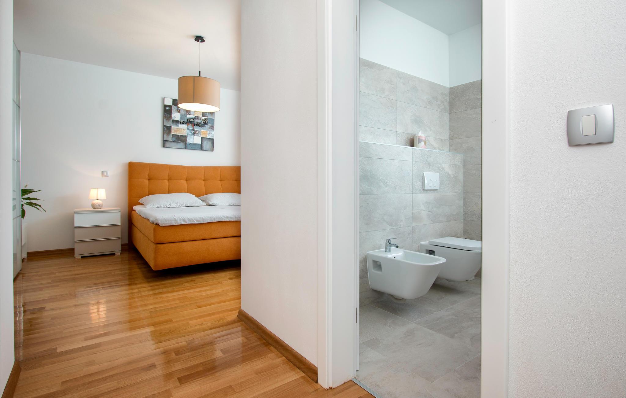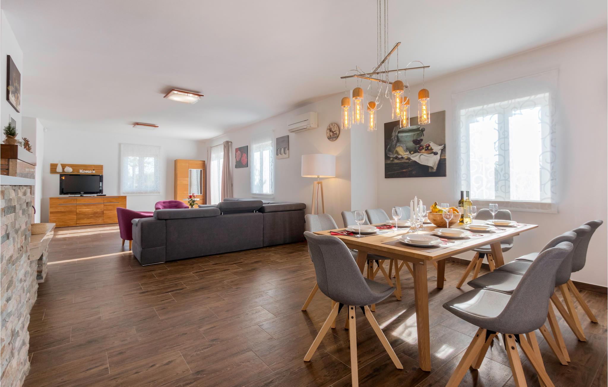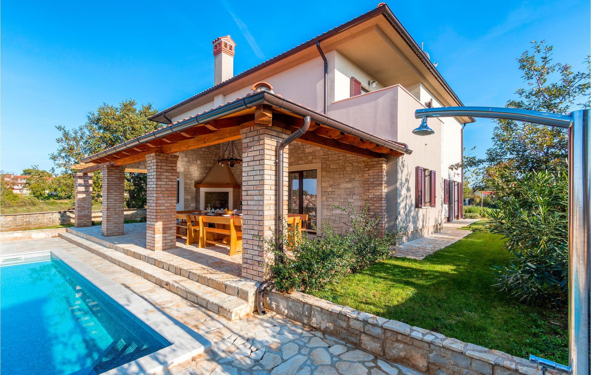 In einem kleinen Dorf, nahe der Kleinstadt von Bale, befindet sich dieses wunderbare Ferienhaus mit Pool, das für zwei oder mehrere Familien geeignet ist. Im geräumigen Erdgeschoss befinden sich das Wohnzimmer mit Küche und Essbereich sowie der direkte Ausgang zur überdachten Terrasse auf der ein gemauerter Kamin steht. Im Erdgeschoss gibt es noch ein Schlafzimmer mit eigenem Bad. Vier weitere Schlafzimmer mit eigenen Badezimmern und Balkonen befinden sich im Obergeschoss. Vor der Terrasse sind der Pool und der Sonnenbereich. Eine zusätzliche Toilette ist auch auf dem Grundstück vorhanden. Besuchen Sie während Ihres Aufenthaltes die romantische Stadt Rovinj und spazieren Sie entlang der Altstadt bis zur Kirche der Hl. Euphemia, die über der Stadt thront und von wo sich ein schöner Blick auf das Meer bietet.