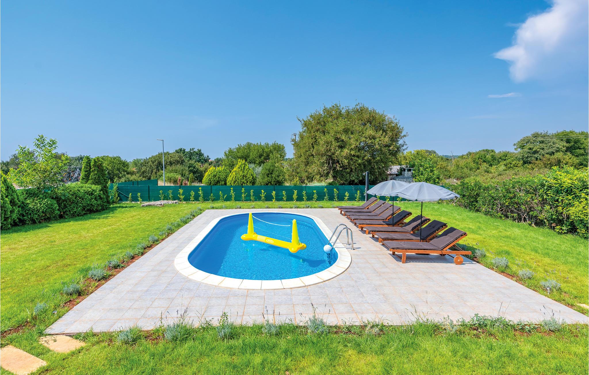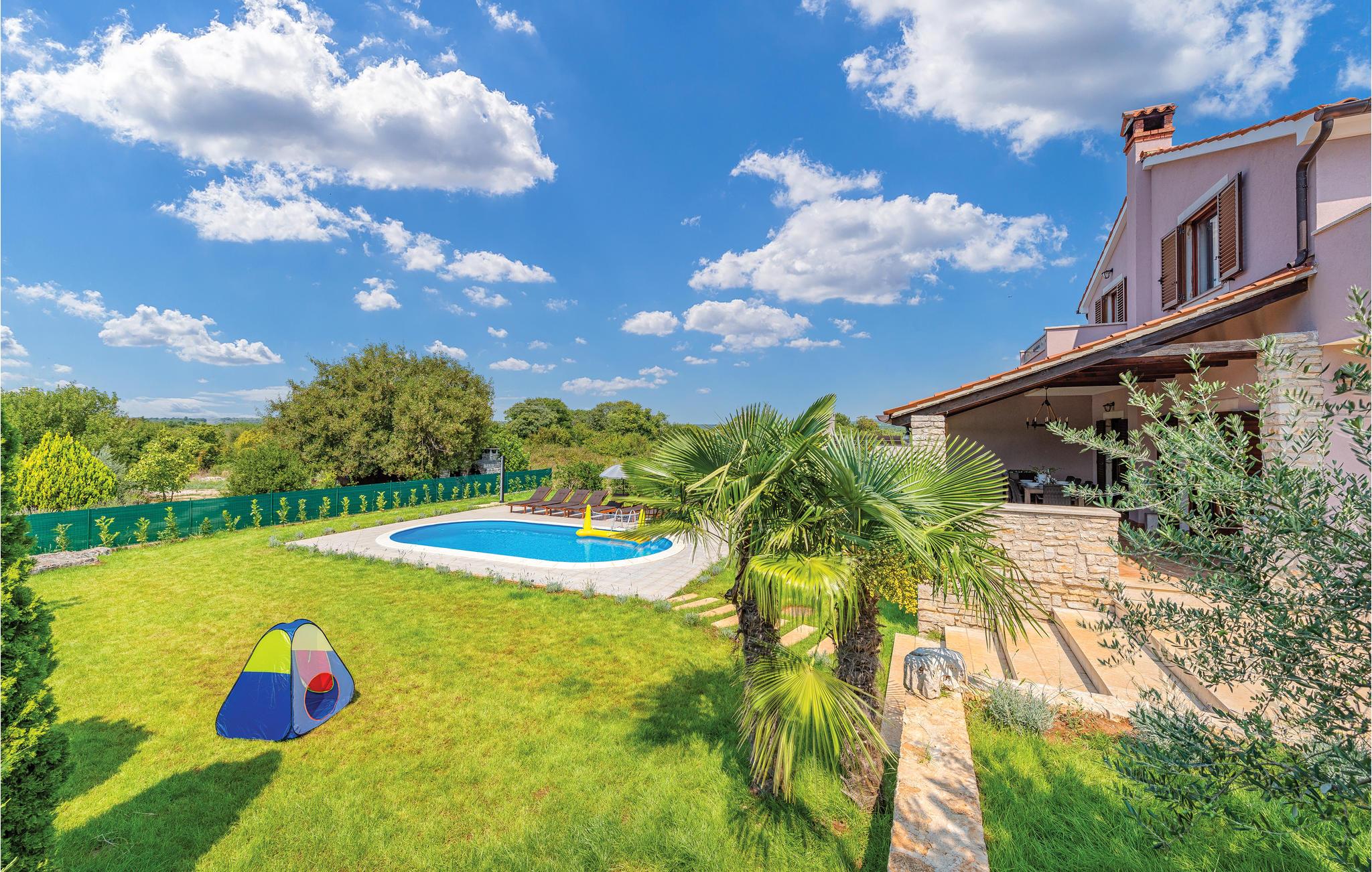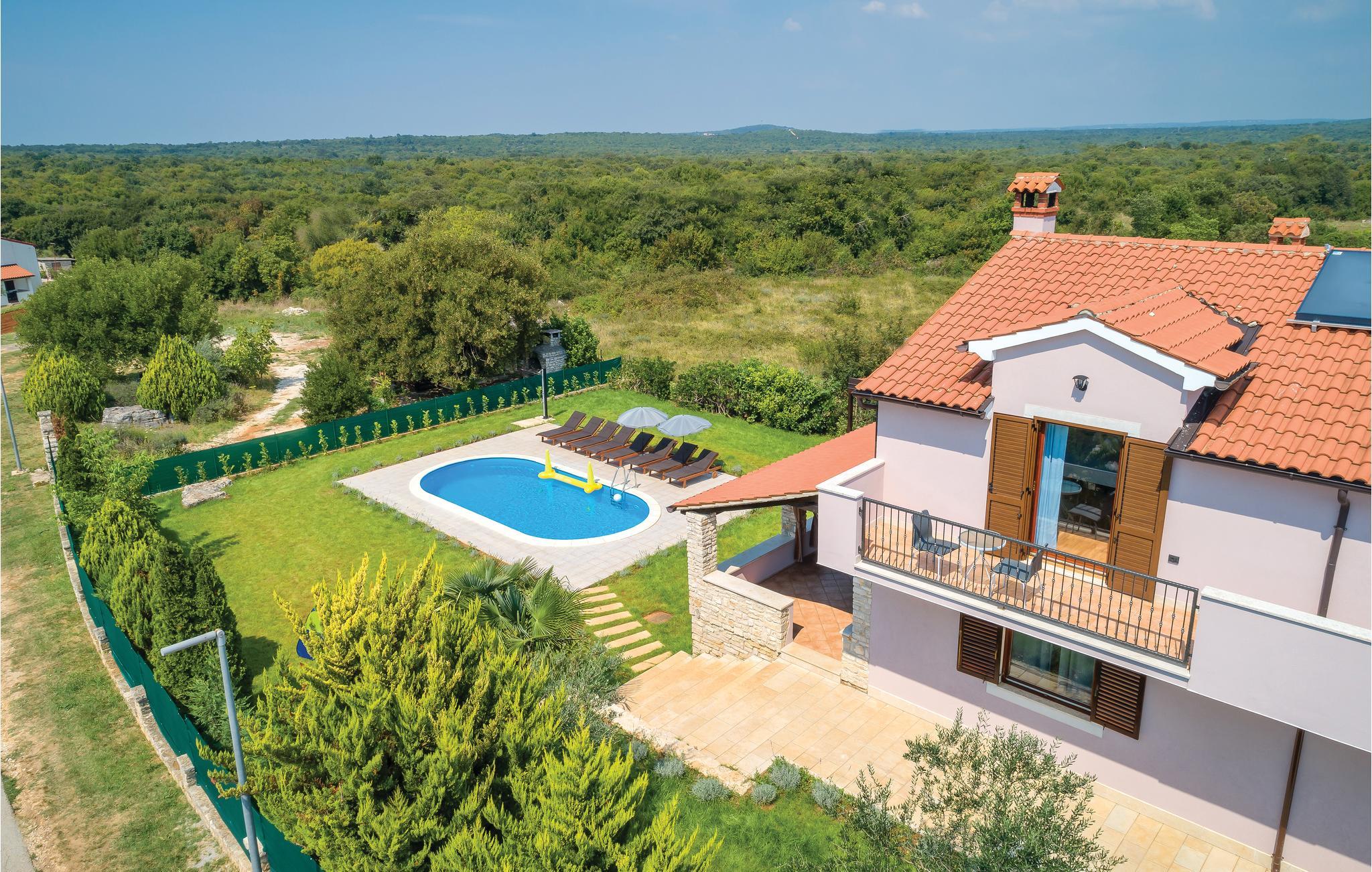 Nicht weit vom Stadtzentrum von Bale entfernt, auf einem umzäunten Grundstück, befindet sich dieses schöne Ferienhaus. Die stilvollen und Geschmackvoll eingerichteten Innenräume befinden sich im Erdgeschoss und der ersten Etage. Vor dem Haus befindet sich eine geräumige überdachte Terrasse, die sich ideal zum Entspannen sowie zum Spielen eignet, da es Darts und Tischfußball gibt. Erfrischen Sie sich im Pool und entspannen Sie Körper und Seele, während Sie sich auf bequemen Sonnenliegen ausruhen. Für Tagesausflüge empfehlen wir einen Besuch der Städte Pula, Rovinj und Porec, die zahlreiche Sommerveranstaltungen für alle Altersgruppen bieten, sowie eine Besichtigung der Brijuni-Inseln, die Sie mit ihren Naturschönheiten begeistern wird.