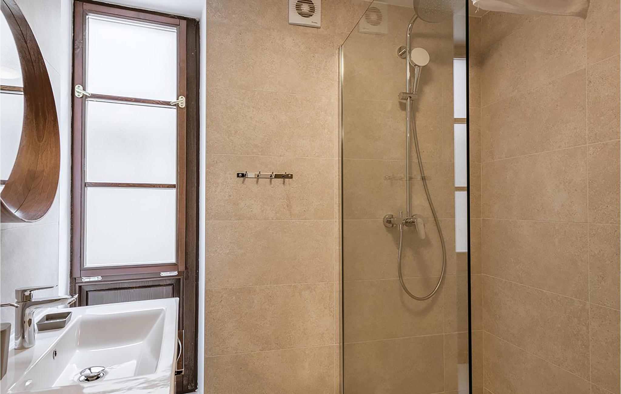 - WC mit warmem und kaltem Wasser, Dusche und Badewanne
