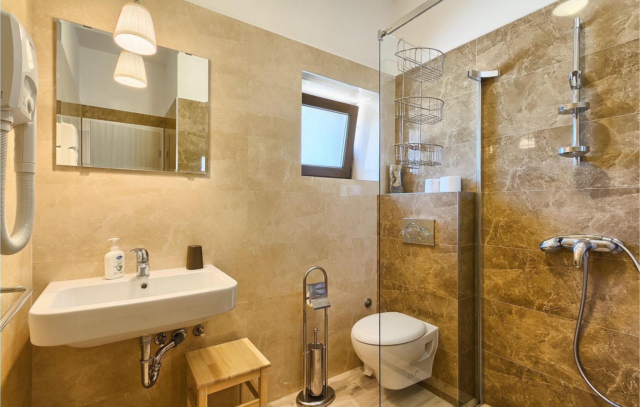 - WC mit warmem und kaltem Wasser, Badewanne
