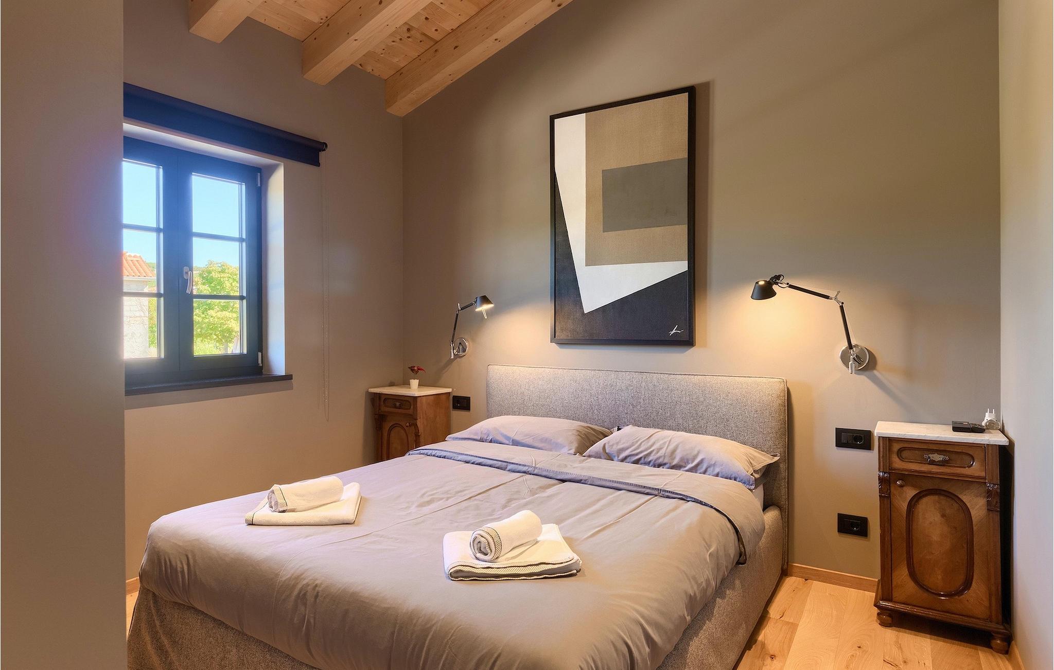 Die Villa befindet sich in der Nähe der romantischen Stadt Rovinj und ist nur wenige Autominuten vom nächsten Strand entfernt. Der nächstgelegene Laden, das Café und das Restaurant sind zu Fuß von der Villa aus erreichbar. Diese günstige Lage bietet viele Möglichkeiten, die Highlights Istriens zu entdecken.