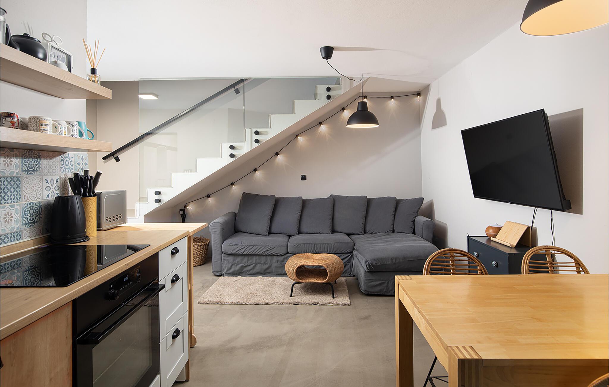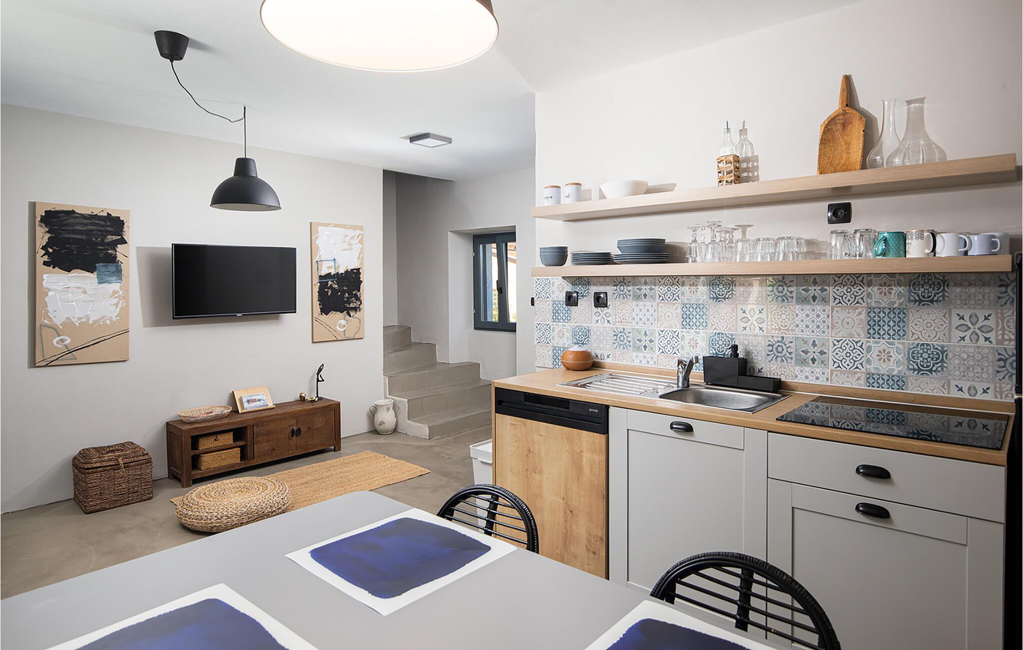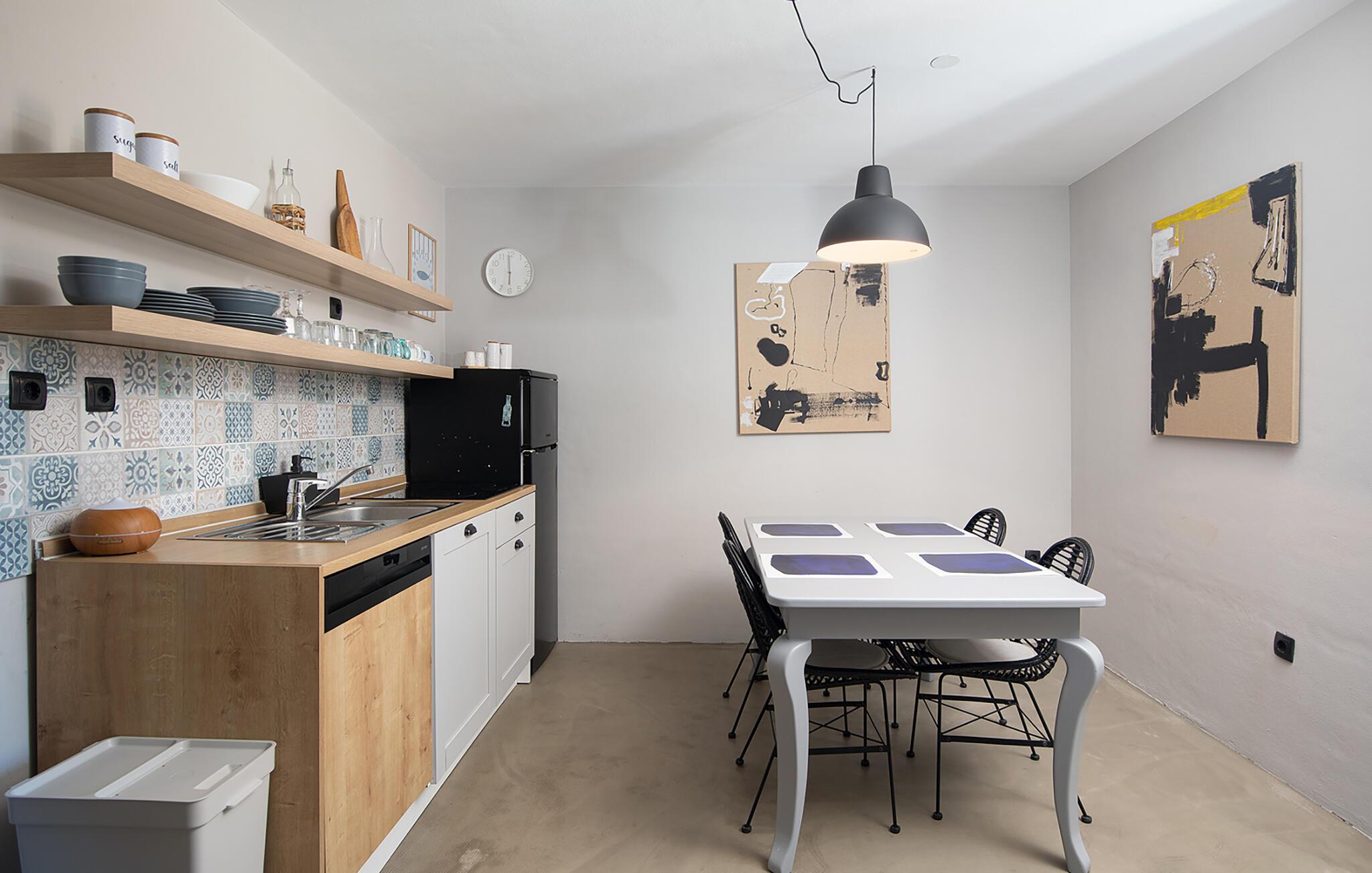 Das Erdgeschoss des ersten Hauses besteht aus einem Schlafzimmer und Badezimmer und im ersten Stock befinden sich ein weiteres Schlafzimmer und eine kleine Küche. Das zweite Haus hat ein Schlafzimmer und Badezimmer im Erdgeschoss, eine Küche, ein Wohnzimmer und Badezimmer im ersten Stock und 2 Schlafzimmer im zweiten Stock. Im Erdgeschoss vom dritten Haus finden Sie einen großen gemiensamen Wohnraum vor und im ersten Stock eine Kücke und ein Badezimmer; im zweiten Stock befinden sich noch zwei weitere Schlafzimmer. Im vierten Haus befinden sich im Erdgeschoss eine Küche, ein Wohnzimmer und ein Badezimmer und im ersten Stock noch 2 Schlafzimmer.