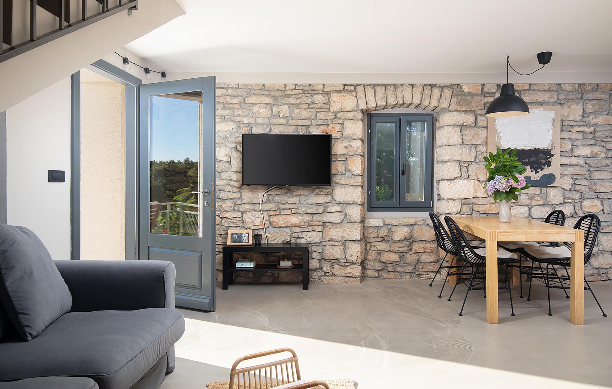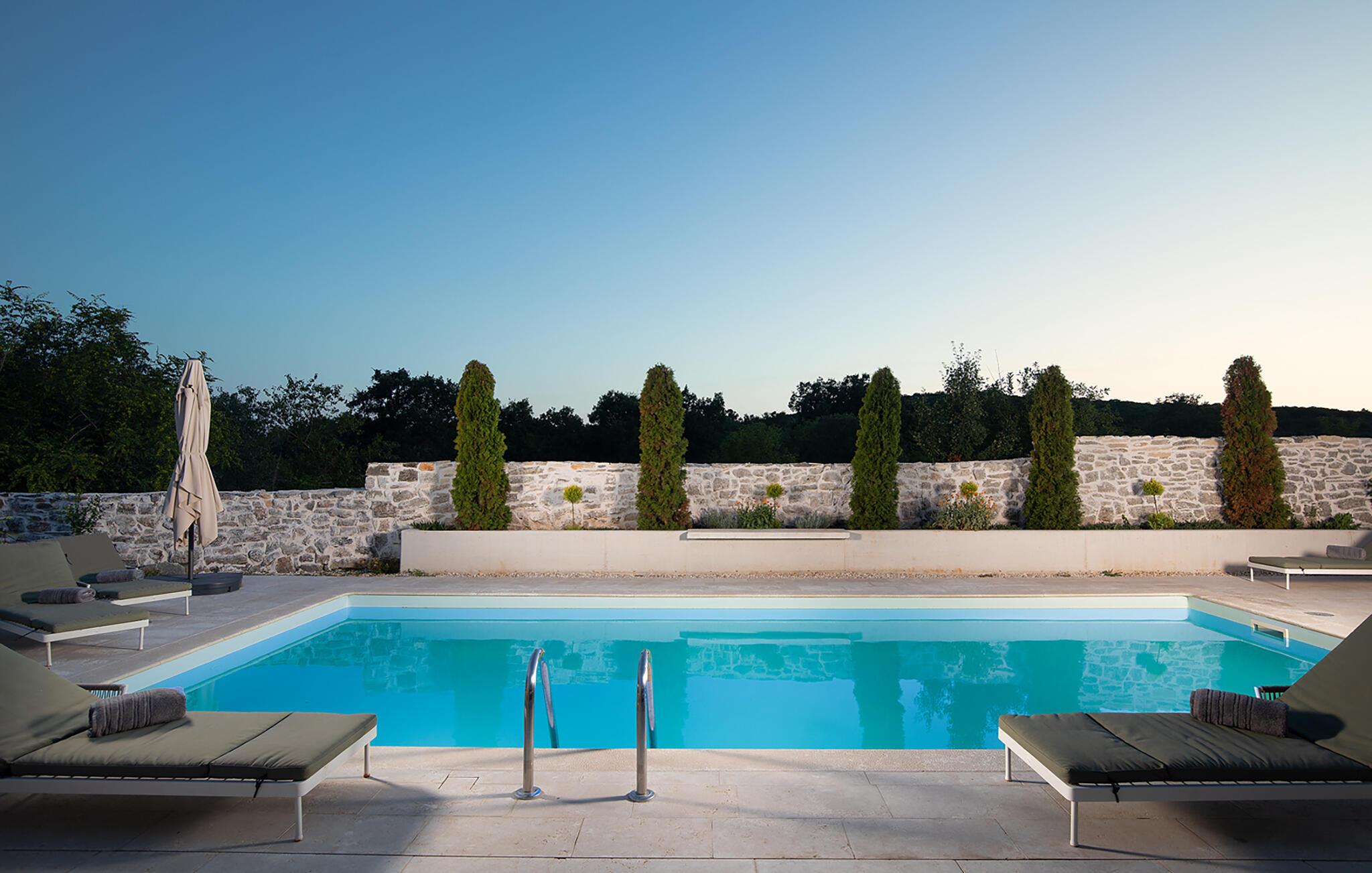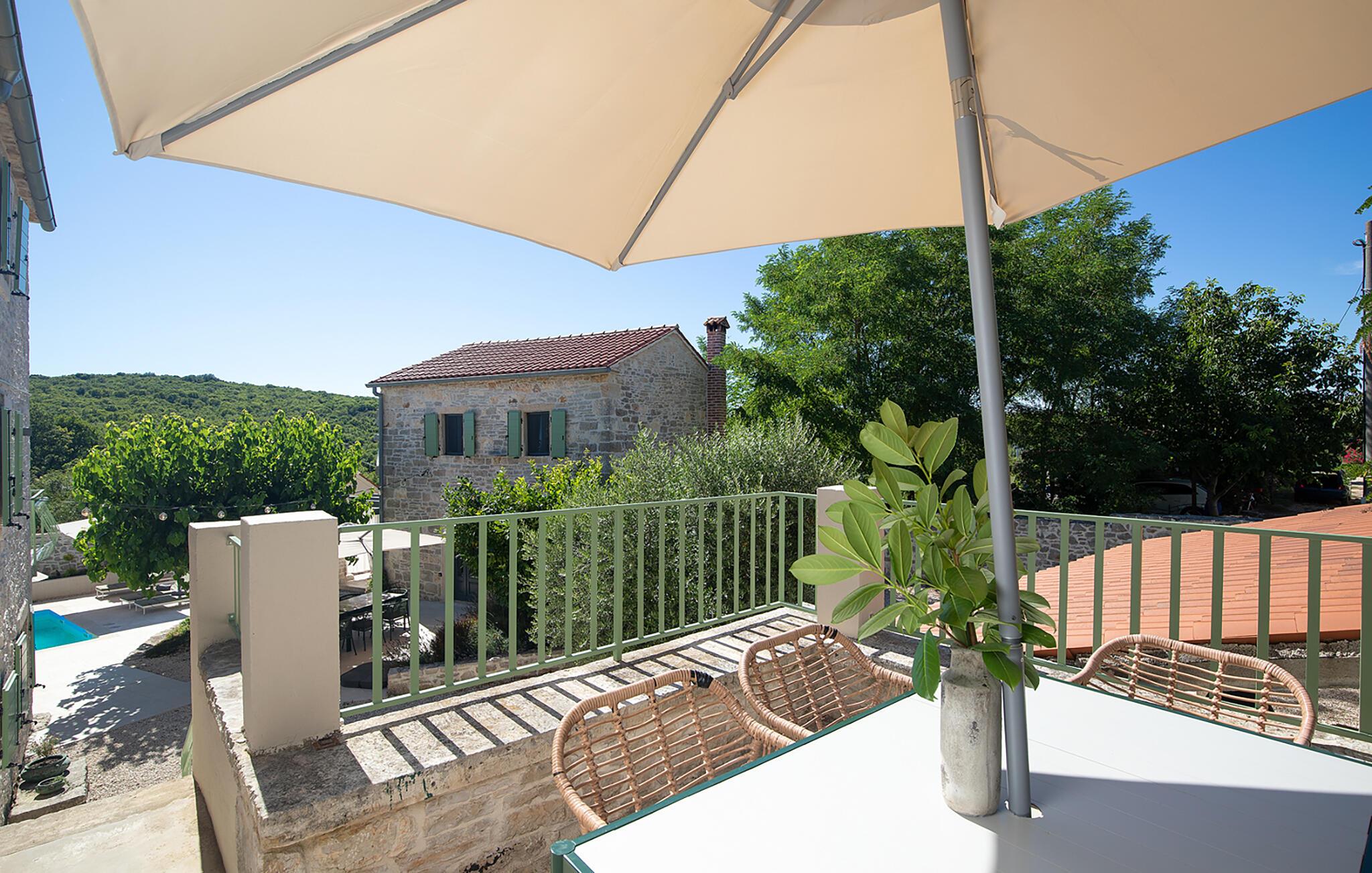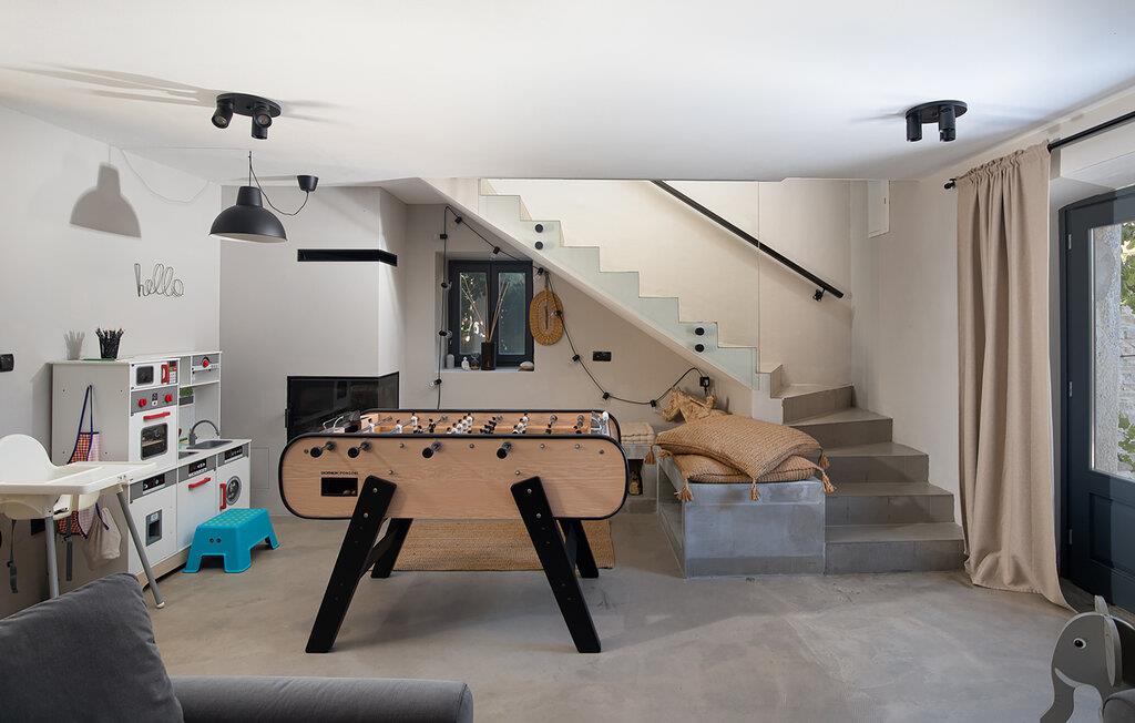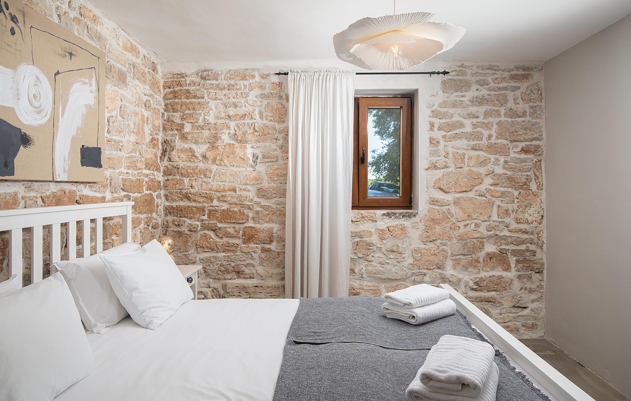 Die Villa Stanza Campitelli ist eine große Steinvilla in der Nähe von Rovinj, die über einen eigenen Pool und vier separate Häuser verfügt, die als eine Einheit vermietet werden. Das Haus ist hell und luftig, ein altes renoviertes Anwesen, das mit modernen Möbeln eingerichtet ist, die nicht im Widerspruch zu den alten Wurzeln stehen. Während der Renovierung wurden absichtlich viele Ziegel, Steine ??und Holzbalken in den Häusern zurückgelassen, und das Farbschema des Innenraums ist natürlich und entspannend.