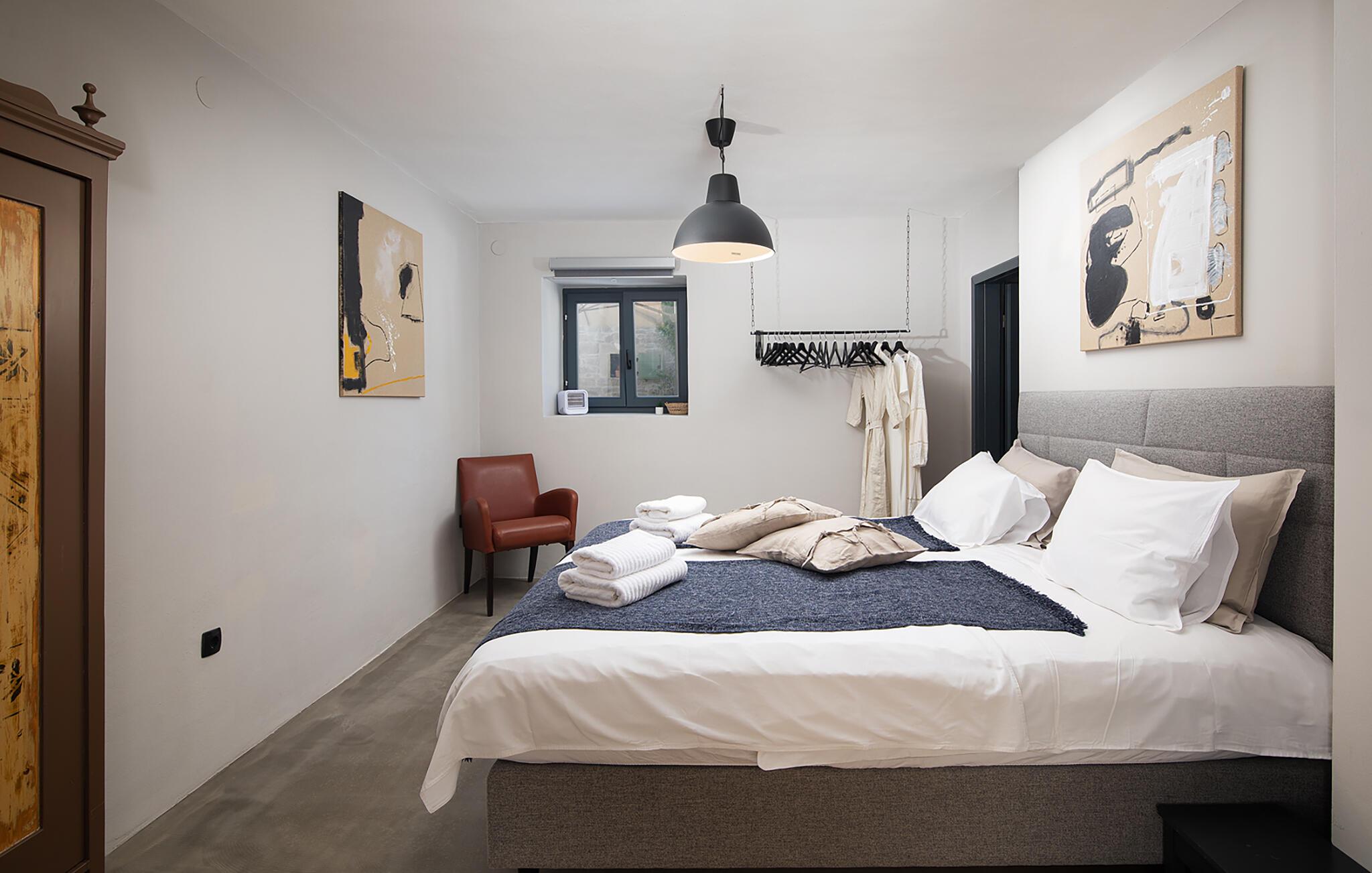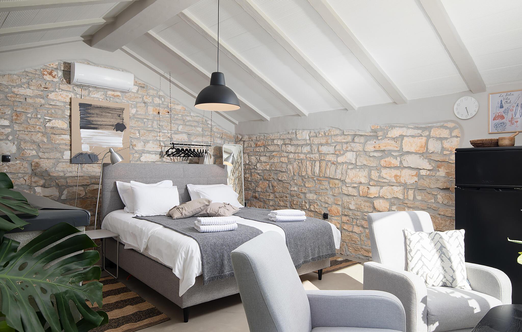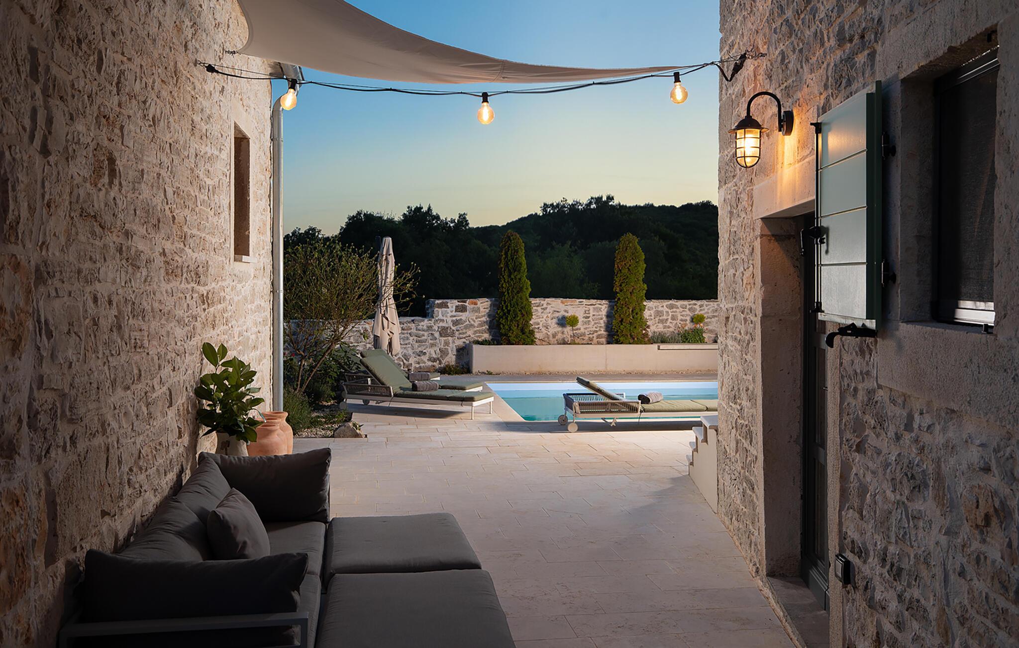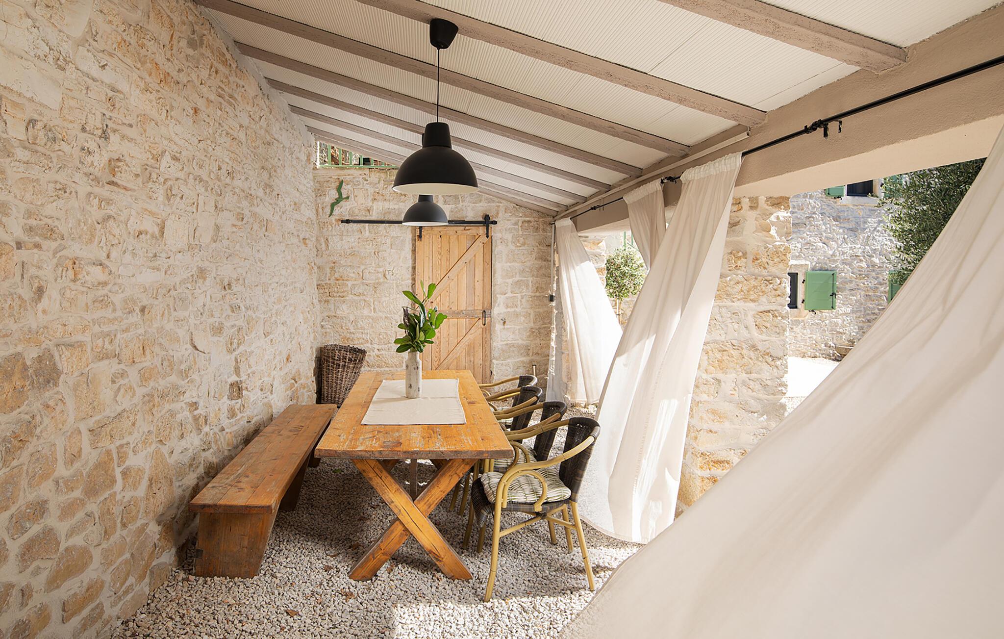 Die Villa Stanza Campitelli ist eine große Steinvilla in der Nähe von Rovinj, die über einen eigenen Pool und vier separate Häuser verfügt, die als eine Einheit vermietet werden. Das Haus ist hell und luftig, ein altes renoviertes Anwesen, das mit modernen Möbeln eingerichtet ist, die nicht im Widerspruch zu den alten Wurzeln stehen. Während der Renovierung wurden absichtlich viele Ziegel, Steine ??und Holzbalken in den Häusern zurückgelassen, und das Farbschema des Innenraums ist natürlich und entspannend.