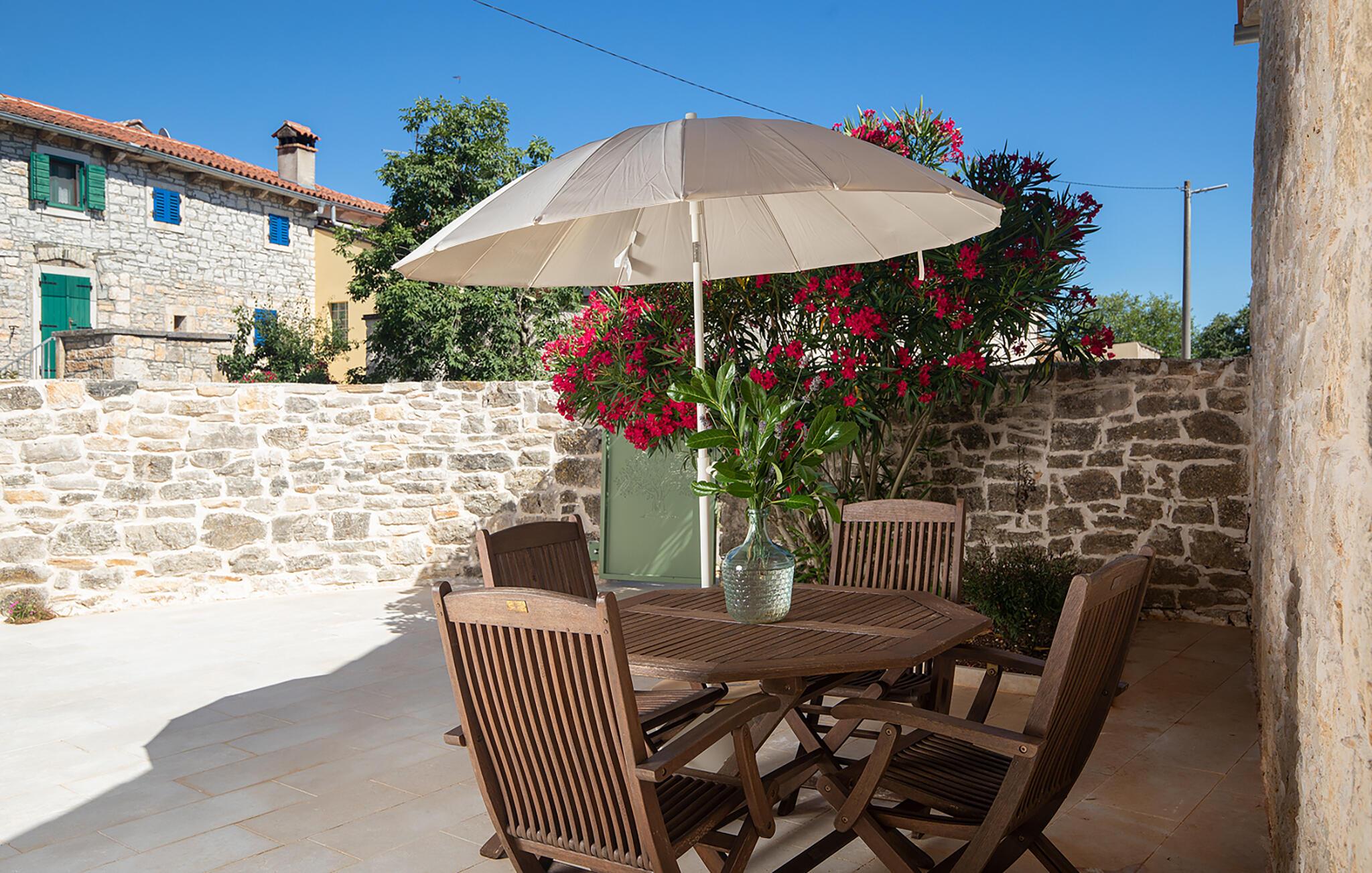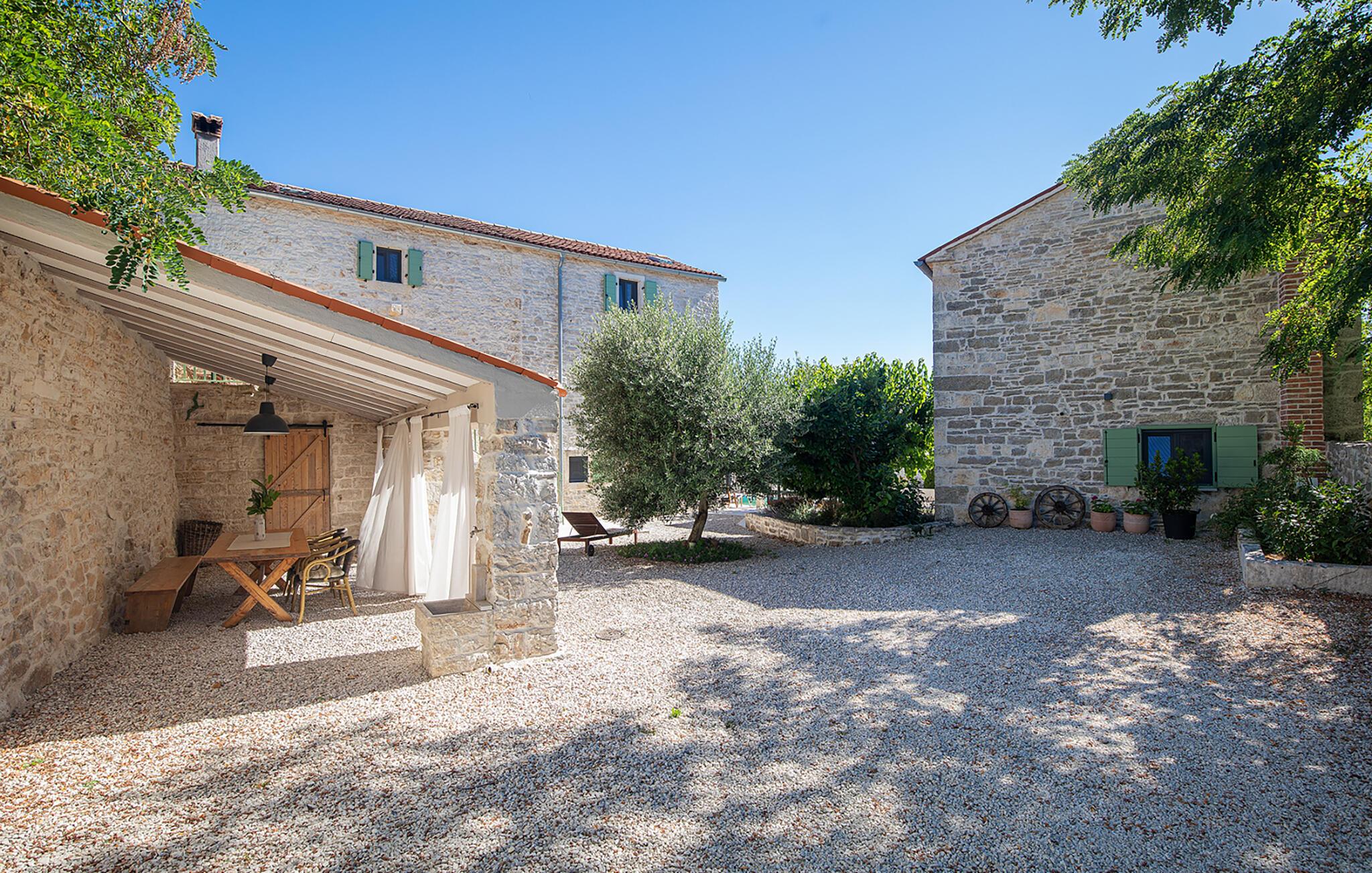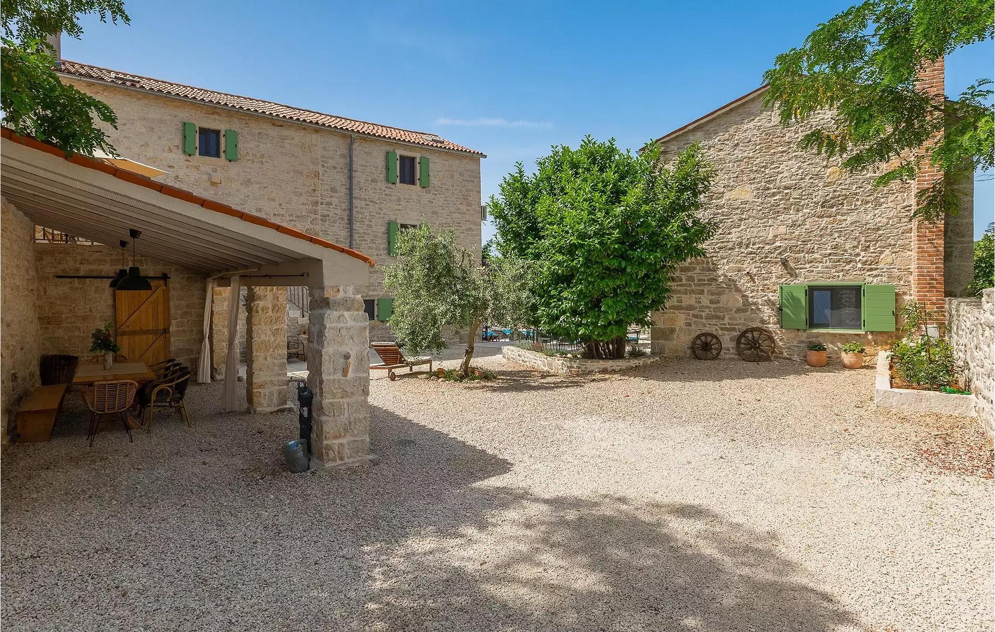 Alle vier Häuser haben je einen kleineren Essbereich für vier Personen. Im Hinterhof des Hauses gibt es einen Pool und Liegestühle. Der Pool bietet Ihnen während der Sommertage alle notwendigen Erfrischungen. Auf den Sonnenliegen können Sie Ihr Lieblingsbuch lesen, während Sie die Sonne und ein kaltes Getränk genießen. Auf dem Hof ??gibt es einen großen Essbereich im Freien für 18 Personen, der sich perfekt für große Mahlzeiten mit Familie und Freunden eignet. Sie verfügen über einen Grill, auf dem Sie Ihre Grillkünste zeigen können, an denen Sie das ganze Jahr über gearbeitet haben. Im Hof ??gibt es mehrere Loungetische und -stühle, auf denen Sie sich entspannen und Ihren Urlaub einfach genießen können.Die Villa Stanza Campitelli befindet sich in Krmed, einem kleinen und ruhigen Touristendorf, umgeben von wunderschöner Natur, üppigen grünen Feldern und Hügeln, nahe der wunderschönen Küste Westistriens und der antiken Stadt Rovinj. In der Vergangenheit war Rovinj eine Insel, eine kleine römische Stadt, aber Jahrhunderte später wurde eine Halbinsel gebildet. Heute ist Rovinj einer der romantischsten Orte in Istrien, ein Ort, an dem Sie durch ein Netz von Steinstraßen der Altstadt gehen, die langsam auf die Spitze des Hügels führen, auf dem sich die Altstadt befindet, wo Sie von der Kirche St. Euphemia begrüßt werden, dessen Wurzeln bis ins 10. Jahrhundert zurückreichen. Wenn Sie keine Höhenangst haben und auf den Kirchturm steigen, werden Sie von einem bezaubernden Ausblick über die gesamte Stadt und die Umgebung begrüßt. Vom Festland aus können Sie die schöne Aussicht auf die Altstadt genießen, besonders während des Sonnenuntergangs, wenn sich die Farben des feurigen Himmels und des kalten Blau des Meeres vermischen. Istrien ist bekannt für seine Küche, insbesondere für die Verwendung von Trüffeln in seinen Gerichten. In Anbetracht der Tatsache, dass einige der besten Trüffel in Istrien zu finden sind und Rovinj sowie die weitere Umgebung zahlreiche Restaurants bieten, werden Gastro-Enthusiasten hier garantiert auf Ihre Kosten kommen.
