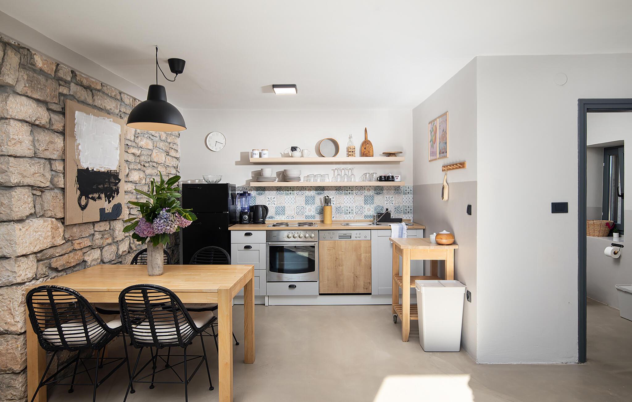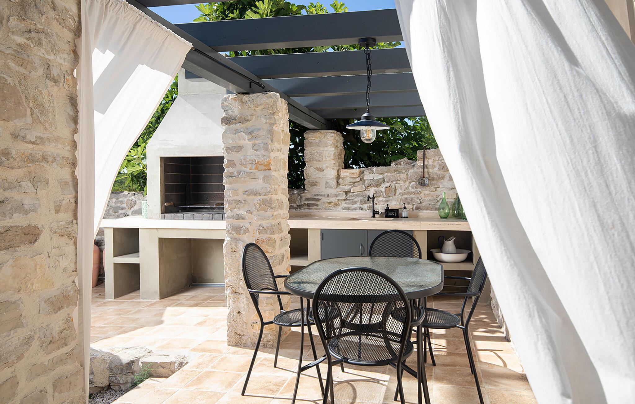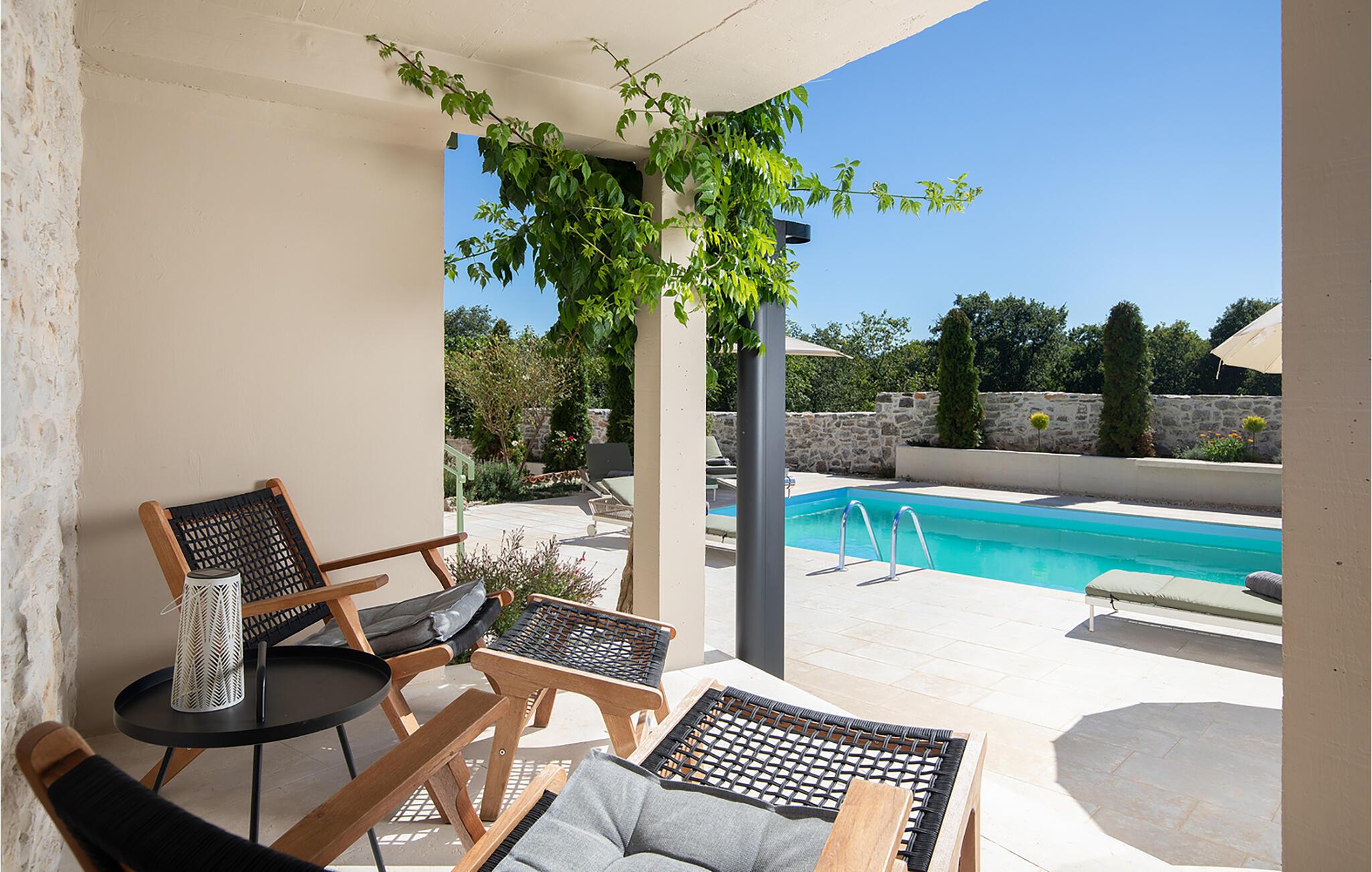 Alle vier Häuser haben je einen kleineren Essbereich für vier Personen. Im Hinterhof des Hauses gibt es einen Pool und Liegestühle. Der Pool bietet Ihnen während der Sommertage alle notwendigen Erfrischungen. Auf den Sonnenliegen können Sie Ihr Lieblingsbuch lesen, während Sie die Sonne und ein kaltes Getränk genießen. Auf dem Hof ??gibt es einen großen Essbereich im Freien für 18 Personen, der sich perfekt für große Mahlzeiten mit Familie und Freunden eignet. Sie verfügen über einen Grill, auf dem Sie Ihre Grillkünste zeigen können, an denen Sie das ganze Jahr über gearbeitet haben. Im Hof ??gibt es mehrere Loungetische und -stühle, auf denen Sie sich entspannen und Ihren Urlaub einfach genießen können.Die Villa Stanza Campitelli befindet sich in Krmed, einem kleinen und ruhigen Touristendorf, umgeben von wunderschöner Natur, üppigen grünen Feldern und Hügeln, nahe der wunderschönen Küste Westistriens und der antiken Stadt Rovinj. In der Vergangenheit war Rovinj eine Insel, eine kleine römische Stadt, aber Jahrhunderte später wurde eine Halbinsel gebildet. Heute ist Rovinj einer der romantischsten Orte in Istrien, ein Ort, an dem Sie durch ein Netz von Steinstraßen der Altstadt gehen, die langsam auf die Spitze des Hügels führen, auf dem sich die Altstadt befindet, wo Sie von der Kirche St. Euphemia begrüßt werden, dessen Wurzeln bis ins 10. Jahrhundert zurückreichen. Wenn Sie keine Höhenangst haben und auf den Kirchturm steigen, werden Sie von einem bezaubernden Ausblick über die gesamte Stadt und die Umgebung begrüßt. Vom Festland aus können Sie die schöne Aussicht auf die Altstadt genießen, besonders während des Sonnenuntergangs, wenn sich die Farben des feurigen Himmels und des kalten Blau des Meeres vermischen. Istrien ist bekannt für seine Küche, insbesondere für die Verwendung von Trüffeln in seinen Gerichten. In Anbetracht der Tatsache, dass einige der besten Trüffel in Istrien zu finden sind und Rovinj sowie die weitere Umgebung zahlreiche Restaurants bieten, werden Gastro-Enthusiasten hier garantiert auf Ihre Kosten kommen.