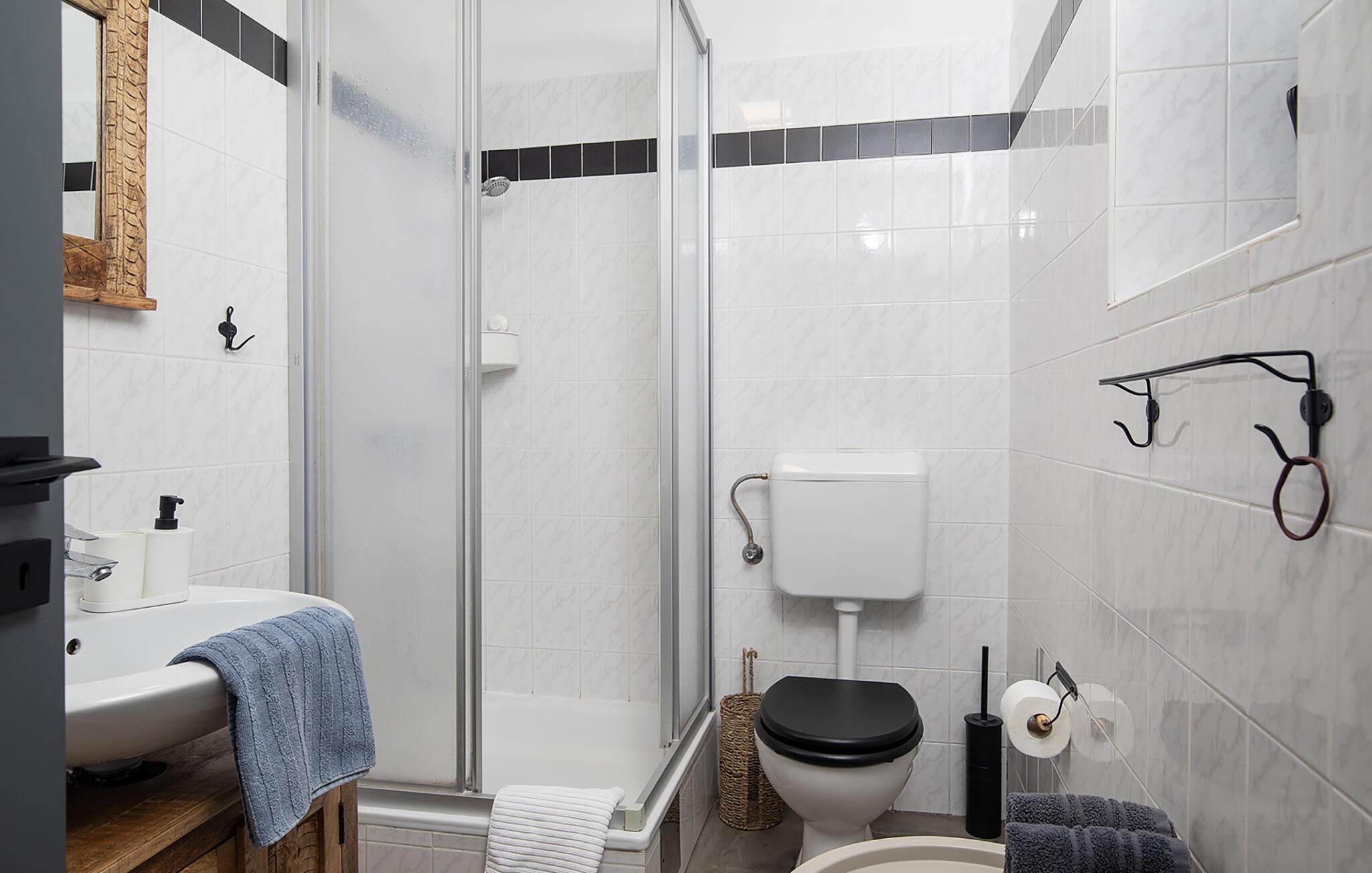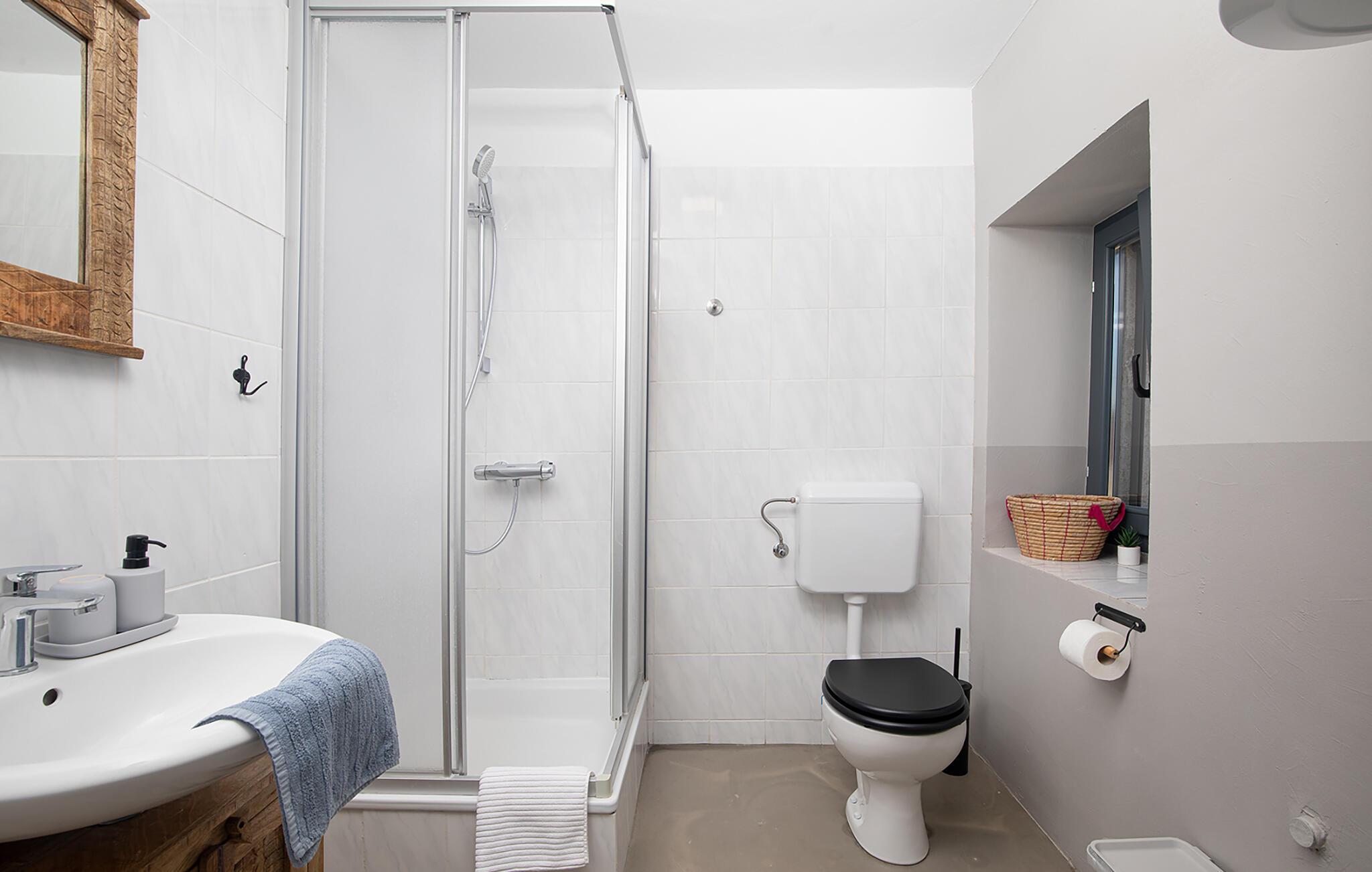 - WC mit warmem und kaltem Wasser, Dusche