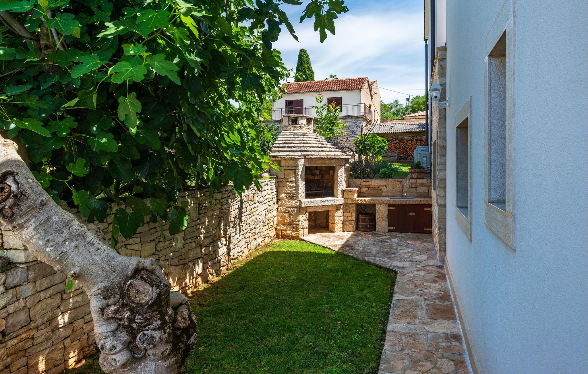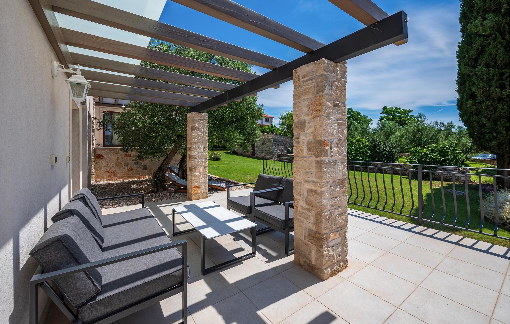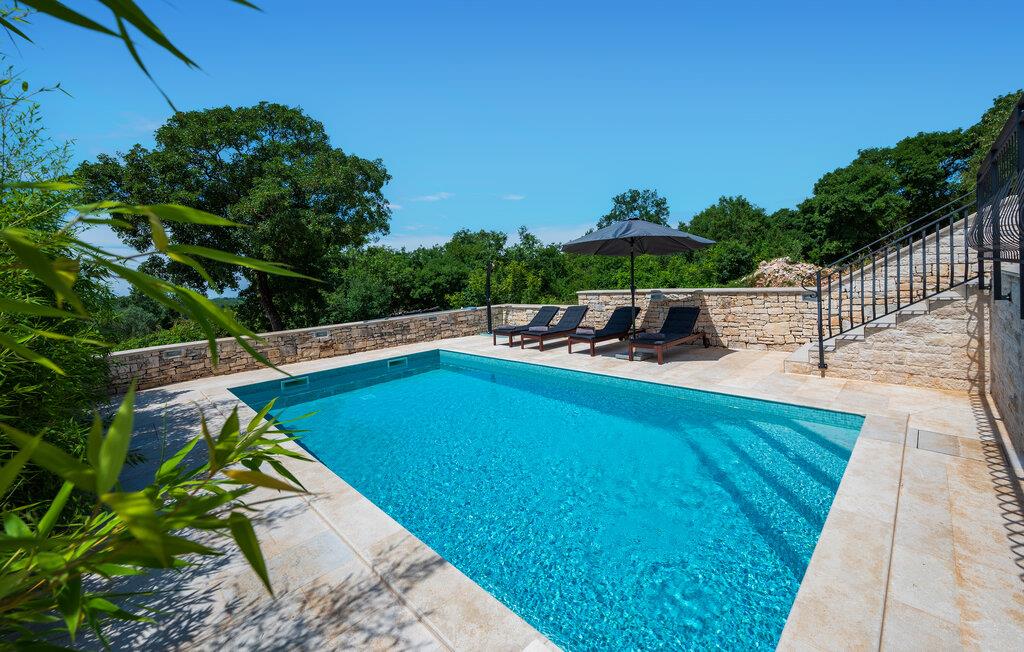 In einer malerischen Umgebung in Istrien gelegen, empfängt Sie Ihr imposantes Ferienhaus in Golas zu einem Urlaub mit ganz viel Komfort, Ruhe und spannenden Ausflugszielen. Gleich morgens erwartet Sie Ihr privater Pool zu einer ersten wohltuenden Erfrischung. Genießen Sie die Ruhe und die freie Urlaubszeit beim Schwimmen und später beim Relaxen auf den komfortablen Sonnenliegen. Nutzen Sie den idyllischen Garten, um die Natur zu genießen. Die Bäume spenden angenehmen Schatten, während die gemütlichen Sitzmöglichkeiten zum Verweilen einladen. Auf Ihrem Rasen sind sportliche Aktivitäten wie Fußball und Federball angesagt. Der Balkon im Obergeschoss eröffnet den Blick auf das Meer, das am Horizont verlockend glitzert.