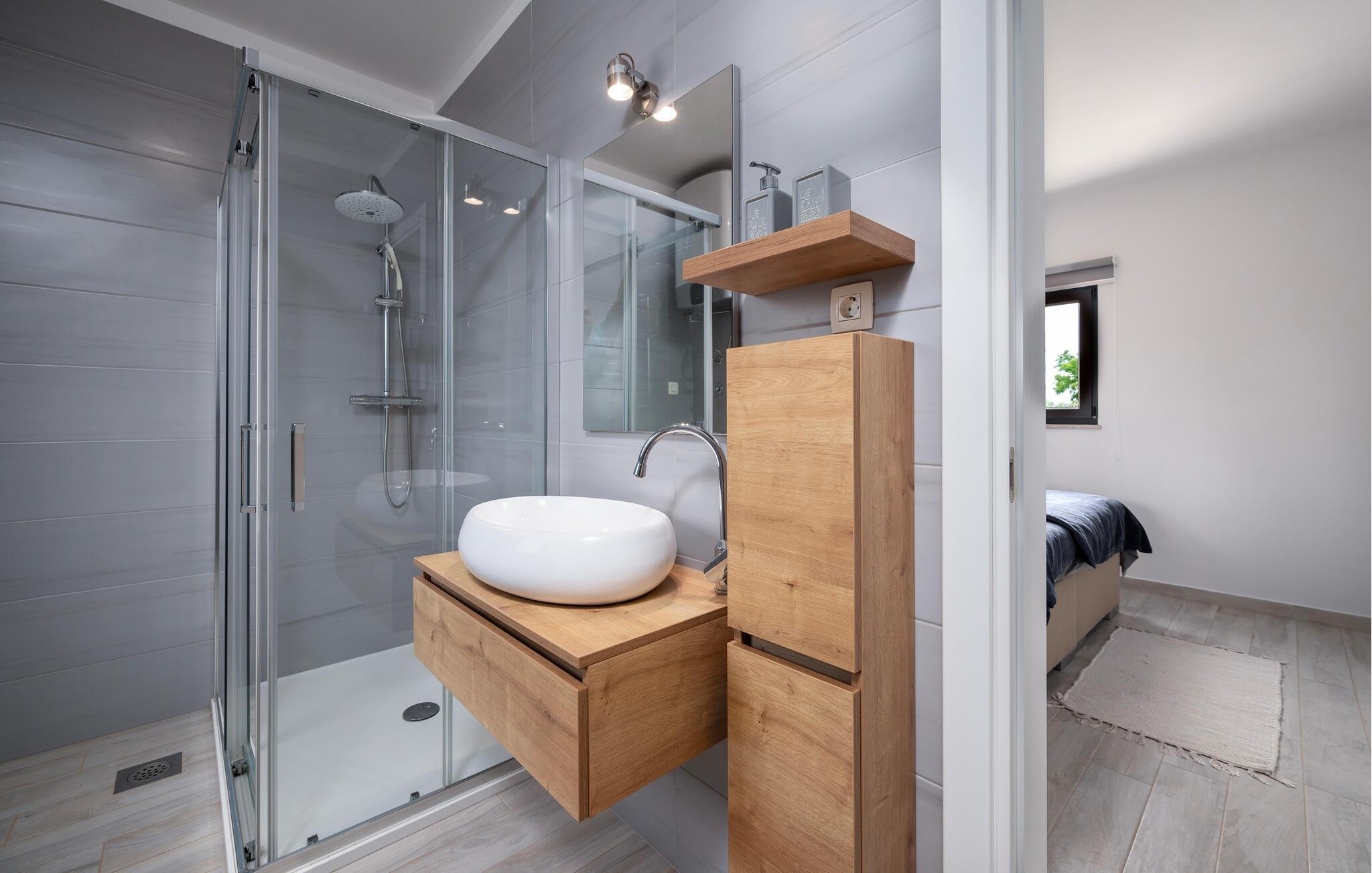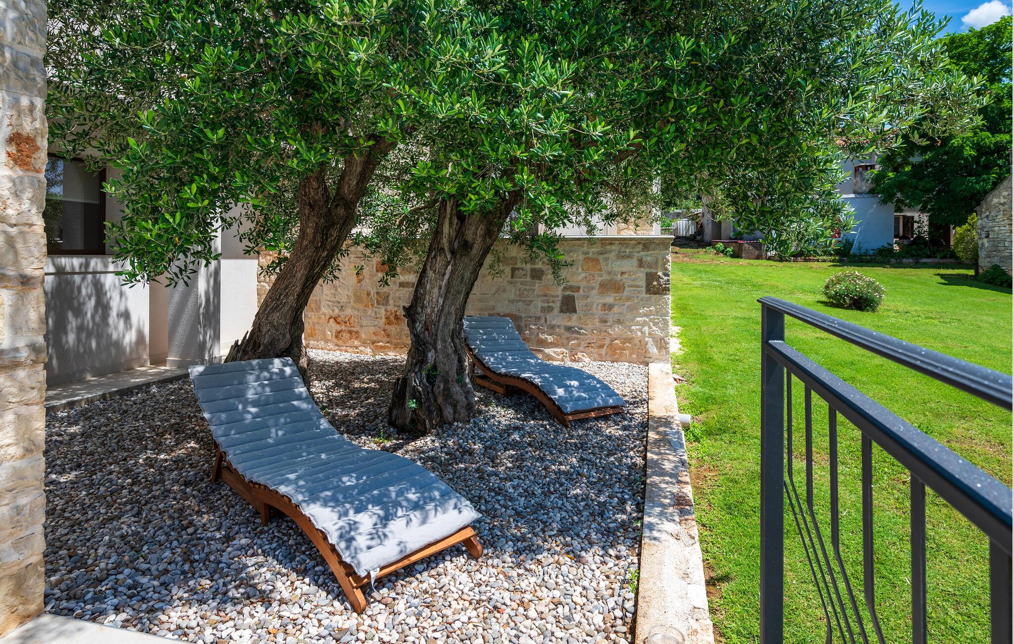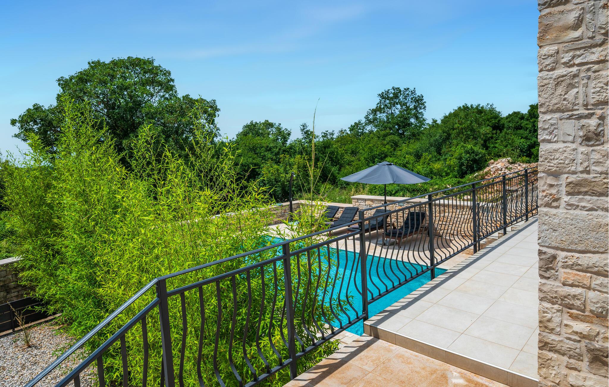 In einer malerischen Umgebung in Istrien gelegen, empfängt Sie Ihr imposantes Ferienhaus in Golas zu einem Urlaub mit ganz viel Komfort, Ruhe und spannenden Ausflugszielen. Gleich morgens erwartet Sie Ihr privater Pool zu einer ersten wohltuenden Erfrischung. Genießen Sie die Ruhe und die freie Urlaubszeit beim Schwimmen und später beim Relaxen auf den komfortablen Sonnenliegen. Nutzen Sie den idyllischen Garten, um die Natur zu genießen. Die Bäume spenden angenehmen Schatten, während die gemütlichen Sitzmöglichkeiten zum Verweilen einladen. Auf Ihrem Rasen sind sportliche Aktivitäten wie Fußball und Federball angesagt. Der Balkon im Obergeschoss eröffnet den Blick auf das Meer, das am Horizont verlockend glitzert.