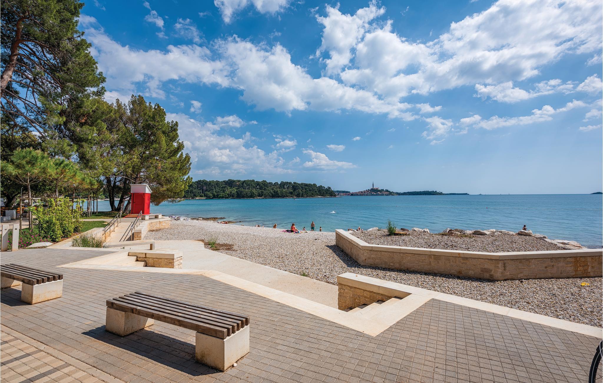 Dieses gemütlich eingerichtete Ferienhaus, neben einem Restaurant gelegen, bietet Alles was Sie für einen entspannten Urlaub benötigen. Auf der Terrasse werden Sie mit Ihren Liebsten in Gesellschaft dem Vogelgezwitscher lauschen. Dem gepflegten Garten werden sich Ihre Kleinsten besonders erfreuen, wo sie richtig austoben können. Sonne, Strand und Meer erreichen Sie von hier aus nach einem kurzen Spaziergang. Das pittoreske Rovinj liegt an der Westküste Istriens und wird oft als eine der schönsten Städte Kroatiens bezeichnet. Die lebendige Uferpromenade umzingelt die romantische Altstadt, die ihren Besuchern eine besondere Atmosphäre nahebringt. Jeder Schritt führt in die venezianische Epoche, die an jeder Ecke dieses Labyrinths von Gässchen zu erkennen ist. Bunte Häuser der Altstadt, Sehenswürdigkeiten, Restaurants und Cafés führen Sie zur Kirche der Hl. Eufemija, die als Wahrzeichen über der Altstadt thront. Steigen Sie den Glockenturm empor und genießen Sie die zauberhafte Aussicht, die sich vom kristallklaren Meer bis zu den malerischen Schornsteinen der Altstadt erstreckt. Badeurlauber kommen neben Geschichtsliebhabern auch auf ihre Kosten hier, denn traumhafte Strände und Buchten schmücken die Riviera von Rovinj. Beliebt sind der Strand Baluota, unterhalb der Sv. Eufemija und die Strände am "Goldenen Kap", wie z.B der Strand Lone. Felsbuchten oder flach abfallende Kieselstrände, hier findet sich für jeden etwas. Wenn Sie in Ihrem Urlaub fit bleiben möchten, dann stehen Ihnen zahlreiche Sport- und Freizeitmöglichkeiten zur Verfügung. Lassen Sie Ihren Abend mit einem romantischen Spaziergang ausklingen oder lernen Sie das aufregende Nachtleben von Rovinj kennen.