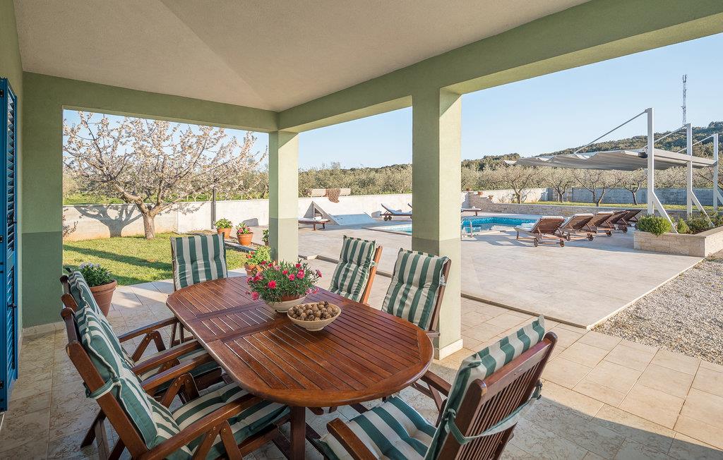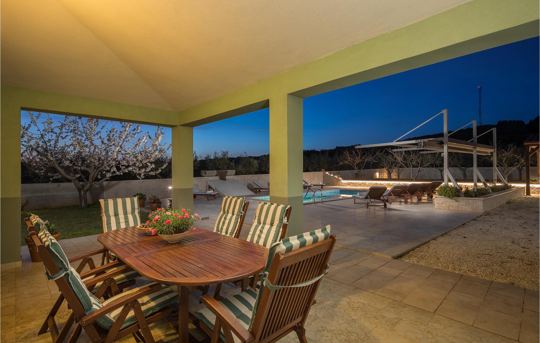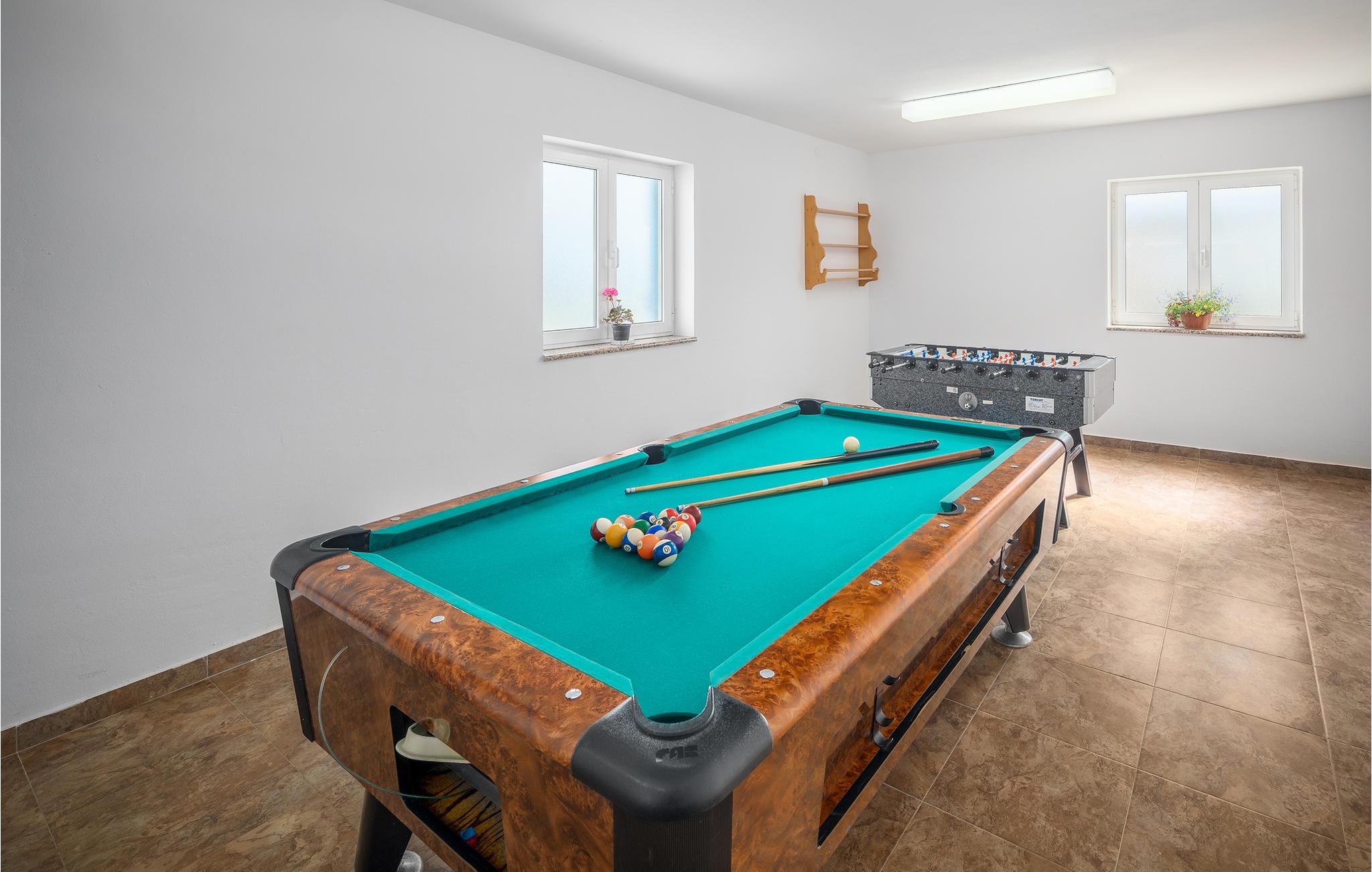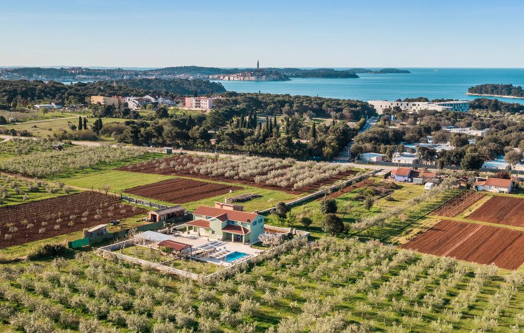 In der romantischen Stadt Rovinj, unweit des Strandes gelegen, ist dieses Ferienhaus mit privatem Pool eine ausgezeichnete Wahl für Ihren Urlaub. Hier bemerken Sie die Natur, denn in der Umgebung wachsen Olivenbäume und Weinreben. Der Innenbereich verteilt sich auf drei Etagen (Innentreppe). Das Haus ist geräumig und modern eingerichtet. Im umzäunten Hof liegt neben dem Pool eine überdachte Terrasse. Hier sind die Sommerküche, ein Tisch und Stühle untergebracht. Ein schönes, schattiges Ambiente für das Gemeinsame Verzehren von Speisen vom Grill. Bereichern Sie Ihre Freizeit mit Billard, Darts und Tischfußball. Fünf Minuten Gehweg entfernt liegen die schönen Kiesstrände und natürlichen Steinstrände von Rovinj.