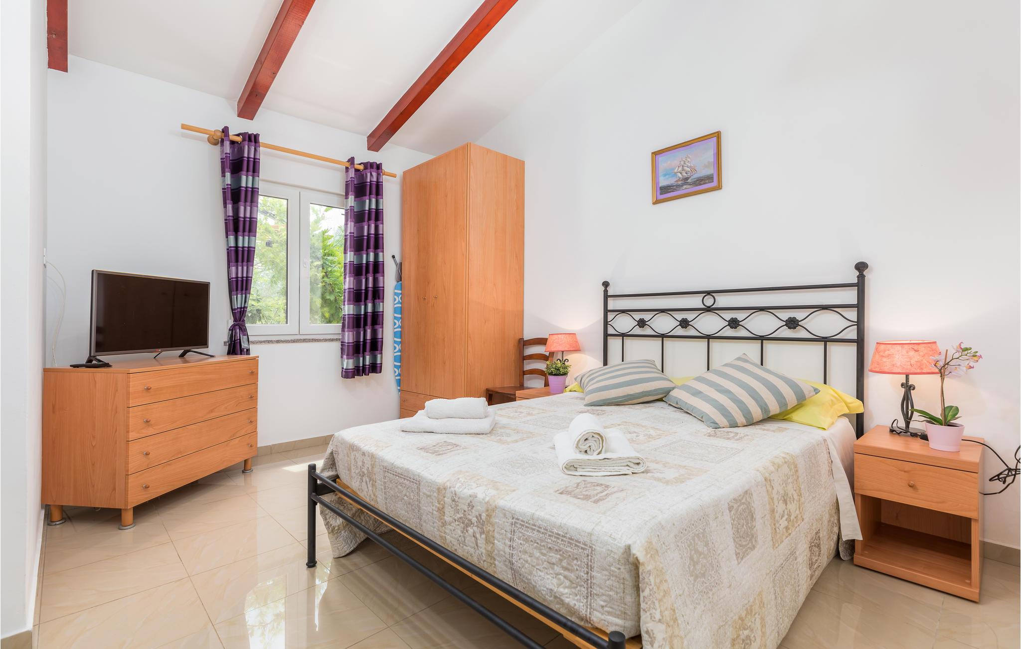 Zum Haus gehört auch ein privat eingezäunter Garten, der ein schöner Ort für Ruhe und Erholung ist. Sie wohnen 1,5 km vom Kiesstrand entfernt, wo Sie sicher viele Stunden beim Schwimmen, Sonnenbaden und Spielen verbringen werden.