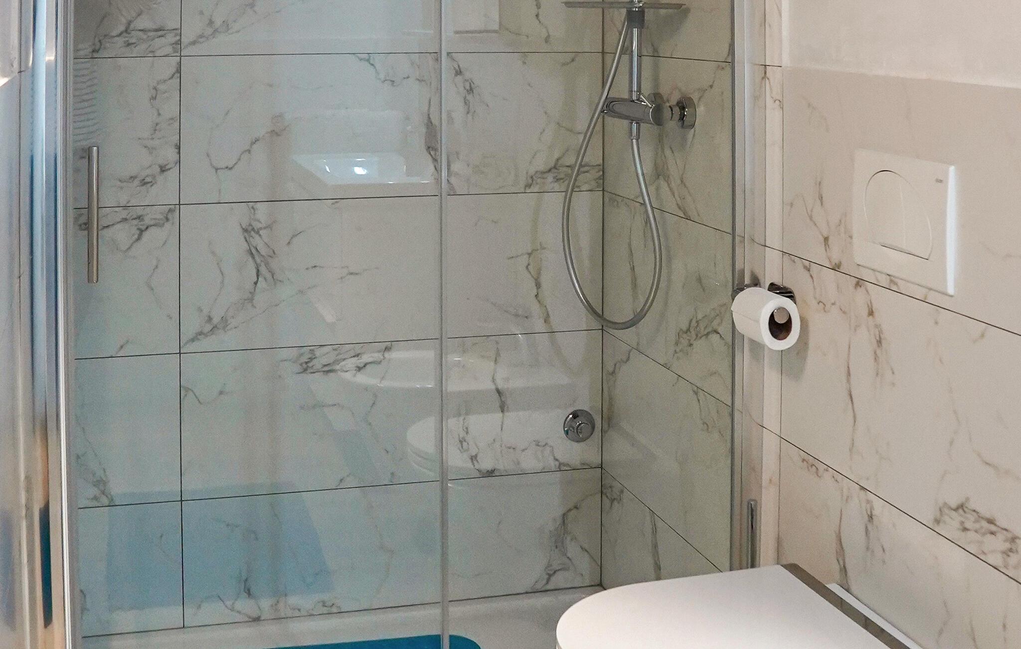 - WC mit warmem und kaltem Wasser, Dusche
