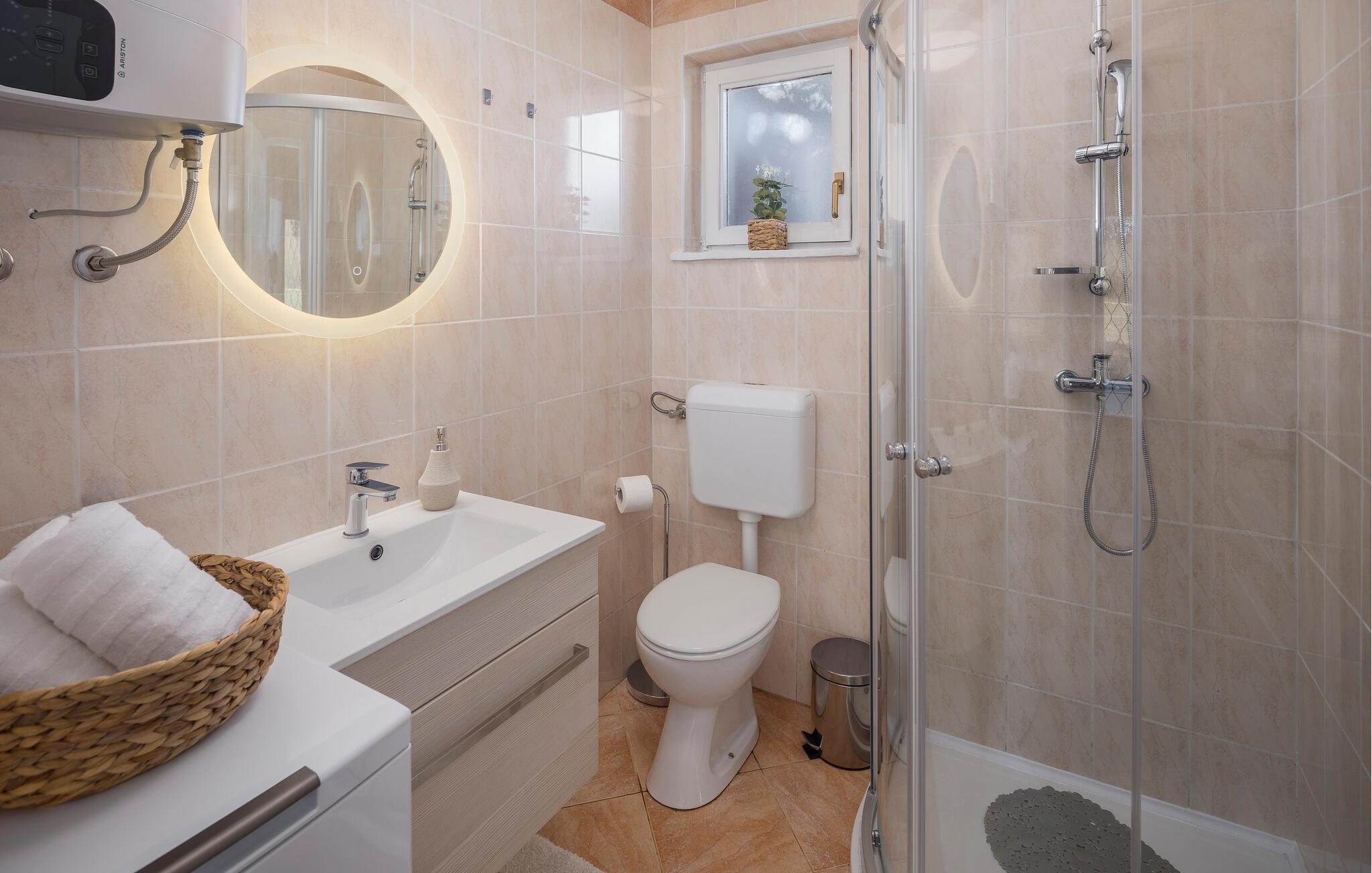 - WC mit warmem und kaltem Wasser, Dusche