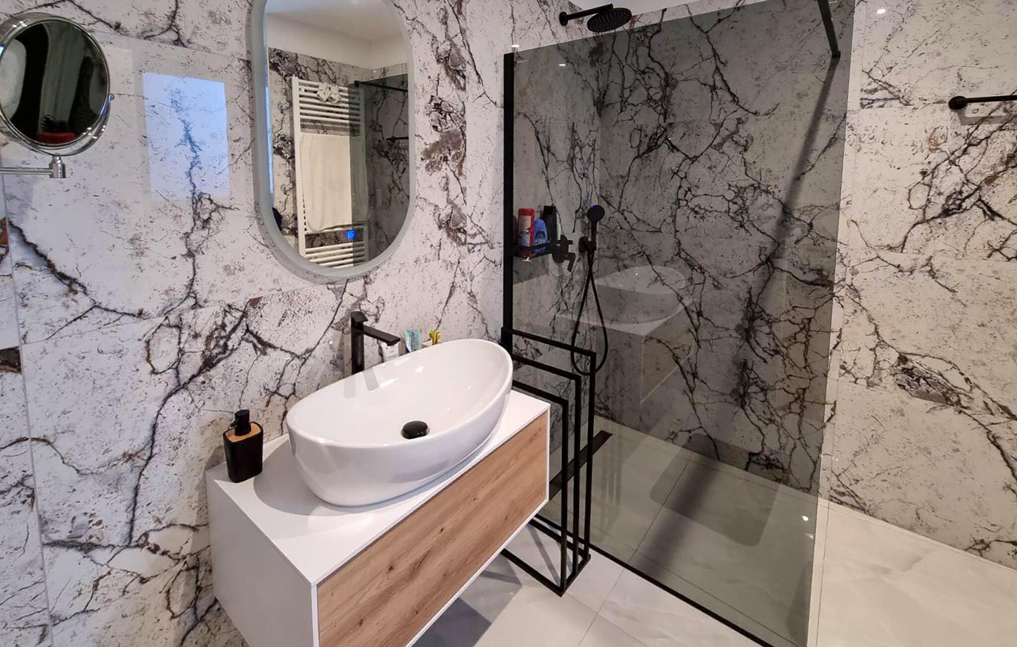 Nutzen Sie den Wohnraum mit Sofa und Fernseher für entspannte Abende nach erlebnisreichen Tagen. Bereiten Sie Mahlzeiten in der integrierten Küche zu und gestalten Sie Ihren Tagesablauf unabhängig und flexibel. Verweilen Sie in den hellen Räumen, die durch ihre schlichte Gestaltung eine angenehme Wohnatmosphäre schaffen.