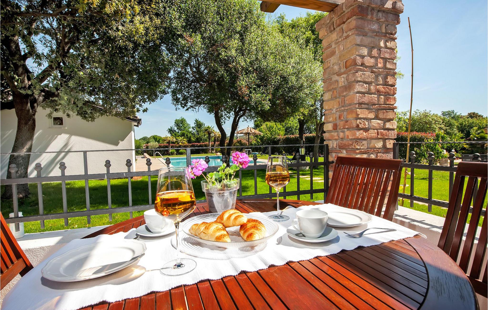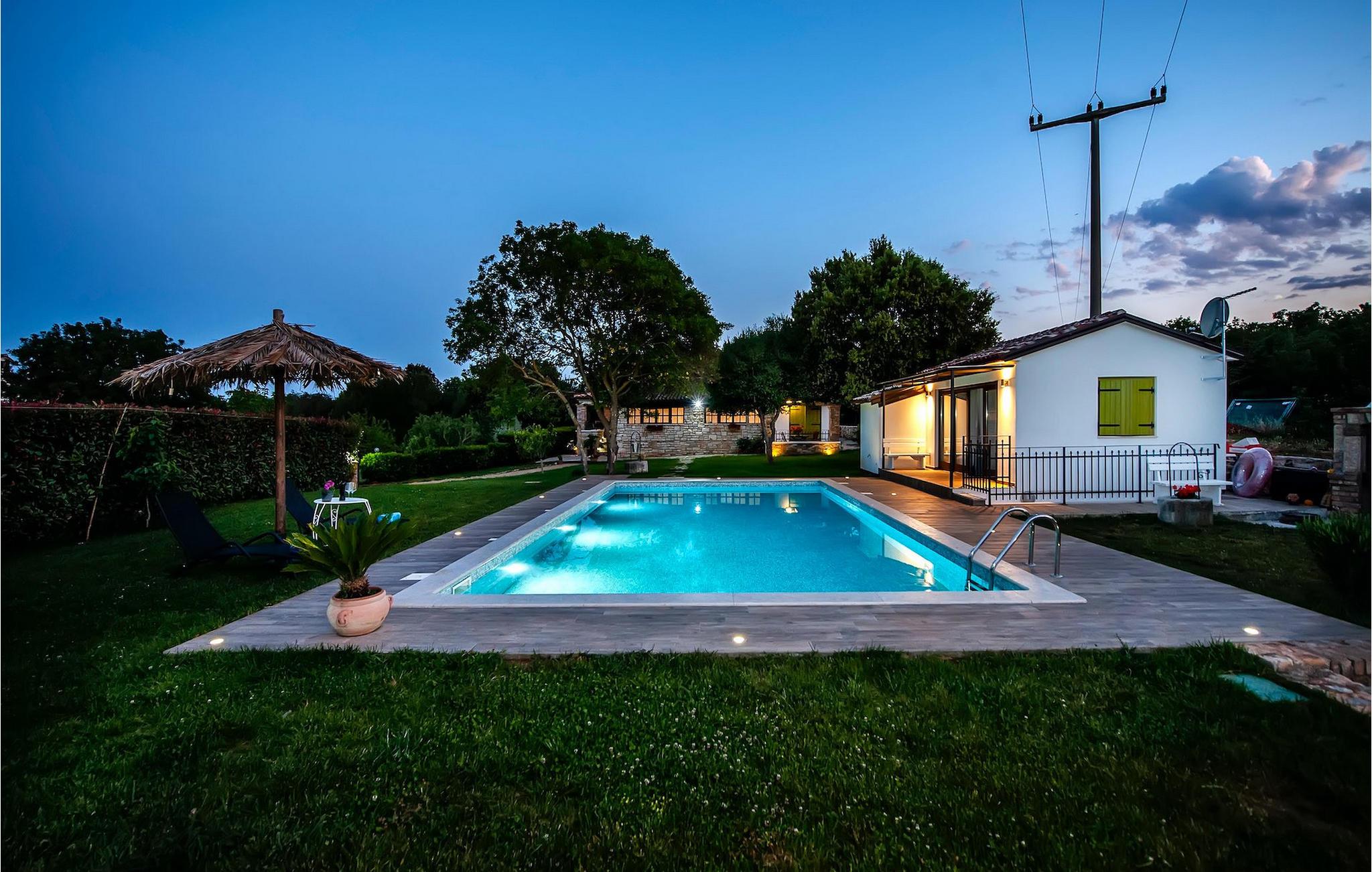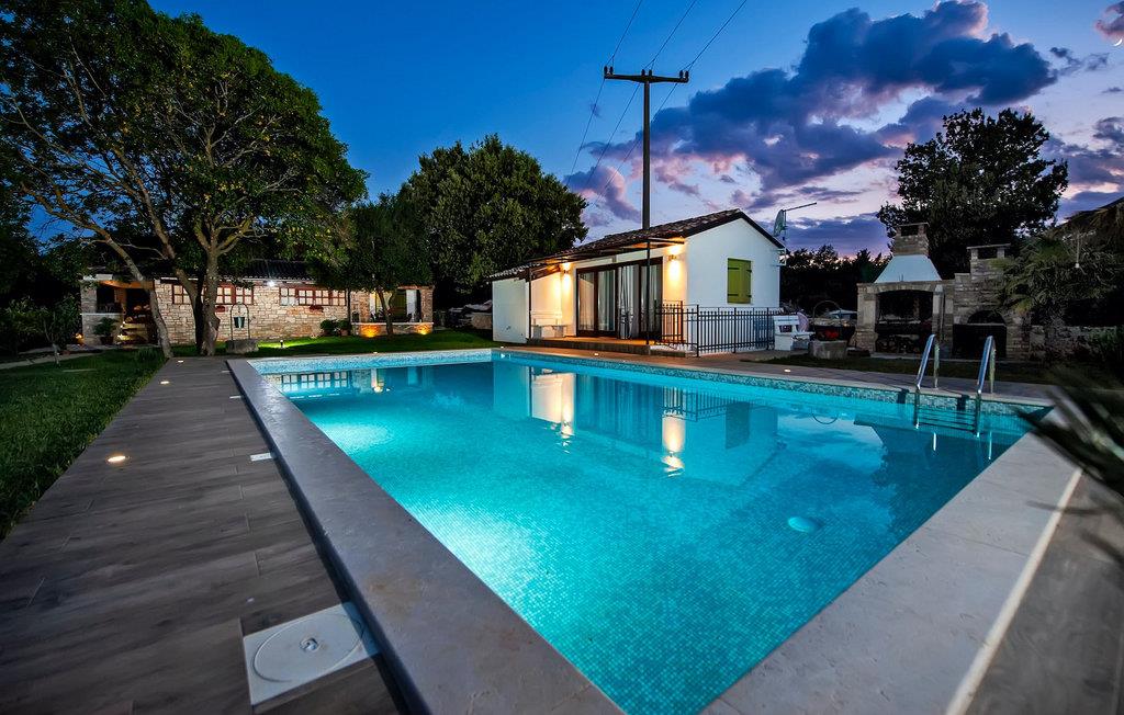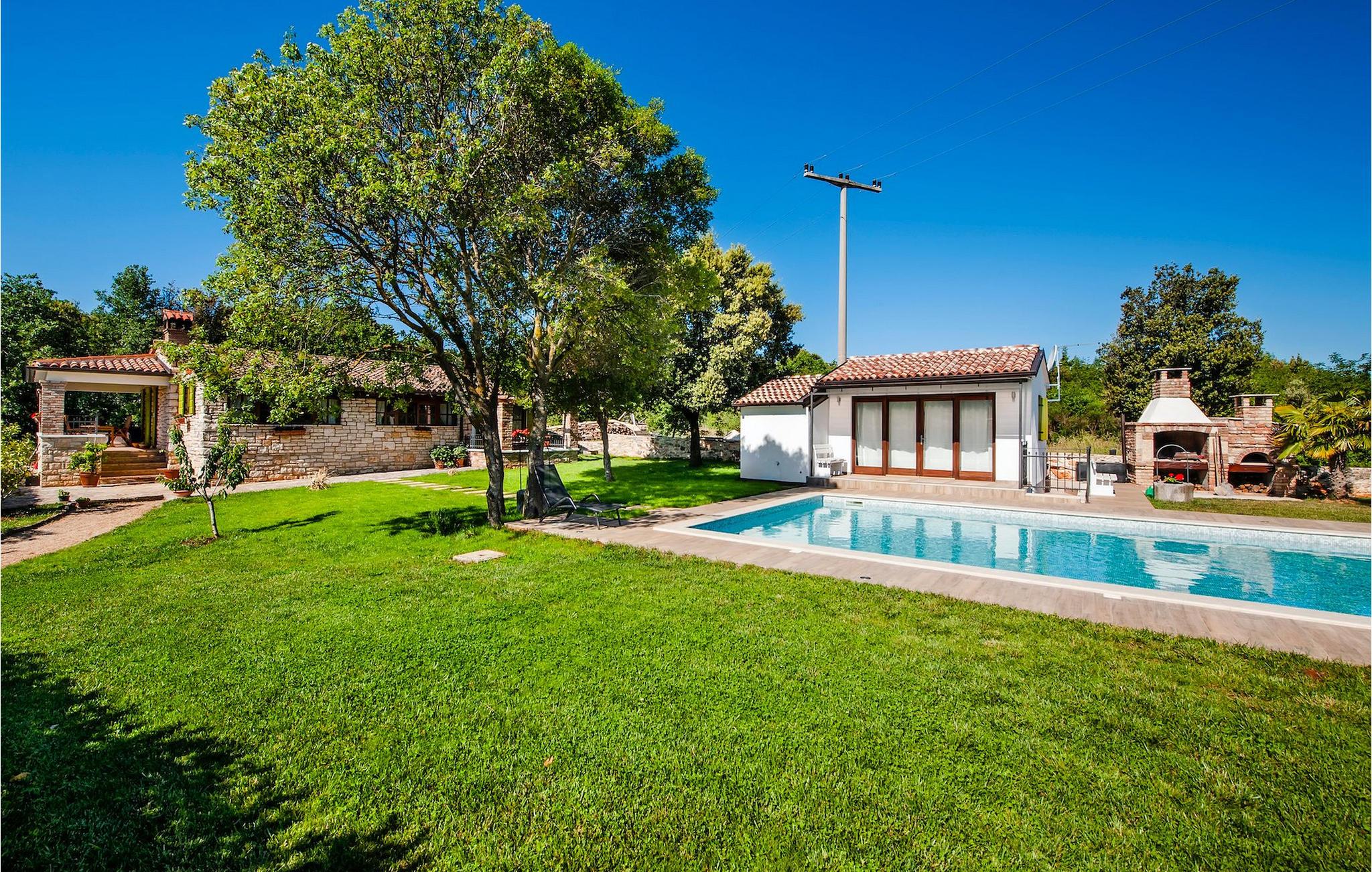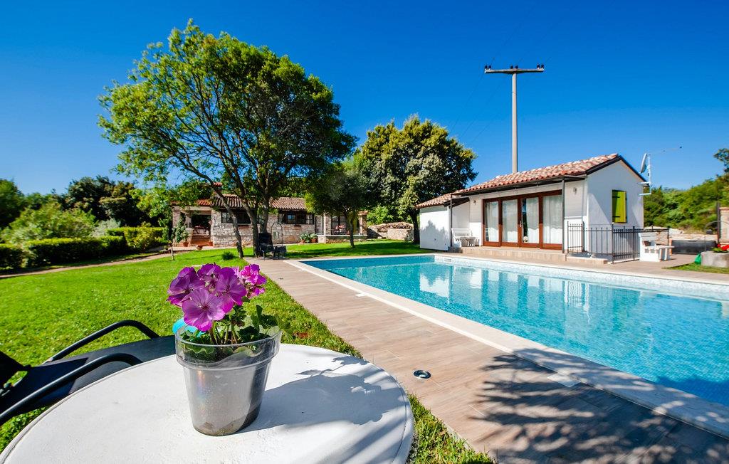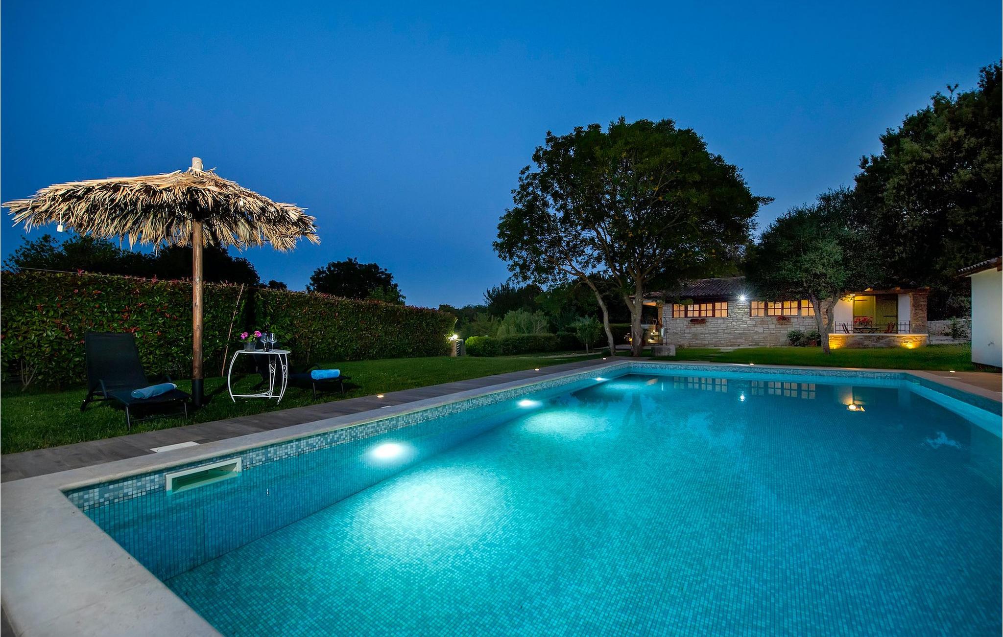 Die schöne moderne Villa Antica befindet sich in Meeresnähe in der Peripherie des alten Rovinj. Eine ihrer schönsten Eigenschaften ist der große Pool im Innenhof. Die Villa selbst bietet Platz für bis zu sieben Personen. Sie besteht aus zwei Häusern, dem Haupthaus und einem Studio-Apartment. Das Haupthaus verfügt über einen offenen Wohn- und Essbereich, sowie drei Schlafzimmer. Ein Schlafzimmer ist mit einem Doppelbett ausgestattet, während in den anderen beiden Zimmern jeweils ein Einzelbett steht. Außerdem gibt es ein großes Badezimmer mit Badewanne, in der Sie sich entspannen können. Draußen können Sie mit einem kalten Getränk auf der Terrasse oder auf den Sonnenliegen am Pool entspannen oder im 72 m² großen Pool schwimmen. Es gibt auch einen Grill, auf dem Sie großartige Mahlzeiten zubereiten können. Das Studio-Apartment bietet im Vergleich zum Haupthaus etwas mehr Privatsphäre. Es besteht aus einem Wohnzimmer mit einem Doppelbett für zwei Personen und verfügt über ein Badezimmer mit Dusche. Buchen Sie die Villa Antica für Ihren erholsamen Urlaub!Die Villa Antica befindet sich in einem Vorort der antiken Stadt Rovinj, einer der schönsten und romantischsten Städte Kroatiens. Sie ist nur wenige Gehminuten vom Strand Polari und wenige Autominuten vom Stadtzentrum entfernt. Im Zentrum können Sie das alte Netz von Steinstraßen erkunden, die auf die Spitze des Hügels führen, wo sich die schöne alte Kirche St. Euphemia befindet. Von der Spitze des Kirchturms aus können Sie die Aussicht genießen, die sich über die ganze Stadt erstreckt und niemanden gleichgültig lässt. Vom Zentrum aus können Sie in Richtung des Parkwaldes Zlatni Rt gehen, einer der schönsten Landschaften Westisstriens. Lassen Sie sich auf keinen Fall die Fahrt zum Lim-Kanal entgehen, einer der attraktivsten natürlichen Ressourcen in West-Istrien, der sich nur 15 Kilometer außerhalb von Rovinj befindet.