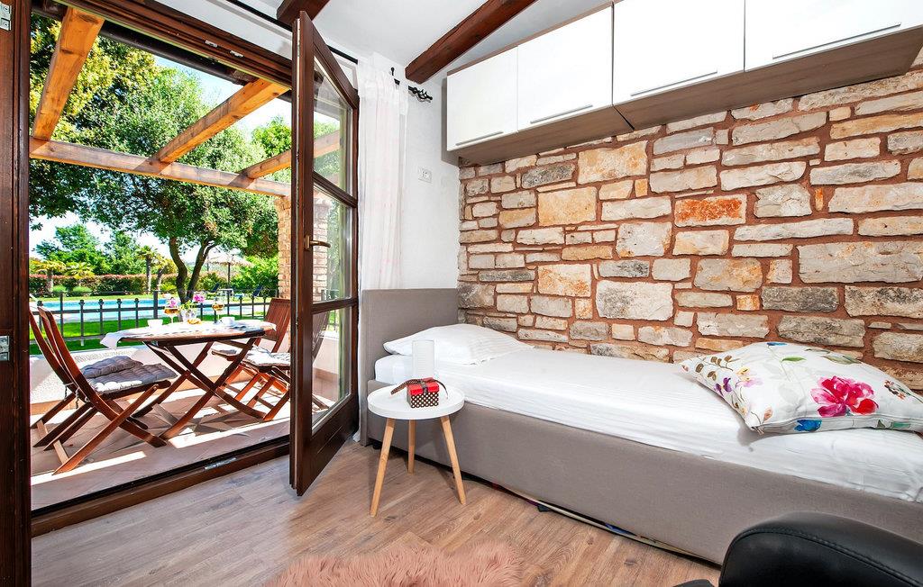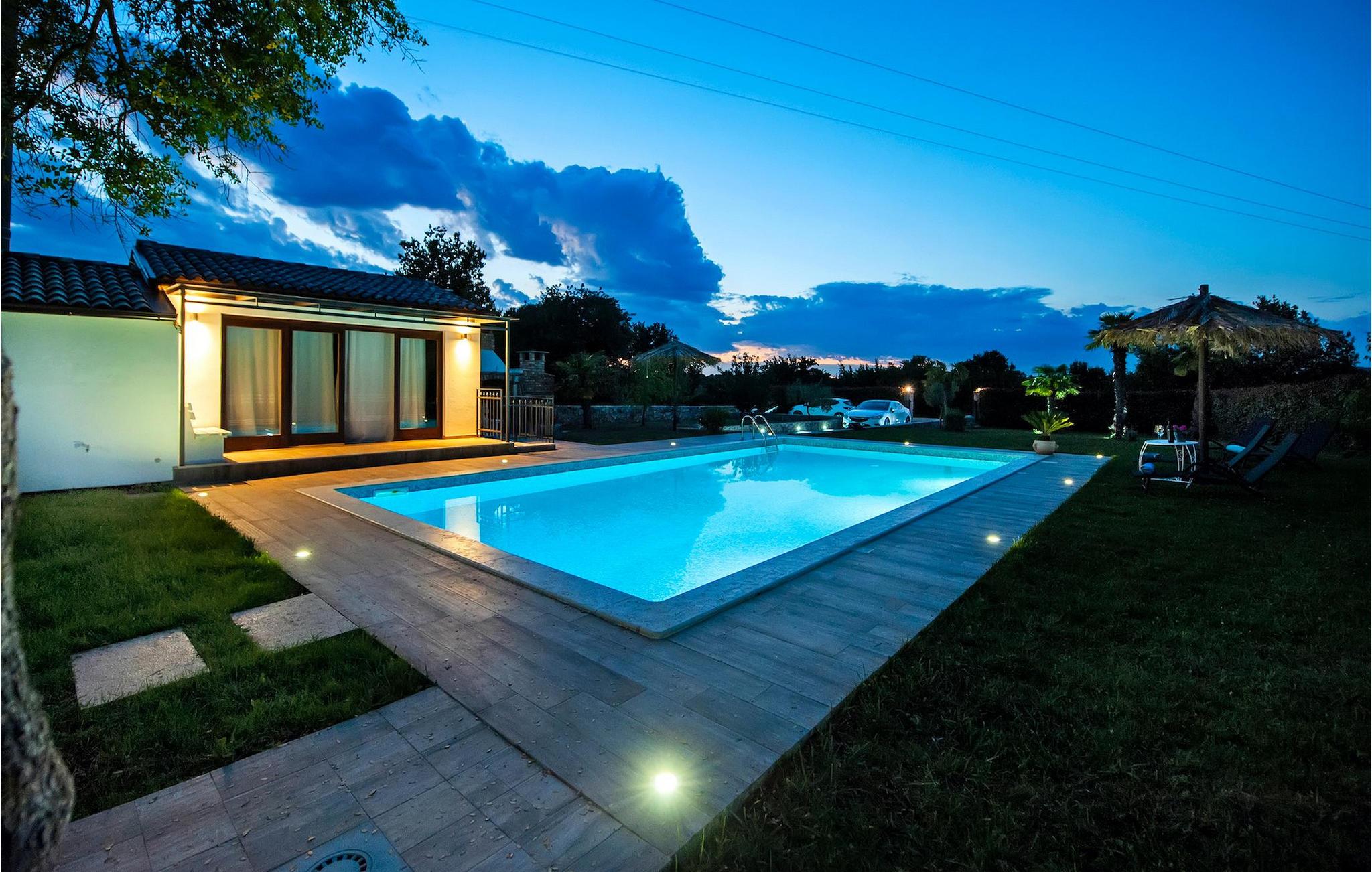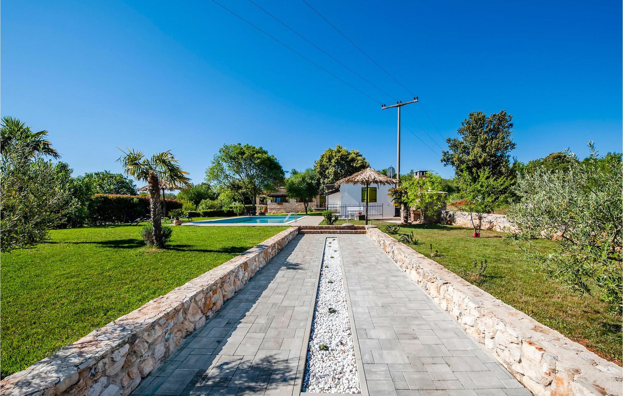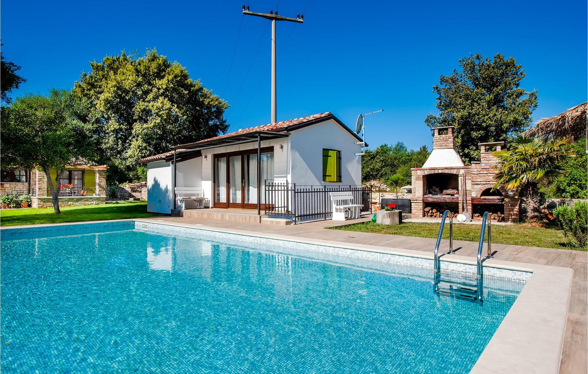 Die schöne moderne Villa Antica befindet sich in Meeresnähe in der Peripherie des alten Rovinj. Eine ihrer schönsten Eigenschaften ist der große Pool im Innenhof. Die Villa selbst bietet Platz für bis zu sieben Personen. Sie besteht aus zwei Häusern, dem Haupthaus und einem Studio-Apartment. Das Haupthaus verfügt über einen offenen Wohn- und Essbereich, sowie drei Schlafzimmer. Ein Schlafzimmer ist mit einem Doppelbett ausgestattet, während in den anderen beiden Zimmern jeweils ein Einzelbett steht. Außerdem gibt es ein großes Badezimmer mit Badewanne, in der Sie sich entspannen können. Draußen können Sie mit einem kalten Getränk auf der Terrasse oder auf den Sonnenliegen am Pool entspannen oder im 72 m² großen Pool schwimmen. Es gibt auch einen Grill, auf dem Sie großartige Mahlzeiten zubereiten können. Das Studio-Apartment bietet im Vergleich zum Haupthaus etwas mehr Privatsphäre. Es besteht aus einem Wohnzimmer mit einem Doppelbett für zwei Personen und verfügt über ein Badezimmer mit Dusche. Buchen Sie die Villa Antica für Ihren erholsamen Urlaub!Die Villa Antica befindet sich in einem Vorort der antiken Stadt Rovinj, einer der schönsten und romantischsten Städte Kroatiens. Sie ist nur wenige Gehminuten vom Strand Polari und wenige Autominuten vom Stadtzentrum entfernt. Im Zentrum können Sie das alte Netz von Steinstraßen erkunden, die auf die Spitze des Hügels führen, wo sich die schöne alte Kirche St. Euphemia befindet. Von der Spitze des Kirchturms aus können Sie die Aussicht genießen, die sich über die ganze Stadt erstreckt und niemanden gleichgültig lässt. Vom Zentrum aus können Sie in Richtung des Parkwaldes Zlatni Rt gehen, einer der schönsten Landschaften Westisstriens. Lassen Sie sich auf keinen Fall die Fahrt zum Lim-Kanal entgehen, einer der attraktivsten natürlichen Ressourcen in West-Istrien, der sich nur 15 Kilometer außerhalb von Rovinj befindet.