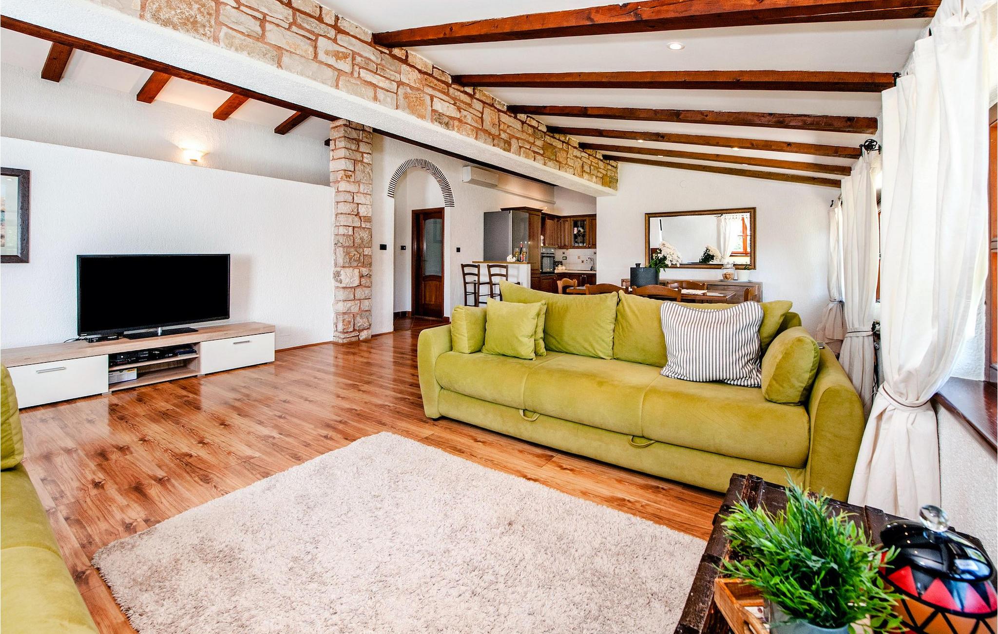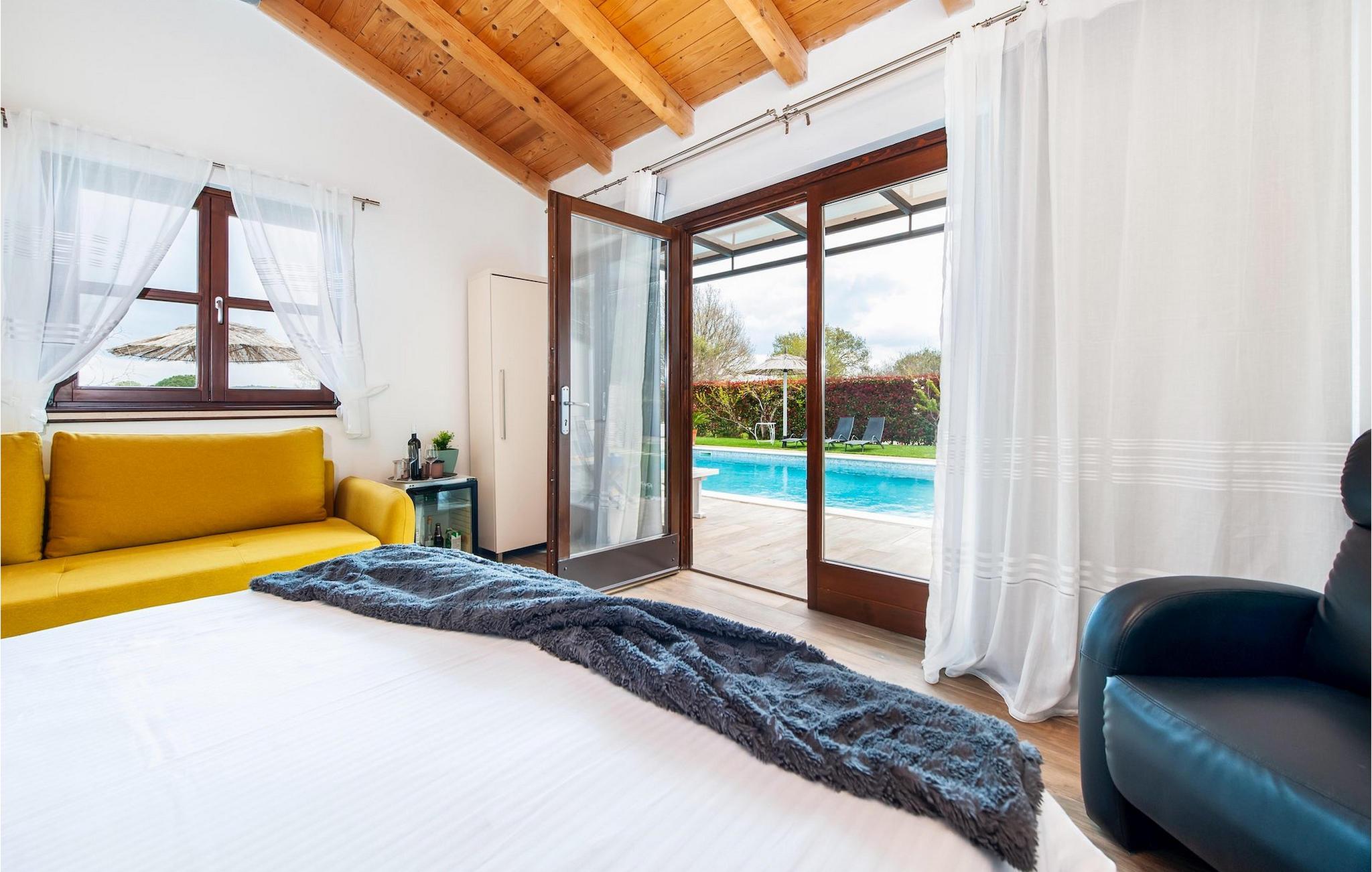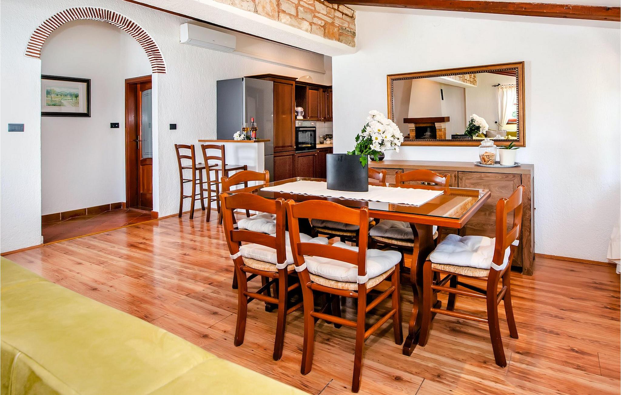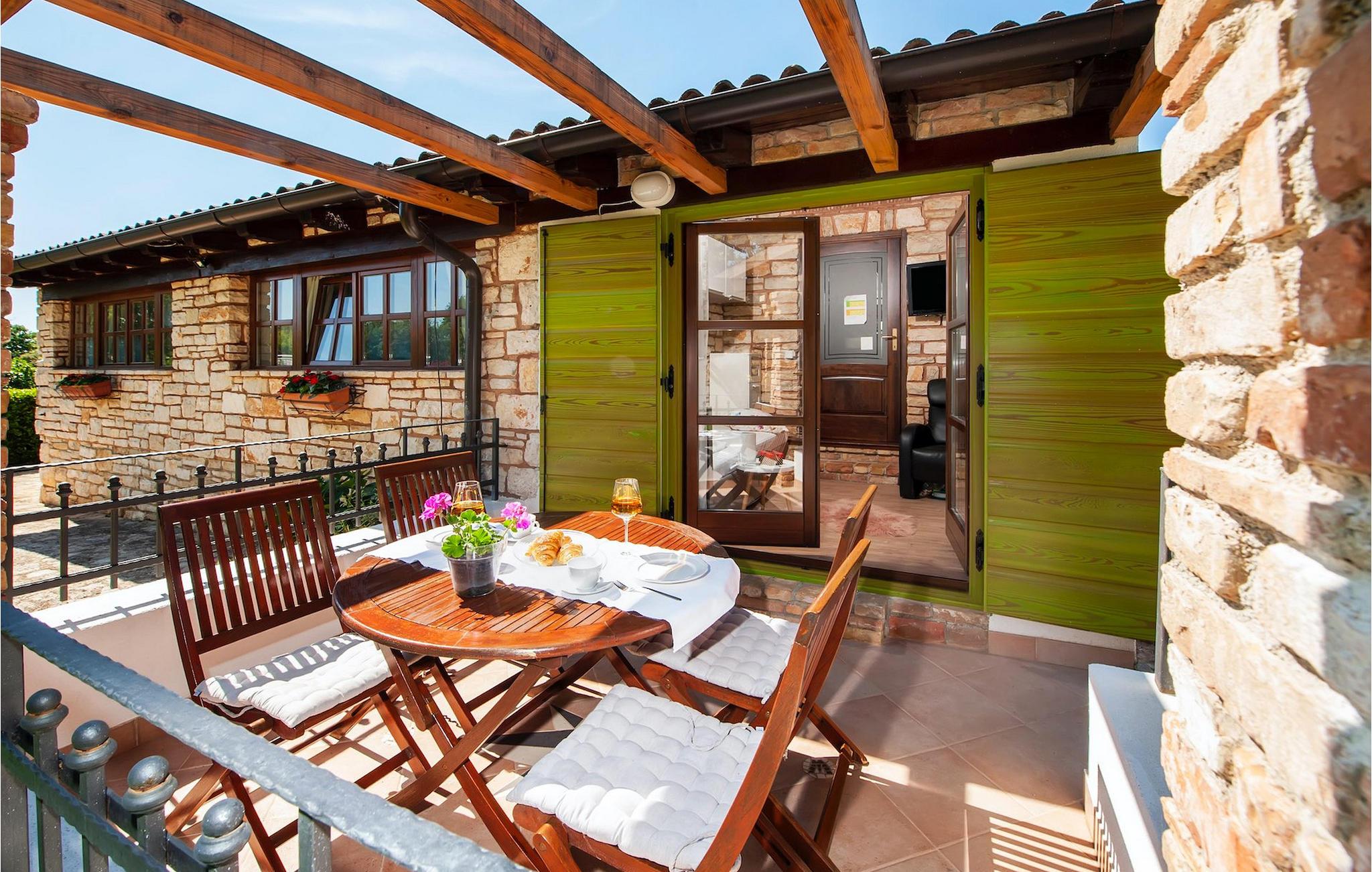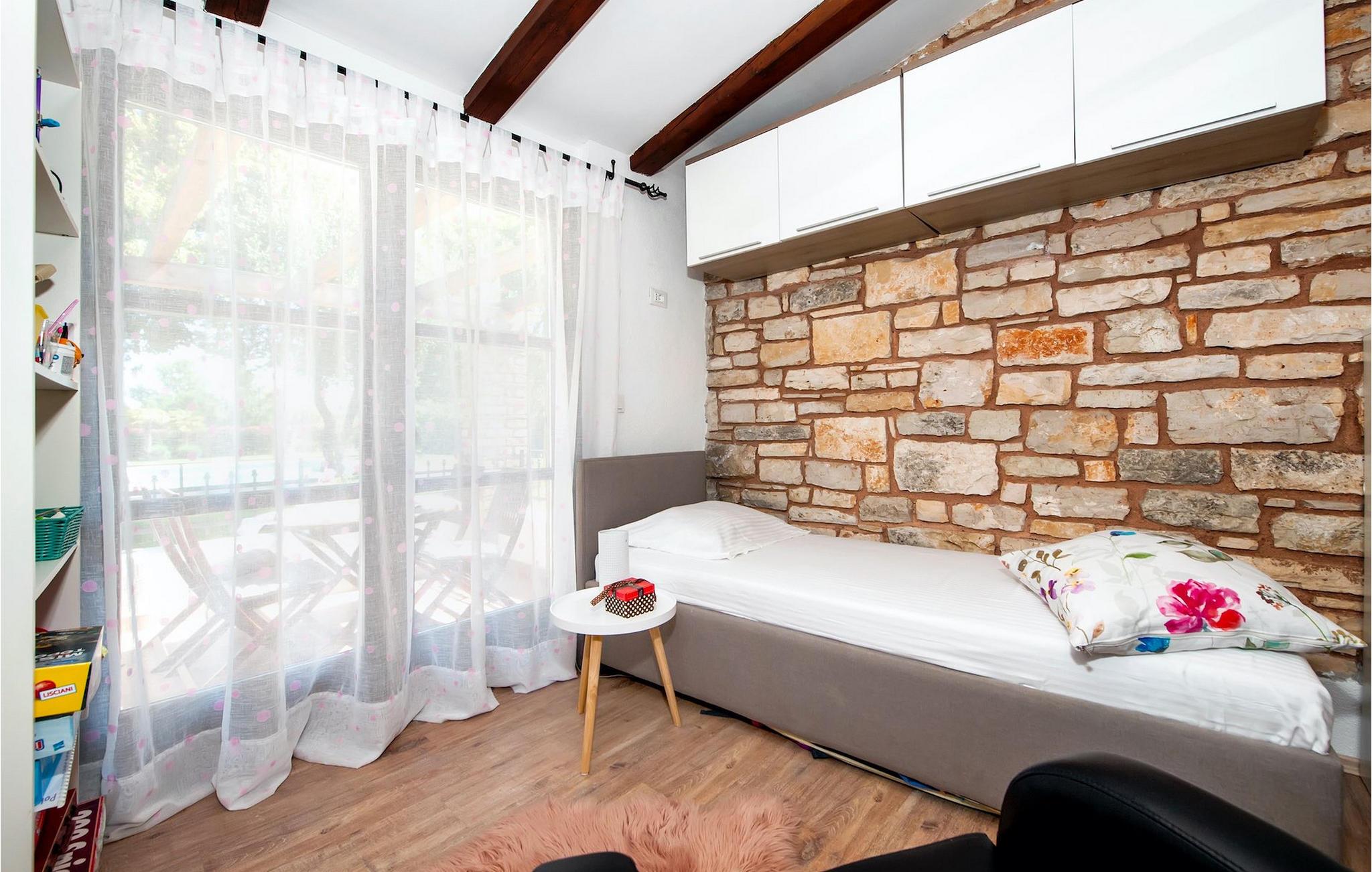 Die schöne moderne Villa Antica befindet sich in Meeresnähe in der Peripherie des alten Rovinj. Eine ihrer schönsten Eigenschaften ist der große Pool im Innenhof. Die Villa selbst bietet Platz für bis zu sieben Personen. Sie besteht aus zwei Häusern, dem Haupthaus und einem Studio-Apartment. Das Haupthaus verfügt über einen offenen Wohn- und Essbereich, sowie drei Schlafzimmer. Ein Schlafzimmer ist mit einem Doppelbett ausgestattet, während in den anderen beiden Zimmern jeweils ein Einzelbett steht. Außerdem gibt es ein großes Badezimmer mit Badewanne, in der Sie sich entspannen können. Draußen können Sie mit einem kalten Getränk auf der Terrasse oder auf den Sonnenliegen am Pool entspannen oder im 72 m² großen Pool schwimmen. Es gibt auch einen Grill, auf dem Sie großartige Mahlzeiten zubereiten können. Das Studio-Apartment bietet im Vergleich zum Haupthaus etwas mehr Privatsphäre. Es besteht aus einem Wohnzimmer mit einem Doppelbett für zwei Personen und verfügt über ein Badezimmer mit Dusche. Buchen Sie die Villa Antica für Ihren erholsamen Urlaub!Die Villa Antica befindet sich in einem Vorort der antiken Stadt Rovinj, einer der schönsten und romantischsten Städte Kroatiens. Sie ist nur wenige Gehminuten vom Strand Polari und wenige Autominuten vom Stadtzentrum entfernt. Im Zentrum können Sie das alte Netz von Steinstraßen erkunden, die auf die Spitze des Hügels führen, wo sich die schöne alte Kirche St. Euphemia befindet. Von der Spitze des Kirchturms aus können Sie die Aussicht genießen, die sich über die ganze Stadt erstreckt und niemanden gleichgültig lässt. Vom Zentrum aus können Sie in Richtung des Parkwaldes Zlatni Rt gehen, einer der schönsten Landschaften Westisstriens. Lassen Sie sich auf keinen Fall die Fahrt zum Lim-Kanal entgehen, einer der attraktivsten natürlichen Ressourcen in West-Istrien, der sich nur 15 Kilometer außerhalb von Rovinj befindet.