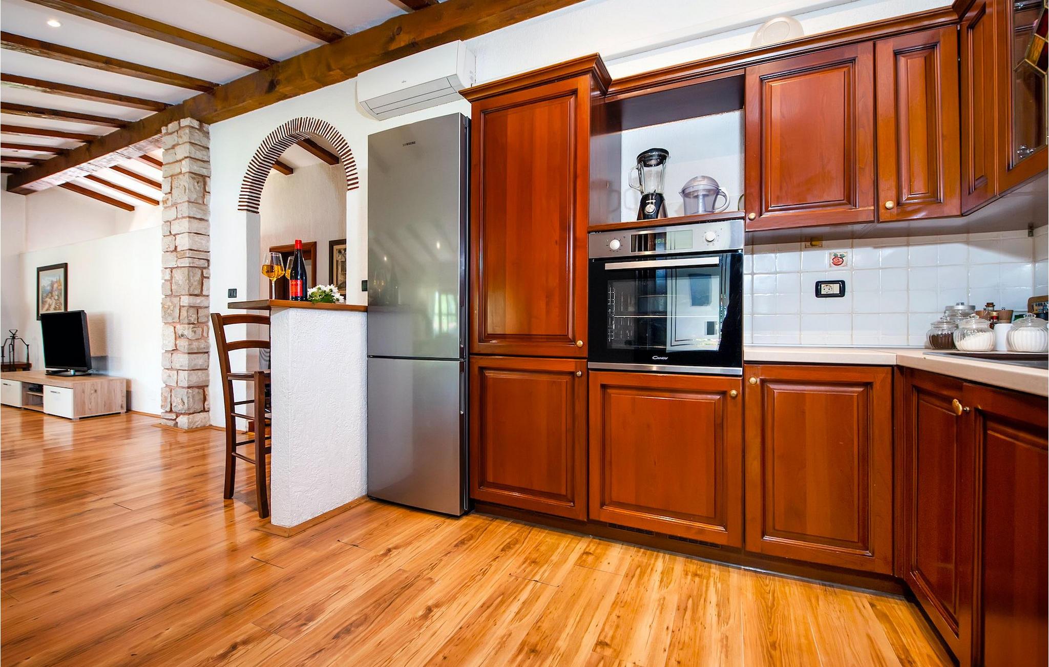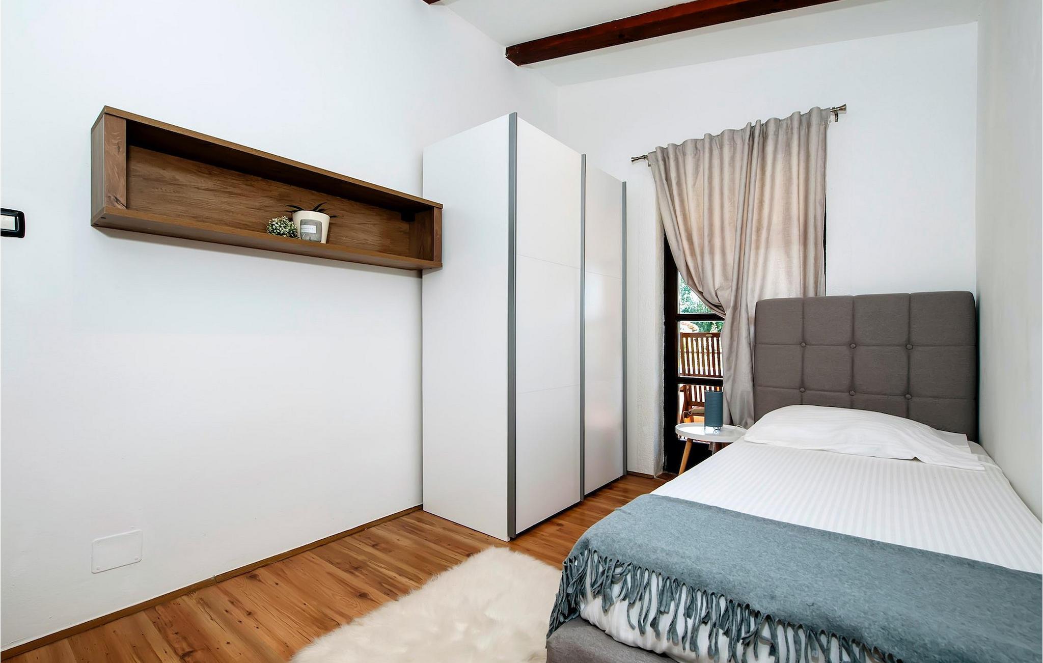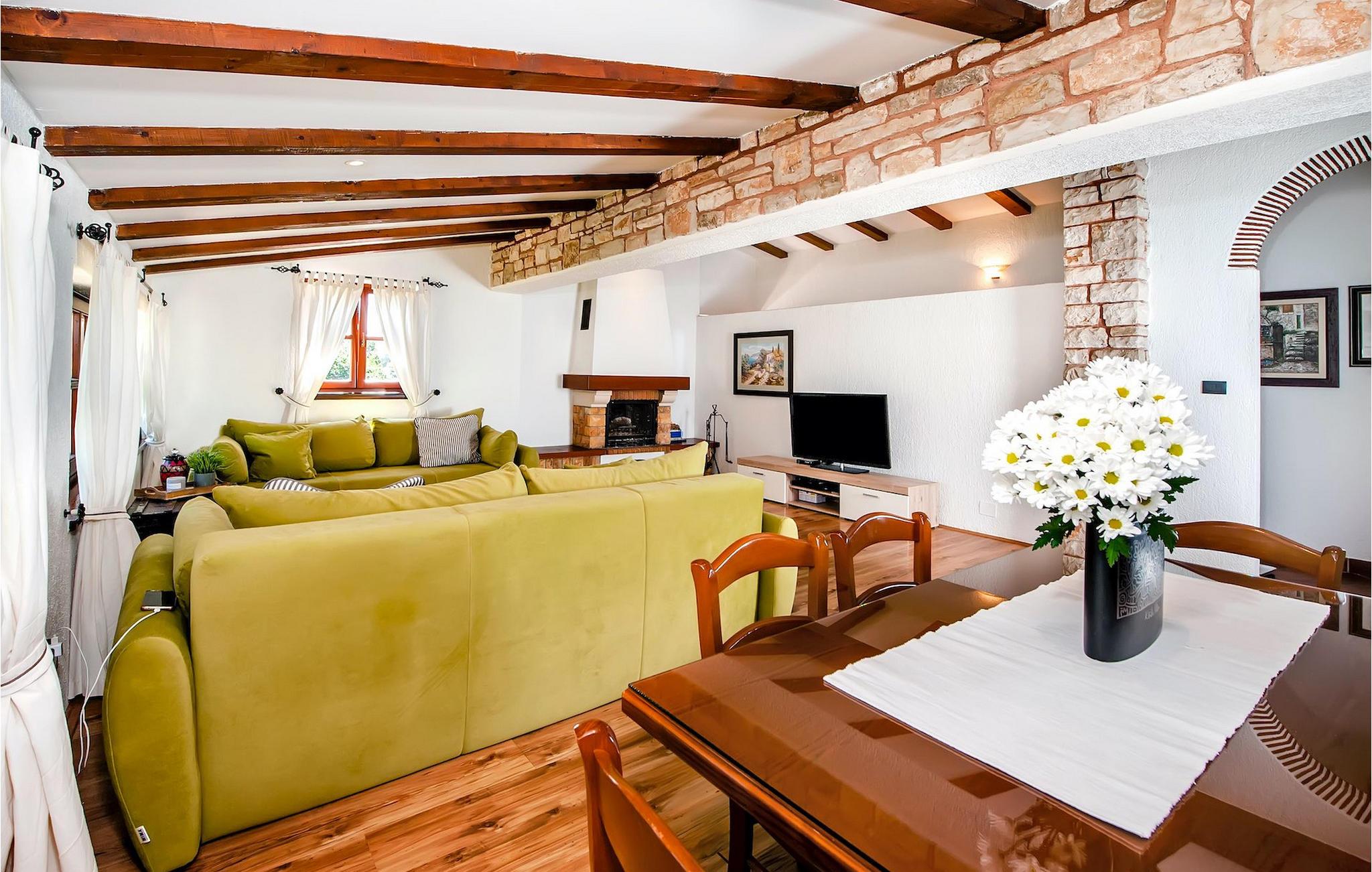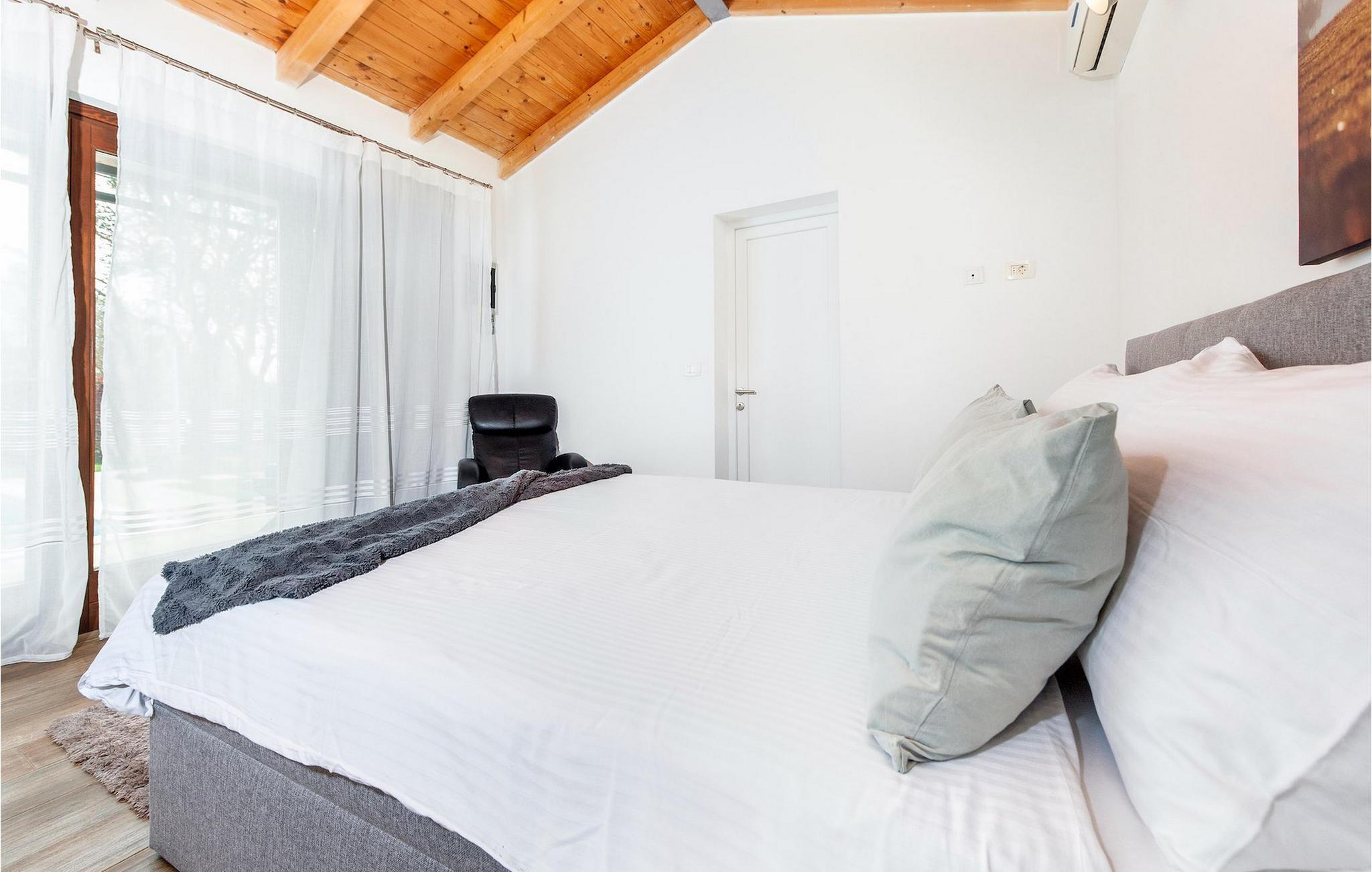 Die schöne moderne Villa Antica befindet sich in Meeresnähe in der Peripherie des alten Rovinj. Eine ihrer schönsten Eigenschaften ist der große Pool im Innenhof. Die Villa selbst bietet Platz für bis zu sieben Personen. Sie besteht aus zwei Häusern, dem Haupthaus und einem Studio-Apartment. Das Haupthaus verfügt über einen offenen Wohn- und Essbereich, sowie drei Schlafzimmer. Ein Schlafzimmer ist mit einem Doppelbett ausgestattet, während in den anderen beiden Zimmern jeweils ein Einzelbett steht. Außerdem gibt es ein großes Badezimmer mit Badewanne, in der Sie sich entspannen können. Draußen können Sie mit einem kalten Getränk auf der Terrasse oder auf den Sonnenliegen am Pool entspannen oder im 72 m² großen Pool schwimmen. Es gibt auch einen Grill, auf dem Sie großartige Mahlzeiten zubereiten können. Das Studio-Apartment bietet im Vergleich zum Haupthaus etwas mehr Privatsphäre. Es besteht aus einem Wohnzimmer mit einem Doppelbett für zwei Personen und verfügt über ein Badezimmer mit Dusche. Buchen Sie die Villa Antica für Ihren erholsamen Urlaub!Die Villa Antica befindet sich in einem Vorort der antiken Stadt Rovinj, einer der schönsten und romantischsten Städte Kroatiens. Sie ist nur wenige Gehminuten vom Strand Polari und wenige Autominuten vom Stadtzentrum entfernt. Im Zentrum können Sie das alte Netz von Steinstraßen erkunden, die auf die Spitze des Hügels führen, wo sich die schöne alte Kirche St. Euphemia befindet. Von der Spitze des Kirchturms aus können Sie die Aussicht genießen, die sich über die ganze Stadt erstreckt und niemanden gleichgültig lässt. Vom Zentrum aus können Sie in Richtung des Parkwaldes Zlatni Rt gehen, einer der schönsten Landschaften Westisstriens. Lassen Sie sich auf keinen Fall die Fahrt zum Lim-Kanal entgehen, einer der attraktivsten natürlichen Ressourcen in West-Istrien, der sich nur 15 Kilometer außerhalb von Rovinj befindet.