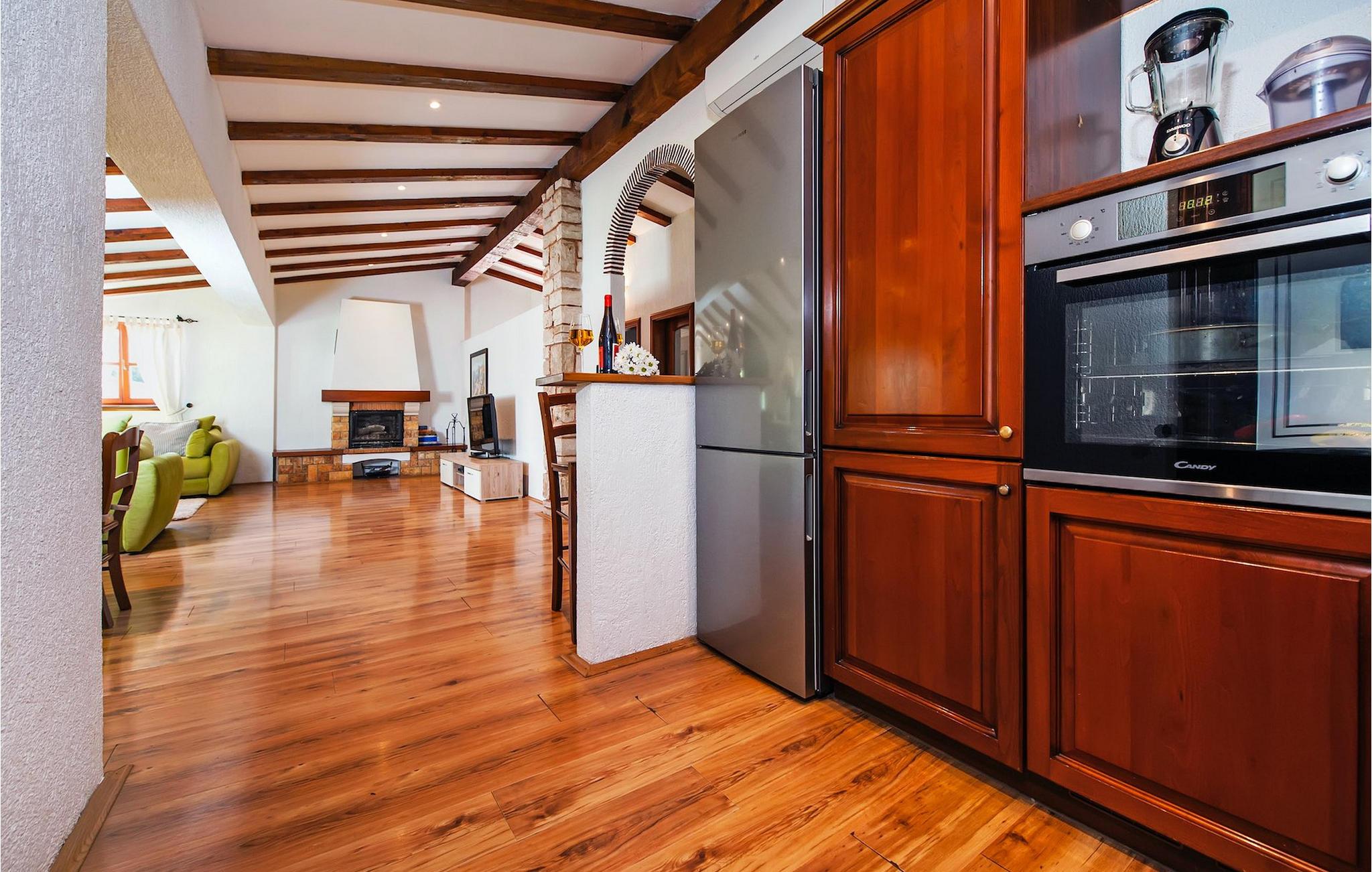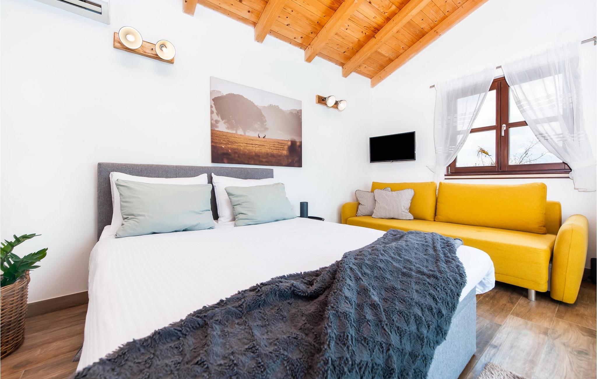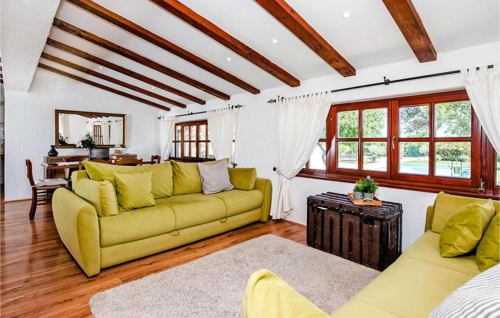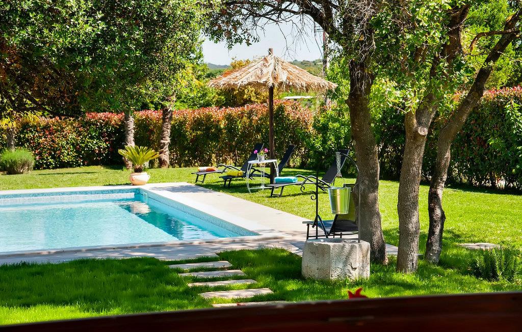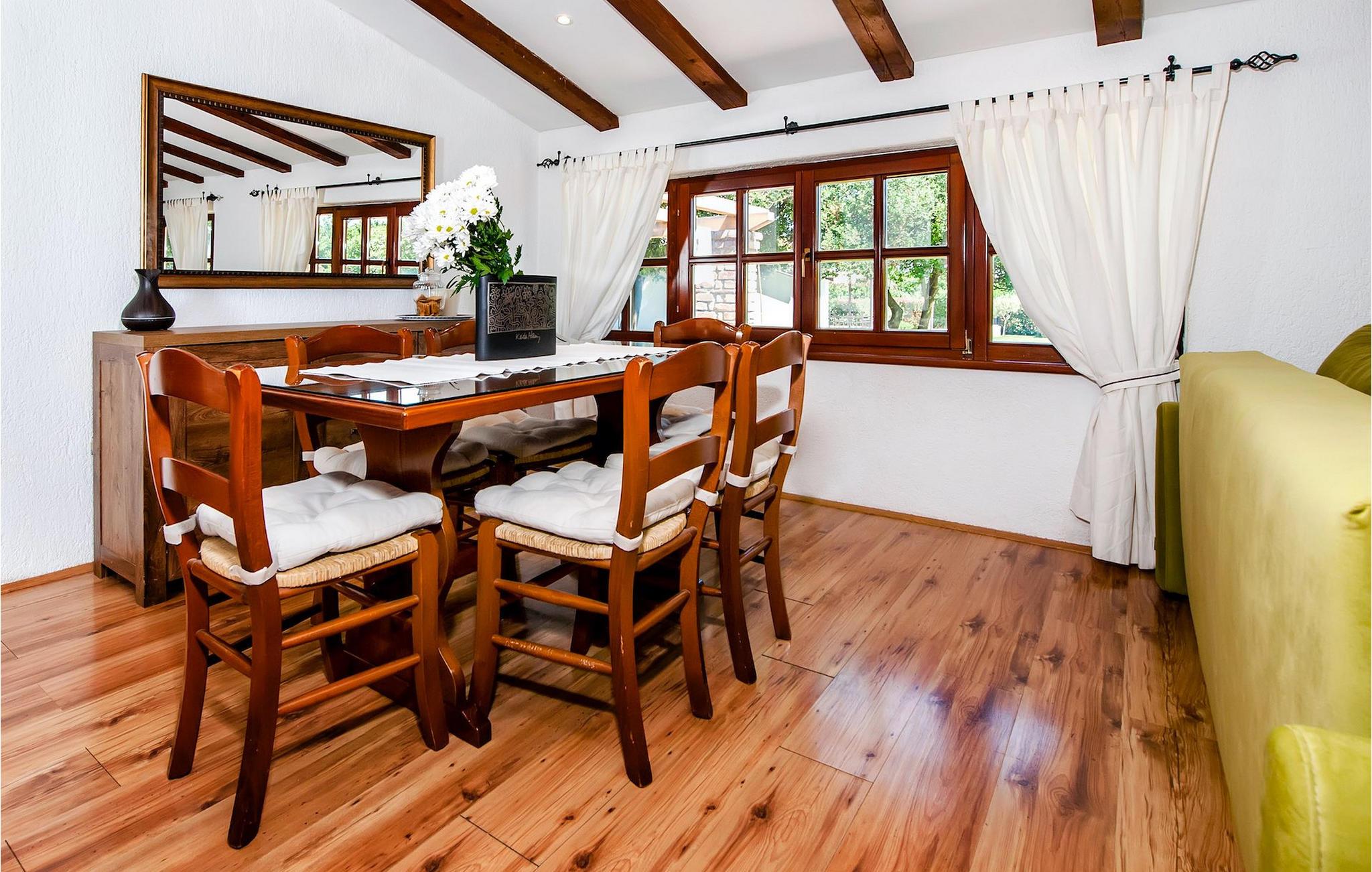 Die schöne moderne Villa Antica befindet sich in Meeresnähe in der Peripherie des alten Rovinj. Eine ihrer schönsten Eigenschaften ist der große Pool im Innenhof. Die Villa selbst bietet Platz für bis zu sieben Personen. Sie besteht aus zwei Häusern, dem Haupthaus und einem Studio-Apartment. Das Haupthaus verfügt über einen offenen Wohn- und Essbereich, sowie drei Schlafzimmer. Ein Schlafzimmer ist mit einem Doppelbett ausgestattet, während in den anderen beiden Zimmern jeweils ein Einzelbett steht. Außerdem gibt es ein großes Badezimmer mit Badewanne, in der Sie sich entspannen können. Draußen können Sie mit einem kalten Getränk auf der Terrasse oder auf den Sonnenliegen am Pool entspannen oder im 72 m² großen Pool schwimmen. Es gibt auch einen Grill, auf dem Sie großartige Mahlzeiten zubereiten können. Das Studio-Apartment bietet im Vergleich zum Haupthaus etwas mehr Privatsphäre. Es besteht aus einem Wohnzimmer mit einem Doppelbett für zwei Personen und verfügt über ein Badezimmer mit Dusche. Buchen Sie die Villa Antica für Ihren erholsamen Urlaub!Die Villa Antica befindet sich in einem Vorort der antiken Stadt Rovinj, einer der schönsten und romantischsten Städte Kroatiens. Sie ist nur wenige Gehminuten vom Strand Polari und wenige Autominuten vom Stadtzentrum entfernt. Im Zentrum können Sie das alte Netz von Steinstraßen erkunden, die auf die Spitze des Hügels führen, wo sich die schöne alte Kirche St. Euphemia befindet. Von der Spitze des Kirchturms aus können Sie die Aussicht genießen, die sich über die ganze Stadt erstreckt und niemanden gleichgültig lässt. Vom Zentrum aus können Sie in Richtung des Parkwaldes Zlatni Rt gehen, einer der schönsten Landschaften Westisstriens. Lassen Sie sich auf keinen Fall die Fahrt zum Lim-Kanal entgehen, einer der attraktivsten natürlichen Ressourcen in West-Istrien, der sich nur 15 Kilometer außerhalb von Rovinj befindet.