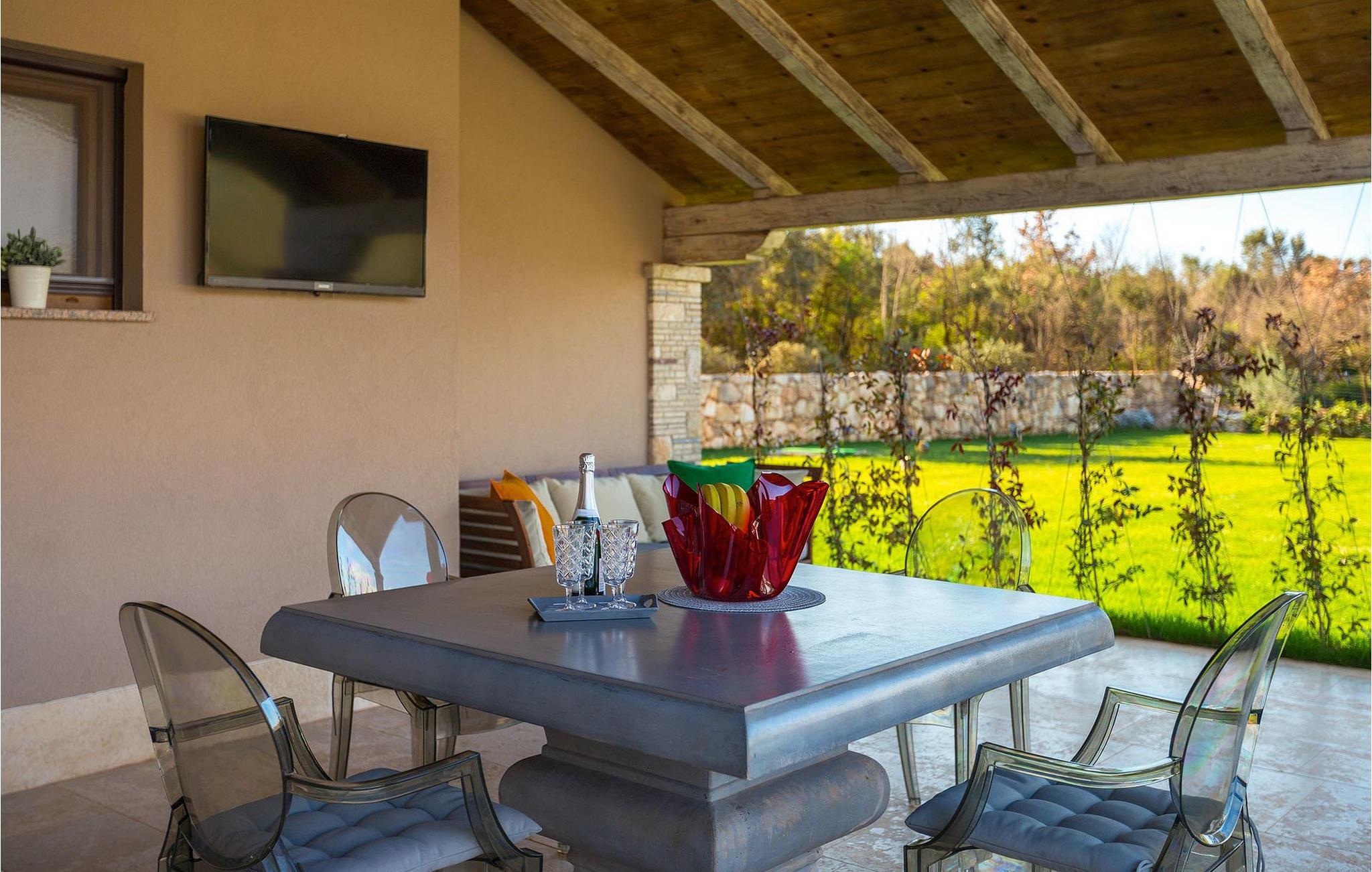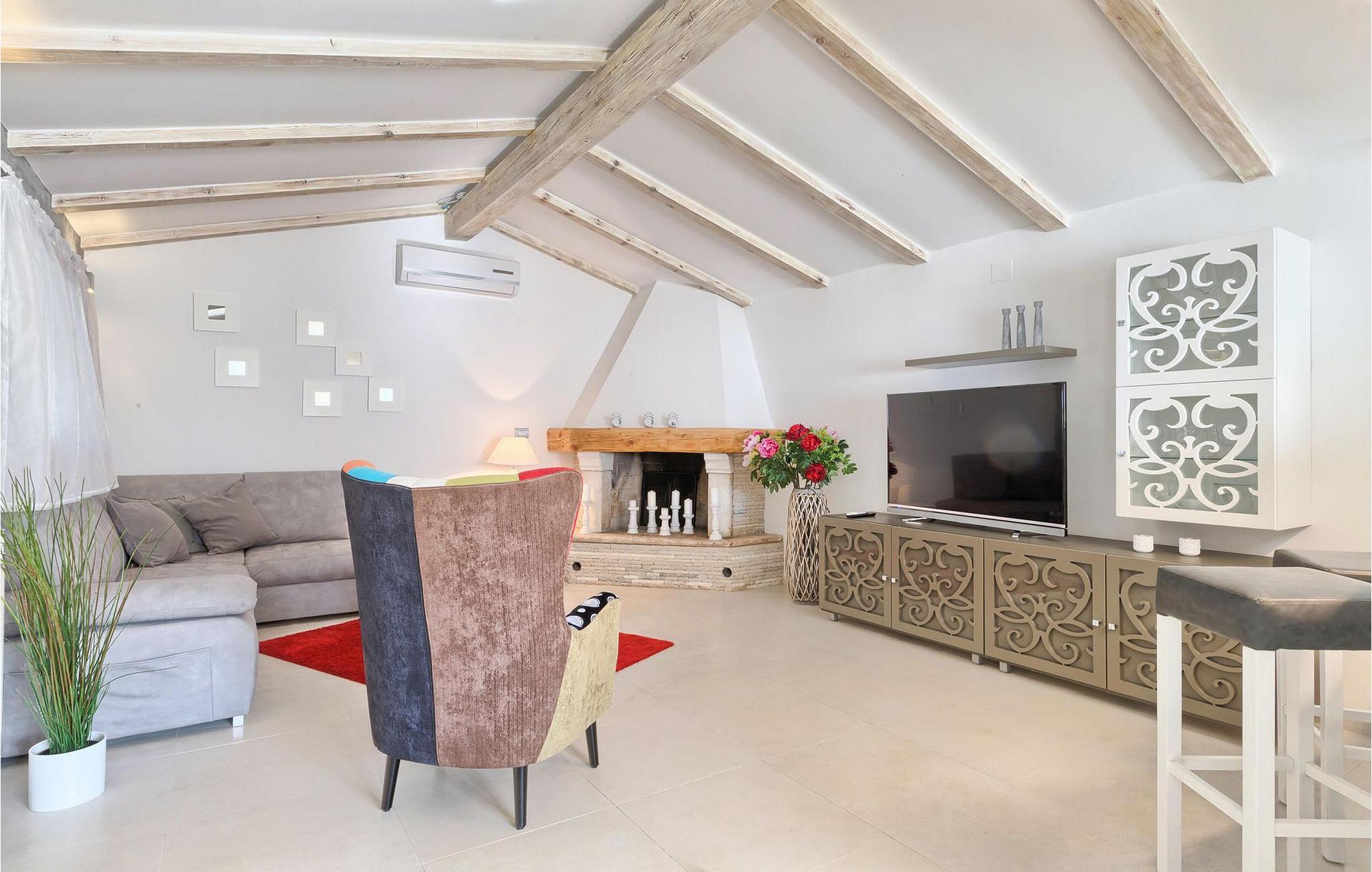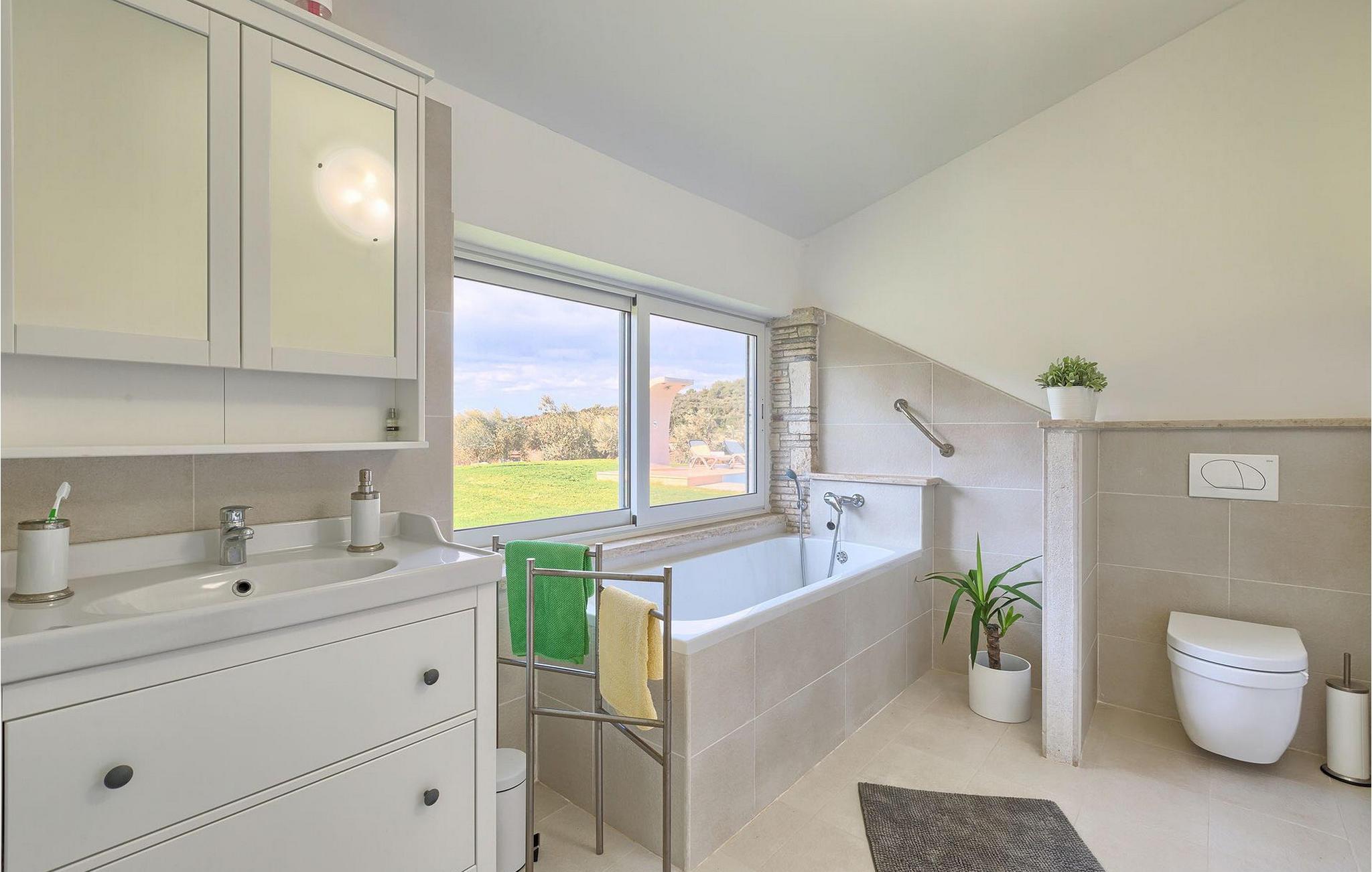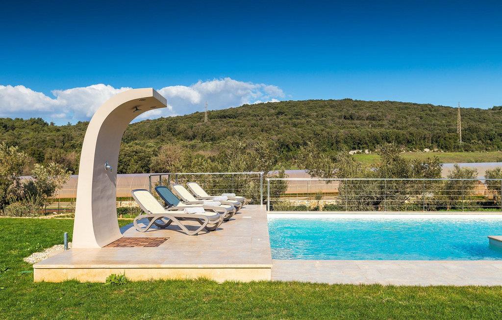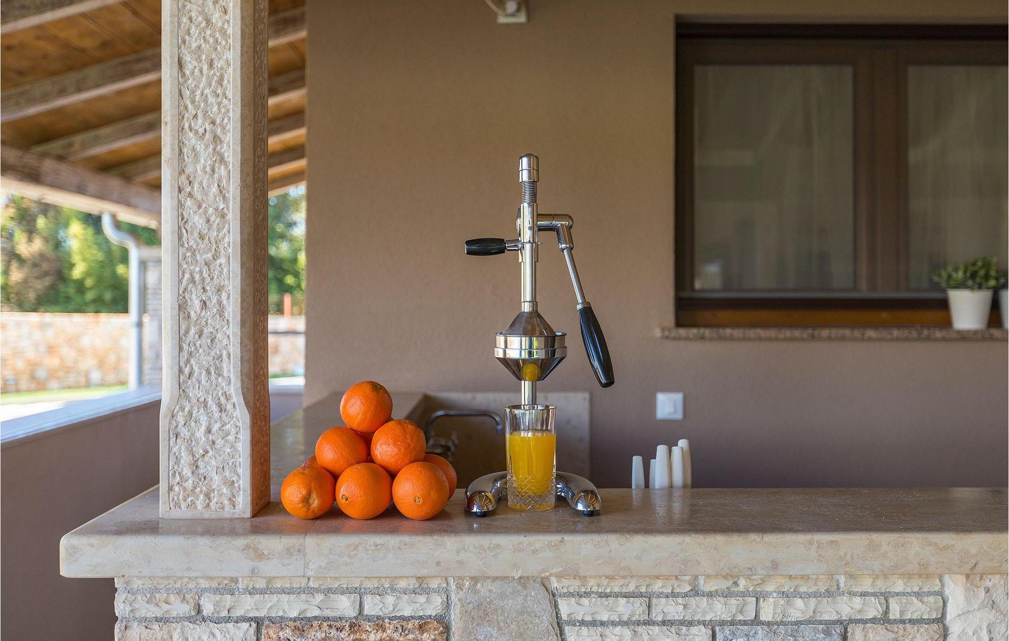 Diese atemberaubende Villa befindet sich in Rovinj, nur ca. einen Kilometer vom Meer entfernt. In den traditionellen Steinwänden der Villa verbirgt sich ein komplett renoviertes luxuriöses Interieur mit modernen Möbeln. Farbige Details tragen zum luxuriösen Gefühl bei, was ersichtlich wird, sobald Sie die Villa betreten. Es ist ein einstöckiges Haus und kann maximal 4+1 Gäste beherbergen, was die Villa zur perfekten Wahl für einen erholsamen Familienurlaub macht. In dieser Villa finden Sie ein luxuriöses Wohnzimmer mit einer voll ausgestatteten Küche und einem Essbereich vor. Von hier aus haben Sie direkten Zugang zur Küche und zum Essbereich im Freien. Die zwei Schlafzimmer in hellen grauen Farben und farbigen Details, tragen zum entspannenden Gefühl bei. Es gibt auch zwei Badezimmer, von denen eines ein en-suite Badezimmer ist. Von der Wanne aus können Sie einen herrlichen Blick auf die Umgebung genießen. Diese Villa verfügt über einen großen Garten mit privatem Pool inmitten atemberaubender Natur und ist die ideale Wahl für diejenigen, die dem Stress des Alltagslebens entfliehen möchten. Für zusätzlichen Komfort gibt es eine schöne Bank neben dem Grill im Garten sowie 2 Lazy Bags und einen Kinderspielplatz. Sie finden Ausrüstung für Badminton und Wasserpolo in der Villa vor. Wenn Sie jedoch einen Ausflug machen und die Umgebung erkunden möchten, können Sie in Absprache mit den Eigentümern einen Fahrradverleih sowie Jet-Skis, Yachten und Sportwagen mieten.Die atemberaubende Villa Dioniz ist nur 1 km vom Meer in Rovinj entfernt. Die Villa liegt in einer ruhigen Umgebung, inmitten von wunderschöner grüner Natur und Ackerland. Der ideale Ort, dem stressigen Großstadtleben zu entfliehen! Einst ein kleines Fischerdorf, heute ein beliebtes Urlaubsziel mit reichem kulturellen Erbe! In den charmanten Gassen dieser mittelalterlichen Stadt verbergen sich zahlreiche Galerien, Restaurants, Bars und Cafés. Die Stadt liegt nur 40 km von Pula entfernt und ist für sein günstiges und wohltuendes mildes Klima bekannt. Die gesamte Küste mit ihren 22 Inseln steht unter Naturschutz.