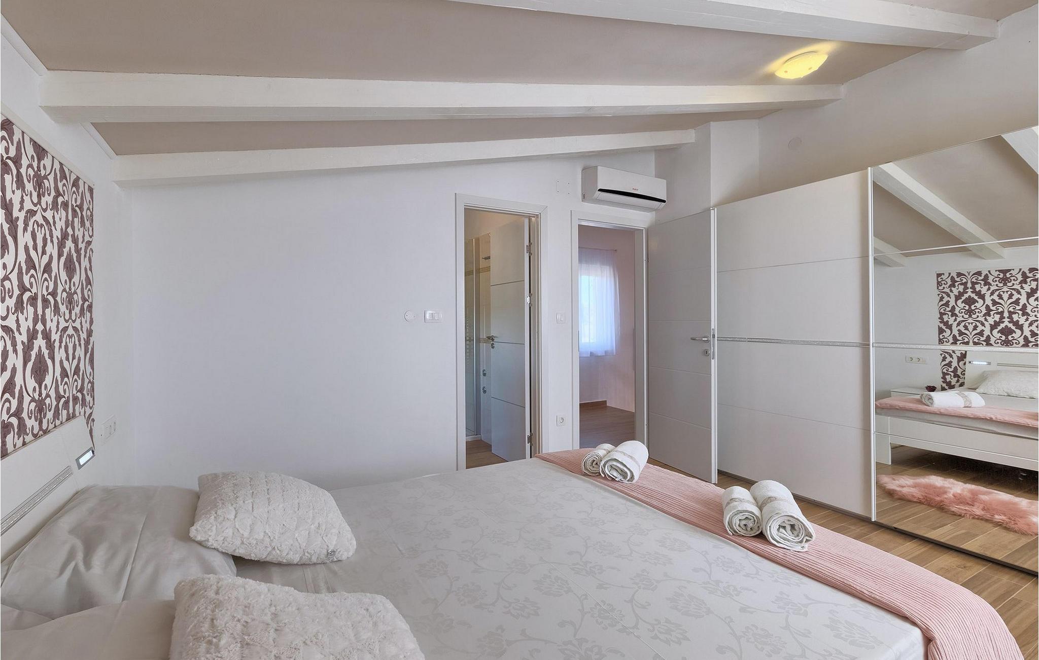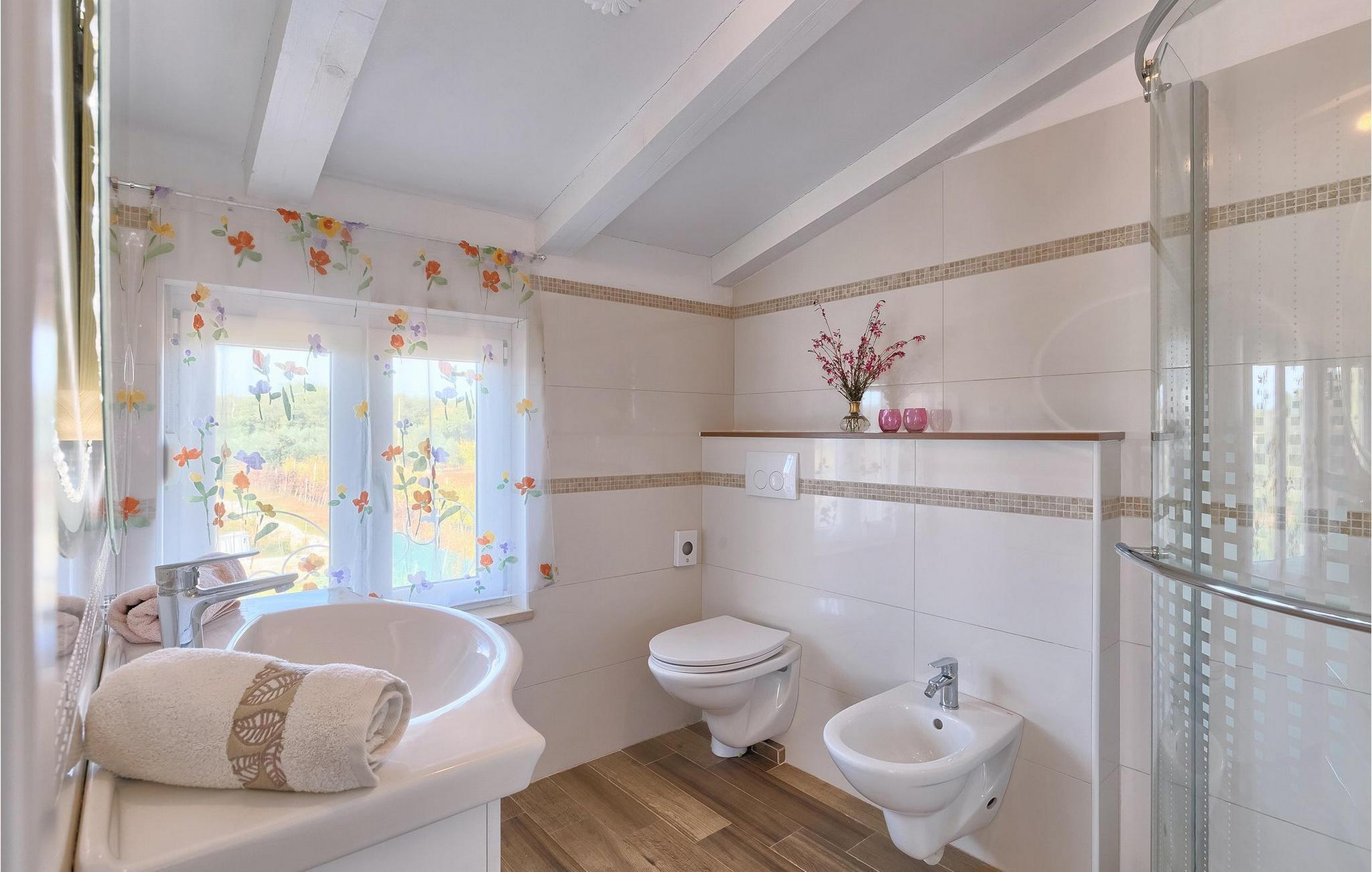 Die charmante Villa Nella ist die ideale Wahl für Gäste, die von einem entspannenden Urlaub nah zu den schönen istrischen Stränden träumen. Falls Sie bevorzugen, zu Hause zu bleiben, steht Ihnen der private Pool zur Verfügung, der in heißen Sommertagen für Abkühlung sorgen wird - Spaß für die ganze Familie ist garantiert! Genießen Sie den Außengrill und zahlreiche Sitzecken und verbringen Sie die Zeit mit Ihren Liebsten, während die Kinder im sorgfältig gepflegten Garten herumlaufen. Der Garten ist mit wunderschönen mediterranen Pflanzen geschmückt und bietet viel Platz zum Entspannen. Im Inneren bietet die Villa ein offenes Erdgeschoß an, in dem sich die komplett ausgestattete Küche mit Essbereich und das gemütliche Wohnzimmer befinden. Sobald Sie den Raum betreten, bemerken Sie die stilvolle Einrichtung mit schlichten Farben die eine warme Atmosphäre bieten. Zwei komfortable Schlafzimmer, jeweils mit einem privaten schönem Badezimmer, befinden sich im ersten Stock. Die Villa ist klimatisiert, hat WiFi, SAT TV und alles, was man sich für einen unvergesslichen Urlaub wünscht.Die Villa befindet sich nur eine kurze Fahrt von der schönsten Stadt Istriens –Rovinj. Rovinj ist die „fotogenste“ Stadt am Mittelmeer. Einst eine Fischerstadt, heute ein Touristenzentrum. Der gesamte Küstenstrich, welcher insgesamt zweiundzwanzig Inseln umfasst, ist ein geschütztes Naturgebiet. Spüren Sie den Zauber der Stadt in den engen mittelalterlichen Gassen und der warmen mediterranen Umgebung und genießen Sie den atemberaubenden Blick vom Glockenturm. Rovinj und seine Umgebung bieten zahlreiche Freizeitmöglichkeiten an: Radfahren, Reiten, Joggen. Sie können entweder am ersten Strand genießen, schwimmen, schnorcheln oder verschiedene Wassersportarten probieren. (z.B. Wasserski, Windsurfen). Zu guter Letzt können Sie hier köstliche mediterrane und istrische Spezialitäten genießen.
