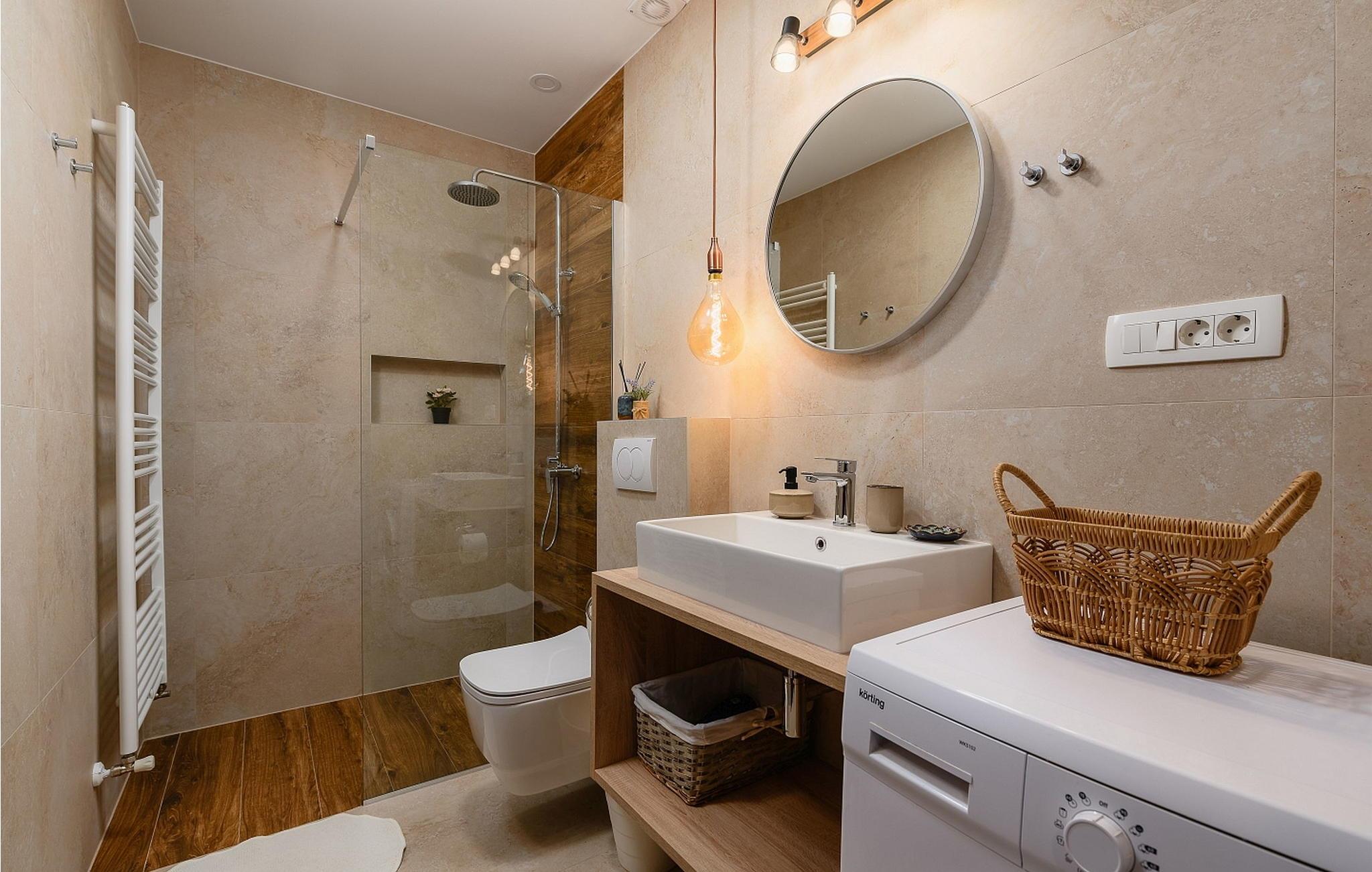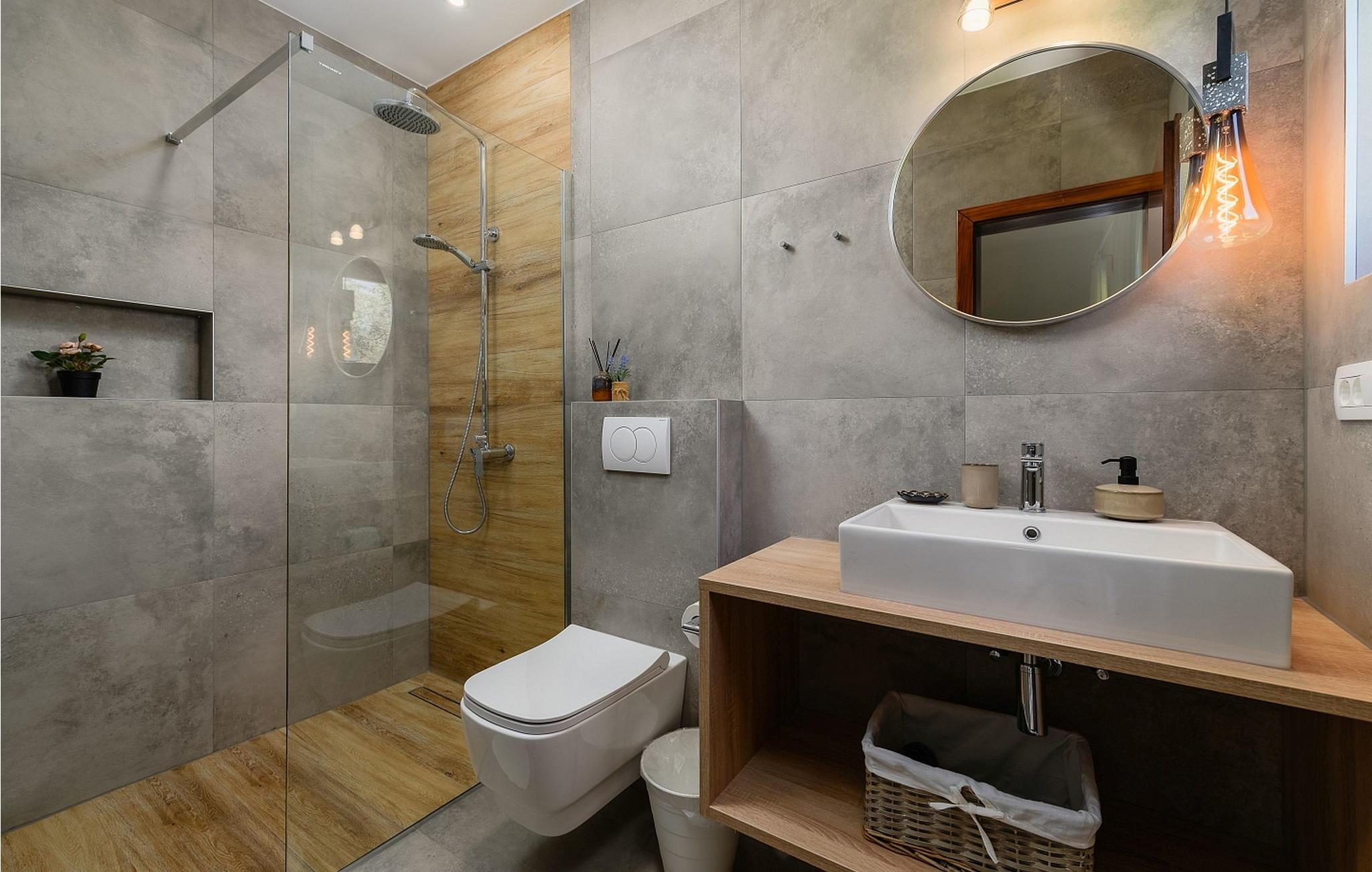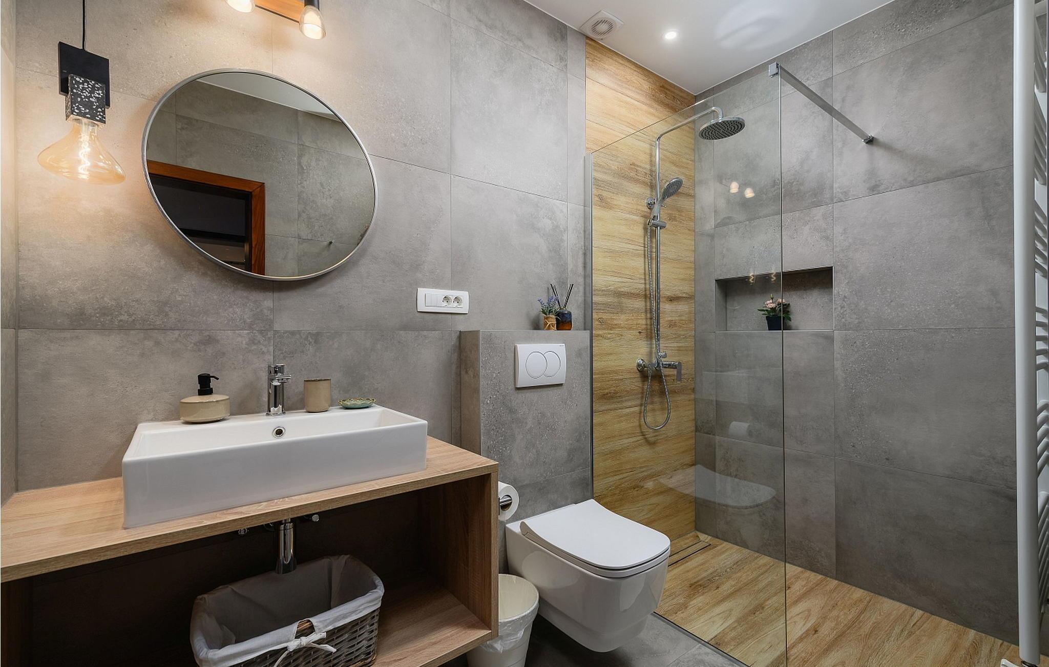 - WC mit warmem und kaltem Wasser, Dusche und Badewanne