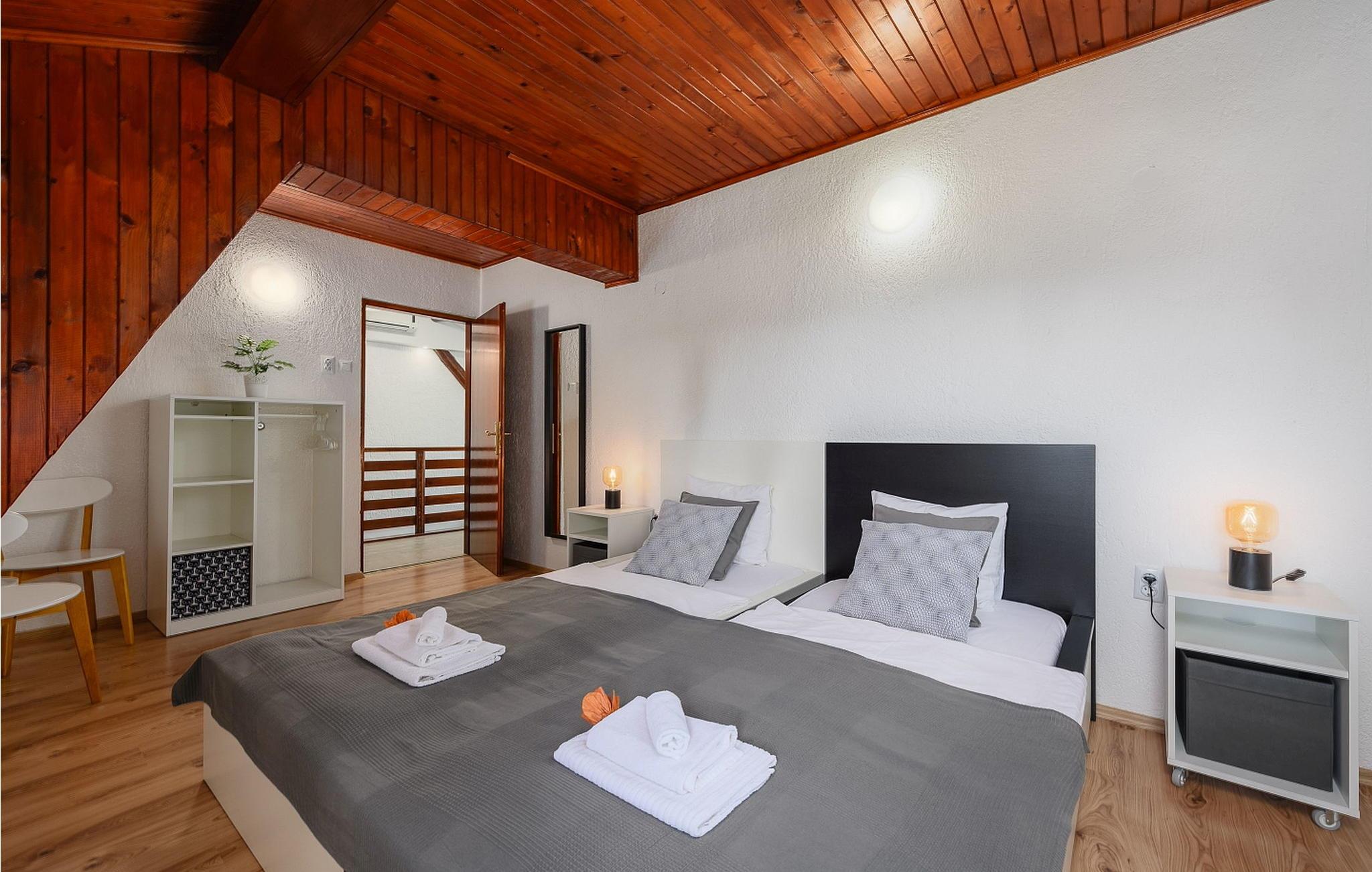 Ferienhaus für 10 Personen mit einer gesamten Wohnfläche von 178 qm auf zwei Etagen. Auf dem ersten Stock gibt es ein Wohnzimmer mit Ausgang auf zwei Balkone, Esstisch und Kinderspielecke, voll ausgestattete Küche, Bad/WC, zwei Doppelzimmer von welchen eins mit zwei Einzelbetten, Dusche/WC und eins mit Doppelbett und Bad/WC. Im Dachgeschoss des Hauses befinden sich noch zwei Doppelzimmer, eins davon mit zwei Einzelbetten und noch eine Dusche/WC. Bitte beachten Sie, dass diese Unterkunft auf Anfrage möglicherweise Jugendgruppen akzeptiert. Bitte kontaktieren Sie uns, um dies zu überprüfen. Eine Jugendgruppe in dieser Unterkunft besteht aus Personen im Alter von 26 Jahren oder jünger. Wenn Sie eine Jugendgruppe sind [oder einen Junggesellenabschied planen], werden Sie möglicherweise bei der Ankunft um die Zahlung einer zusätzlichen Kaution gebeten. Etwaige Beträge, die zur Behebung von Schäden an der Immobilie erforderlich sind, werden von der Kaution abgezogen.