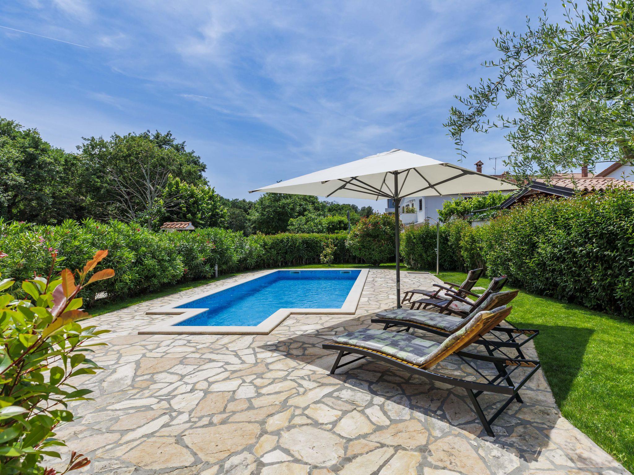 Terraced house "Viškovic", 2 storeys. 2 km from the centre of Rovinj, in a quiet, sunny position, 450 m from the sea, 450 m from the beach. Private: property 200 m2 (fenced), garden, swimming pool angular (7 x 3 m, 24 m2, depth 140 cm, seasonal availability: 01.May. - 01.Oct.). Outdoor shower. In the house: internet access. Parking at the house on the premises. Shop, restaurant 300 m, bus stop 1.4 km, pebble beach, rocky beach 450 m. Tennis 1 km, walking paths from the house, cycle lane 500 m. The owner does not accept any youth groups.