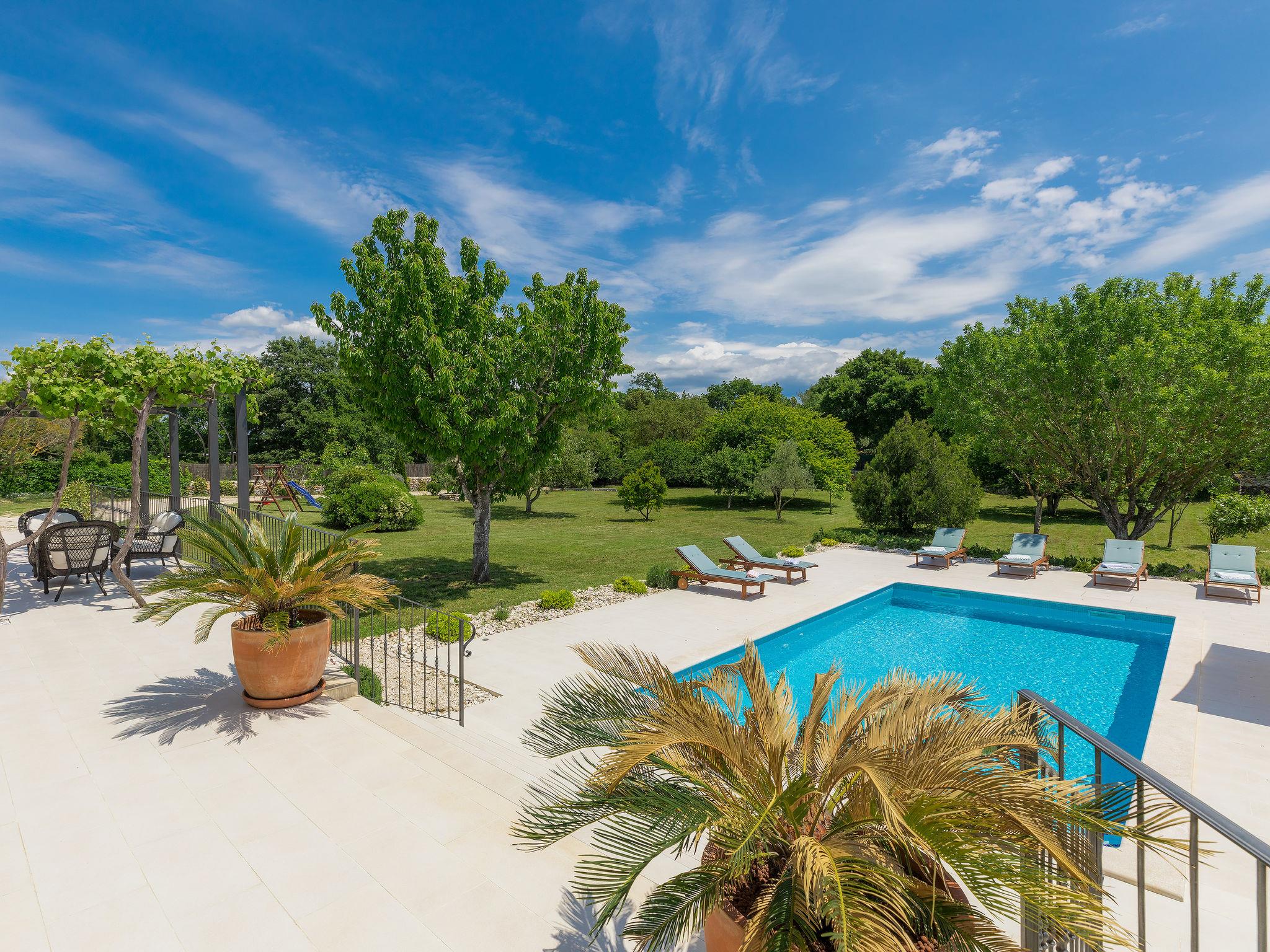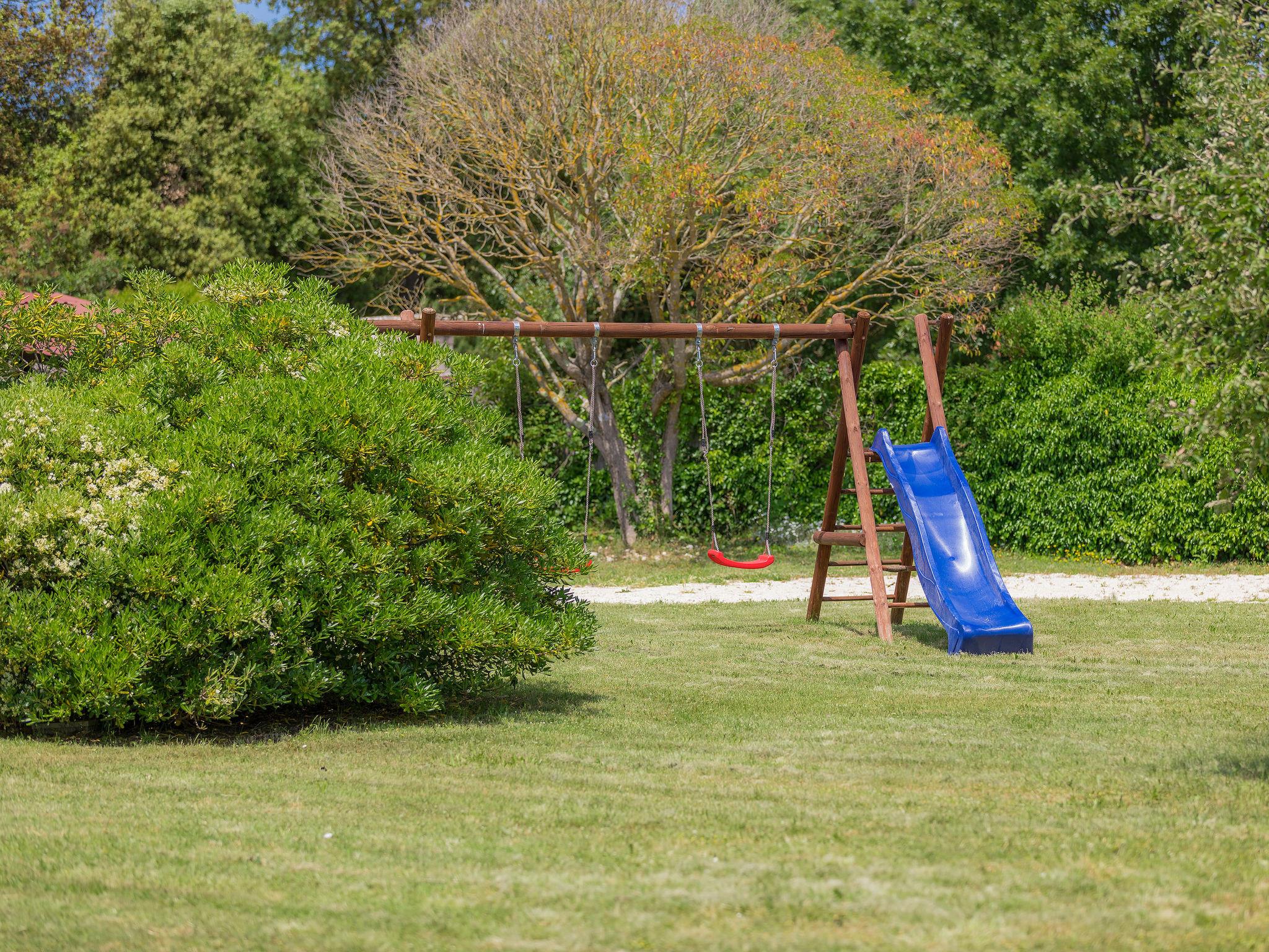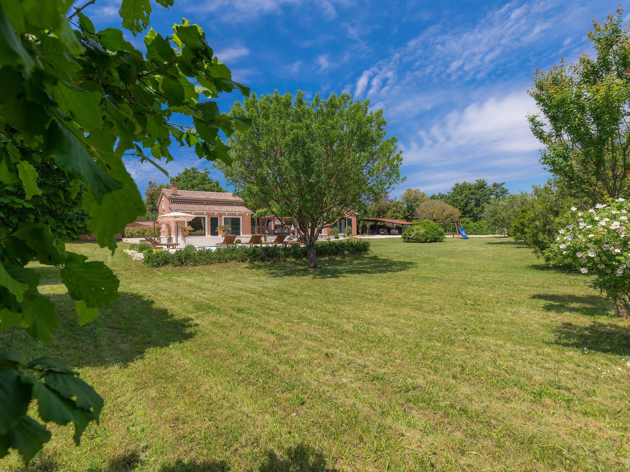 Child friendly, beautiful single-family house "Villa Bernard", 2 storeys. 3 km from the centre of Rovinj, in a quiet, sunny position, 500 m from the sea, 500 m from the beach. Private: property 3'000 m2 (fenced), garden with lawn and trees, swimming pool angular (8 x 4 m, depth 150 cm, seasonal availability: 01.May. - 15.Oct.) with internal staircase and salt-electrolysis pool-cleaning system. Outdoor shower, pergola (18 m2), garden furniture, barbecue, children's playground (slide, swing). In the house: internet access, trampoline, burglar alarm system, washing machine, tumble dryer. Motor access to the house (550 m via unmade road). Parking at the house on the premises. Shop, supermarket 500 m, restaurant 150 m, bus stop 2.6 km, pebble beach, rocky beach, outdoor swimming pool, public bathing area 500 m. Surf school, tennis 500 m, walking paths from the house 50 m, cycle lane 100 m. Please note: suitable for families. The owner does not accept any youth groups. Organizing a party is not allowed. The unit consists of big main house and small house, rented as one unit.