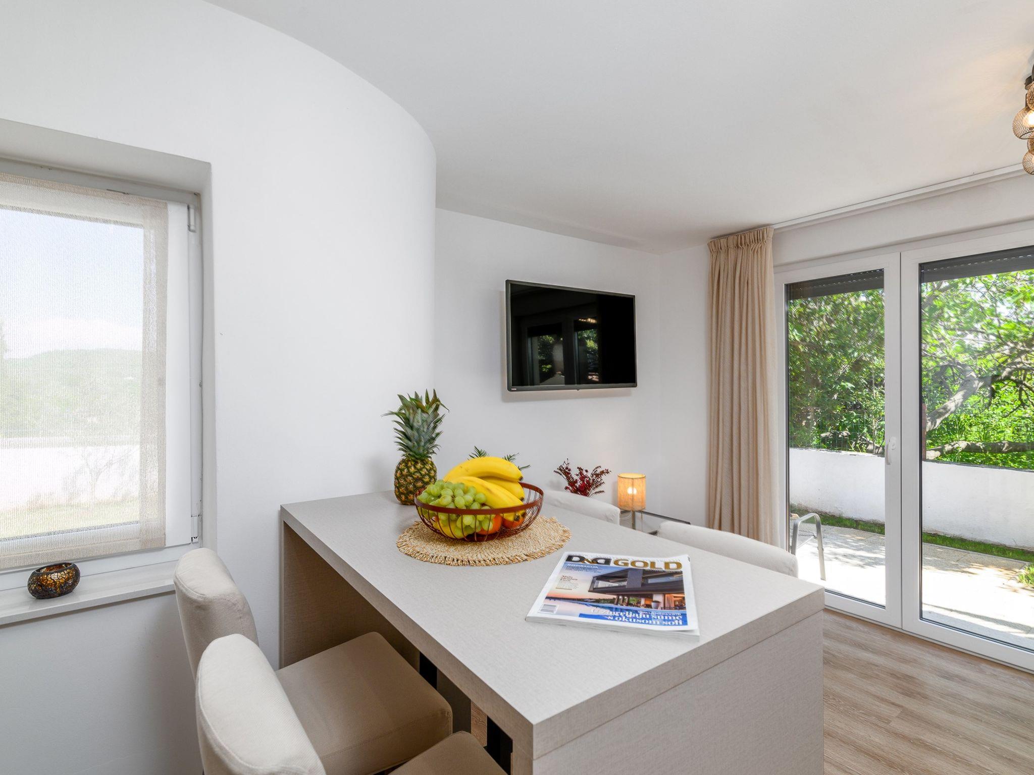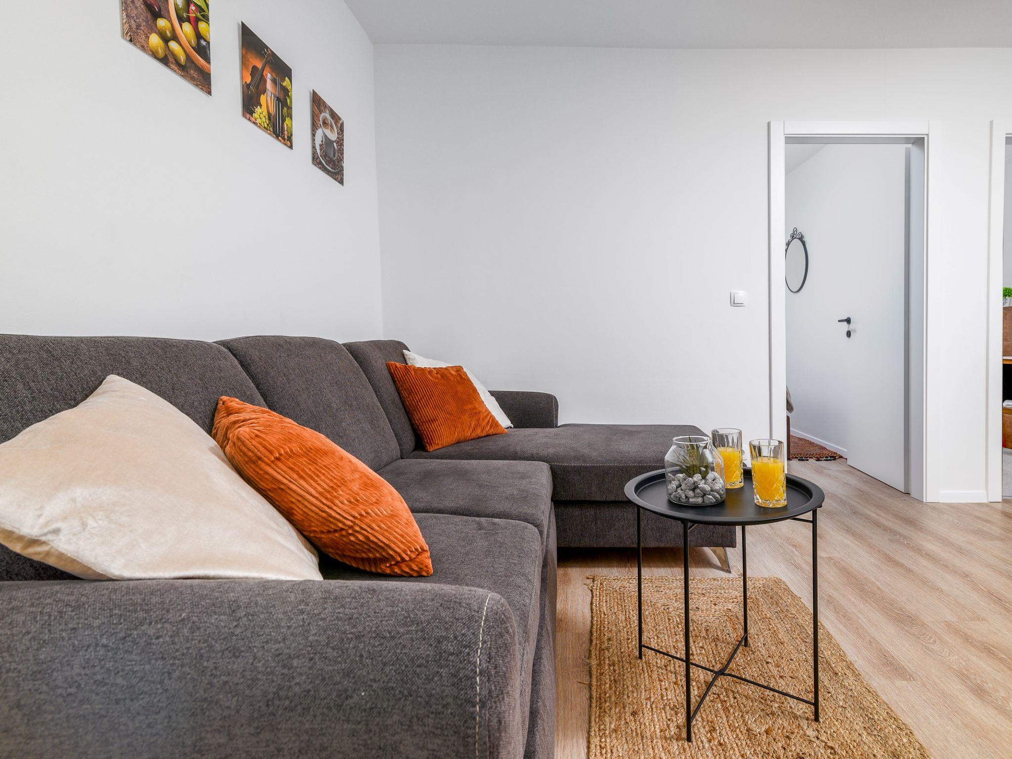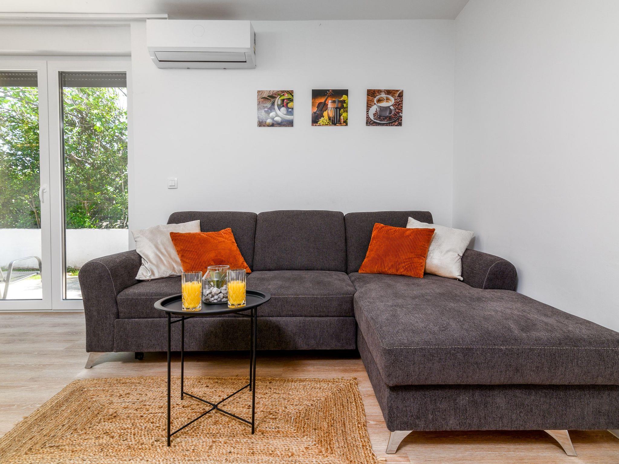 "Graz", 2-room apartment 35 m2, on the ground floor. Simple and cosy furnishings: living/dining room 22 m2 with 1 double sofabed (130 cm, length 200 cm), satellite TV and air conditioning. Exit to the terrace. 1 room with 1 french bed (160 cm, length 200 cm). Small, open kitchen (2 ceramic glass hob hotplates, kettle, microwave). Shower/WC. Forced-air heating. Terrace furniture, barbecue. Facilities: safe, mosquito net. Internet (WiFi, free). Parking (1 car). Please note: fridge without freezer. 1 small pet/ dog allowed.