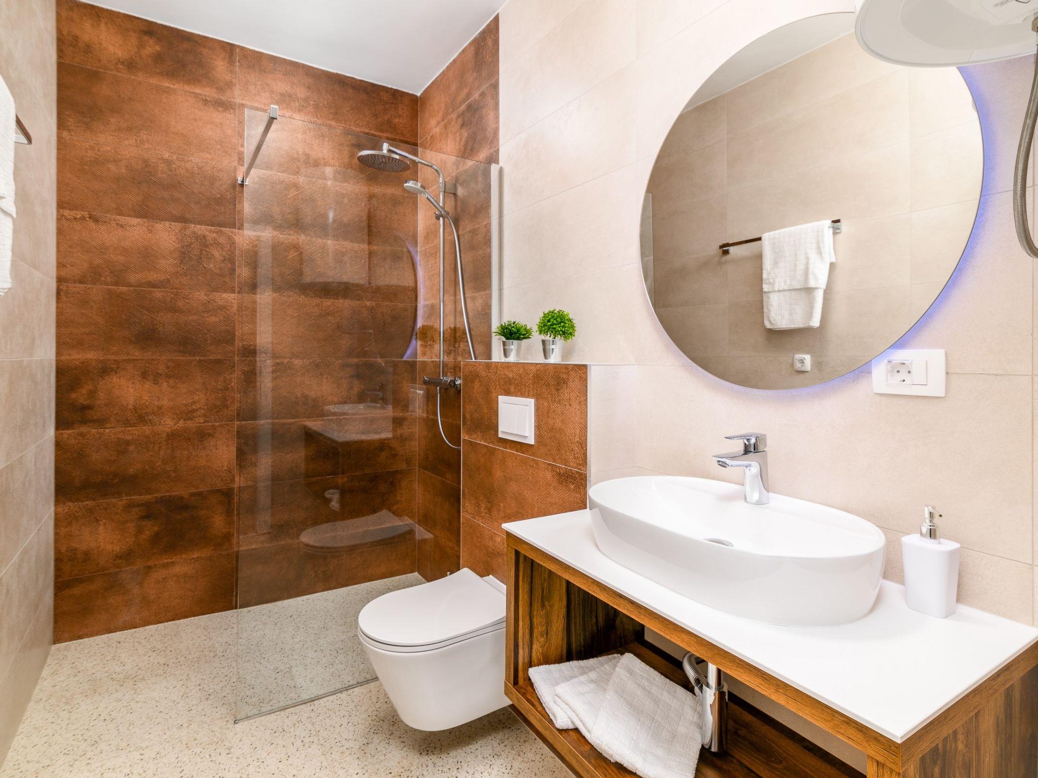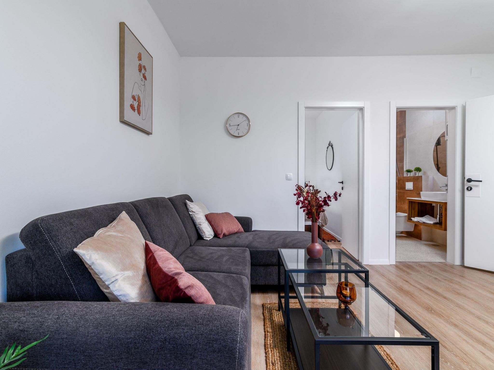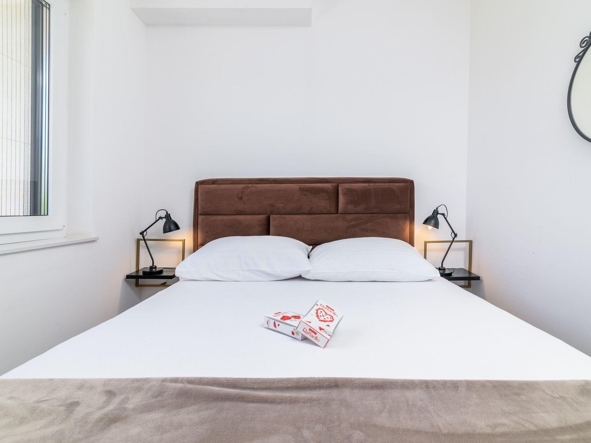 "Prinz", 2-room apartment 30 m2, on the upper floor. Simple and cosy furnishings: living/dining room 18 m2 with 1 double sofabed (160 cm, length 200 cm), satellite TV and air conditioning. Exit to the terrace. 1 room with 1 french bed (160 cm, length 200 cm). Small, open kitchen (2 ceramic glass hob hotplates, kettle, microwave). Shower/WC. Forced-air heating. Terrace furniture. Facilities: safe, mosquito net. Internet (WiFi, free). Parking (1 car). Please note: fridge without freezer. 1 small pet/ dog allowed. Terrace (45 m2) for shared use with apartment HR2500.500.6.