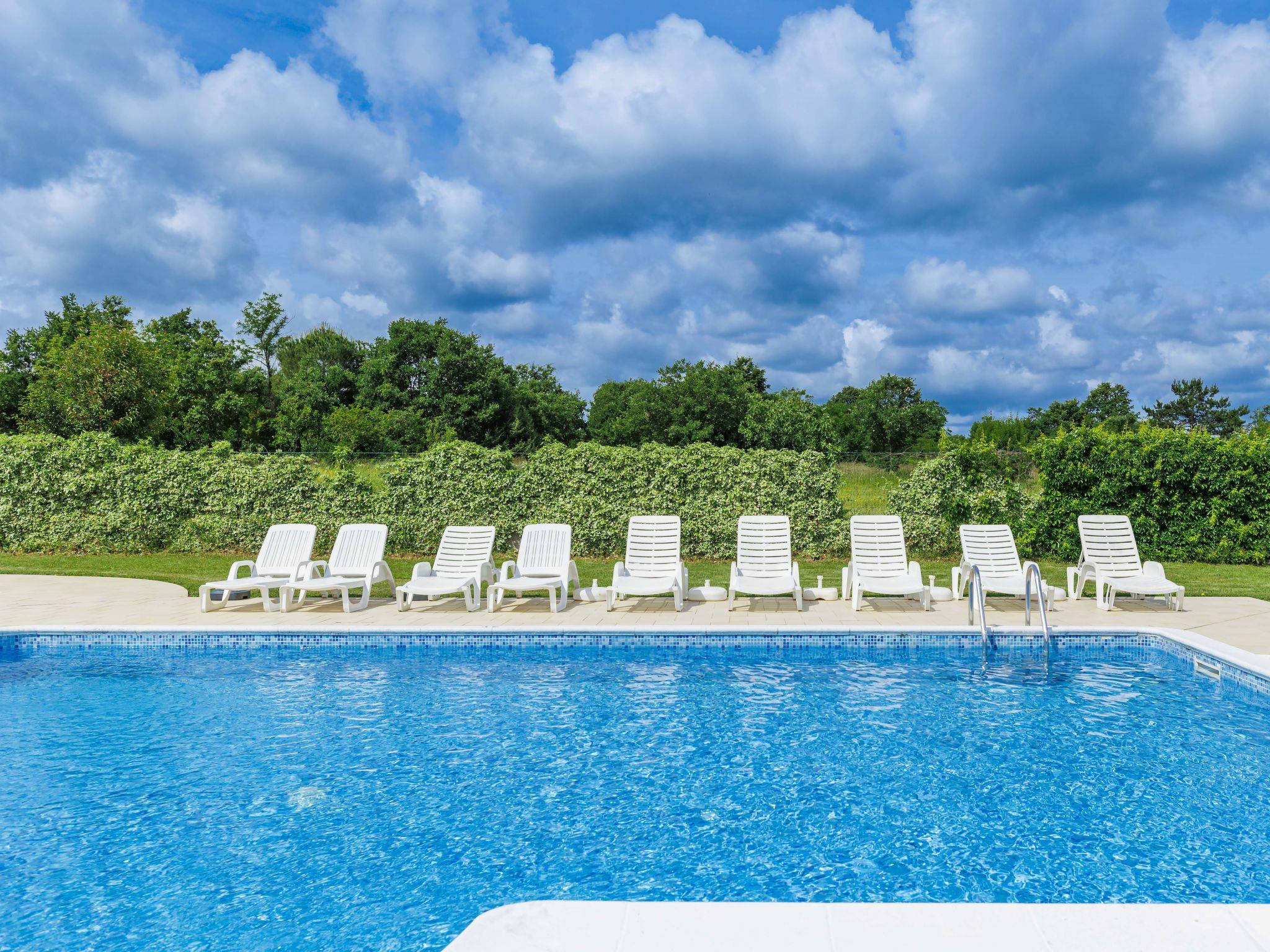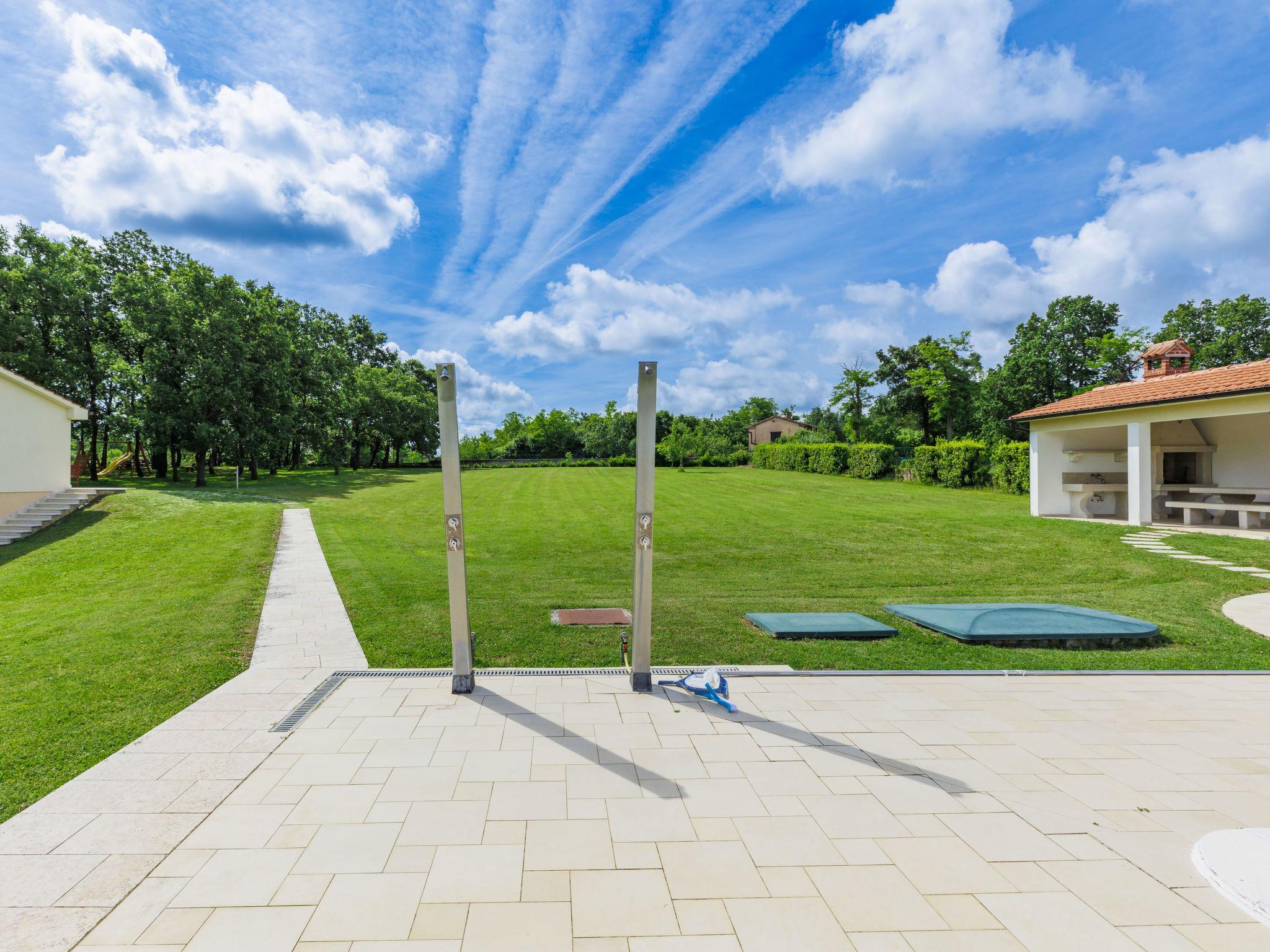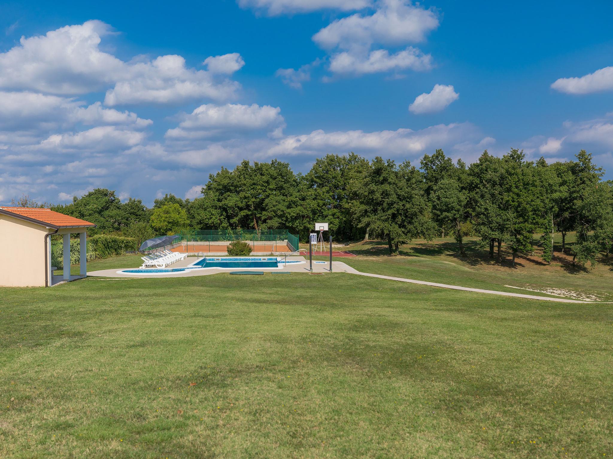 3-family house "Macini". 20 km from the centre of Rovinj, 6 km from the centre of Žminj, 33 km from the centre of Pula, in a secluded position, 20 km from the sea. For shared use: natural state property 15'000 m2 with trees, meadow, swimming pool (12 x 6 m, depth 130 cm, seasonal availability: 04.Apr. - 06.Nov.). Outdoor shower, tennis, basketball, volleyball, volleyball court, garden furniture (slide, swing). In the house: internet access. Parking on the premises. Shop 4 km, restaurant 6 km, bus stop 2.3 km, pebble beach 20 km. Marina 20 km.