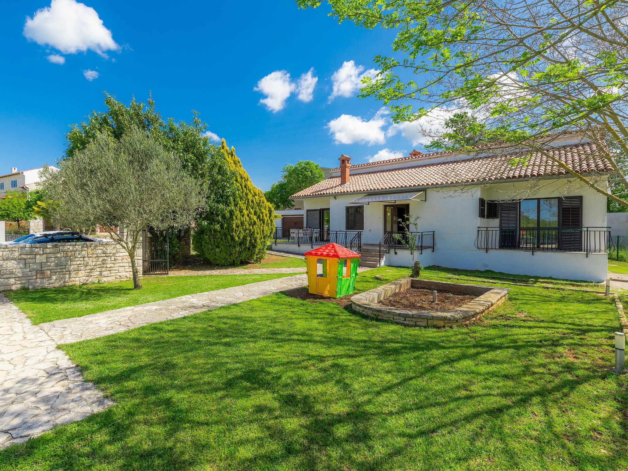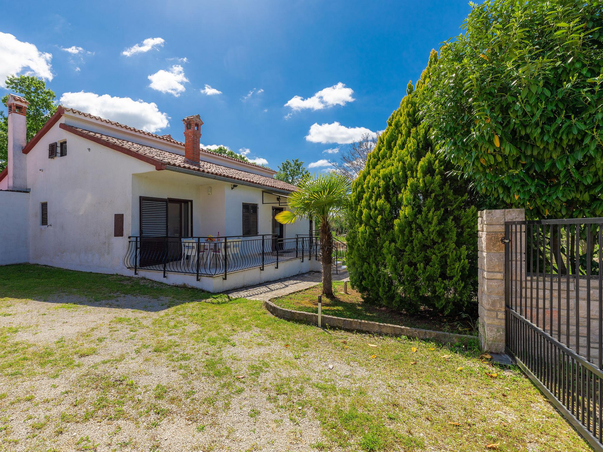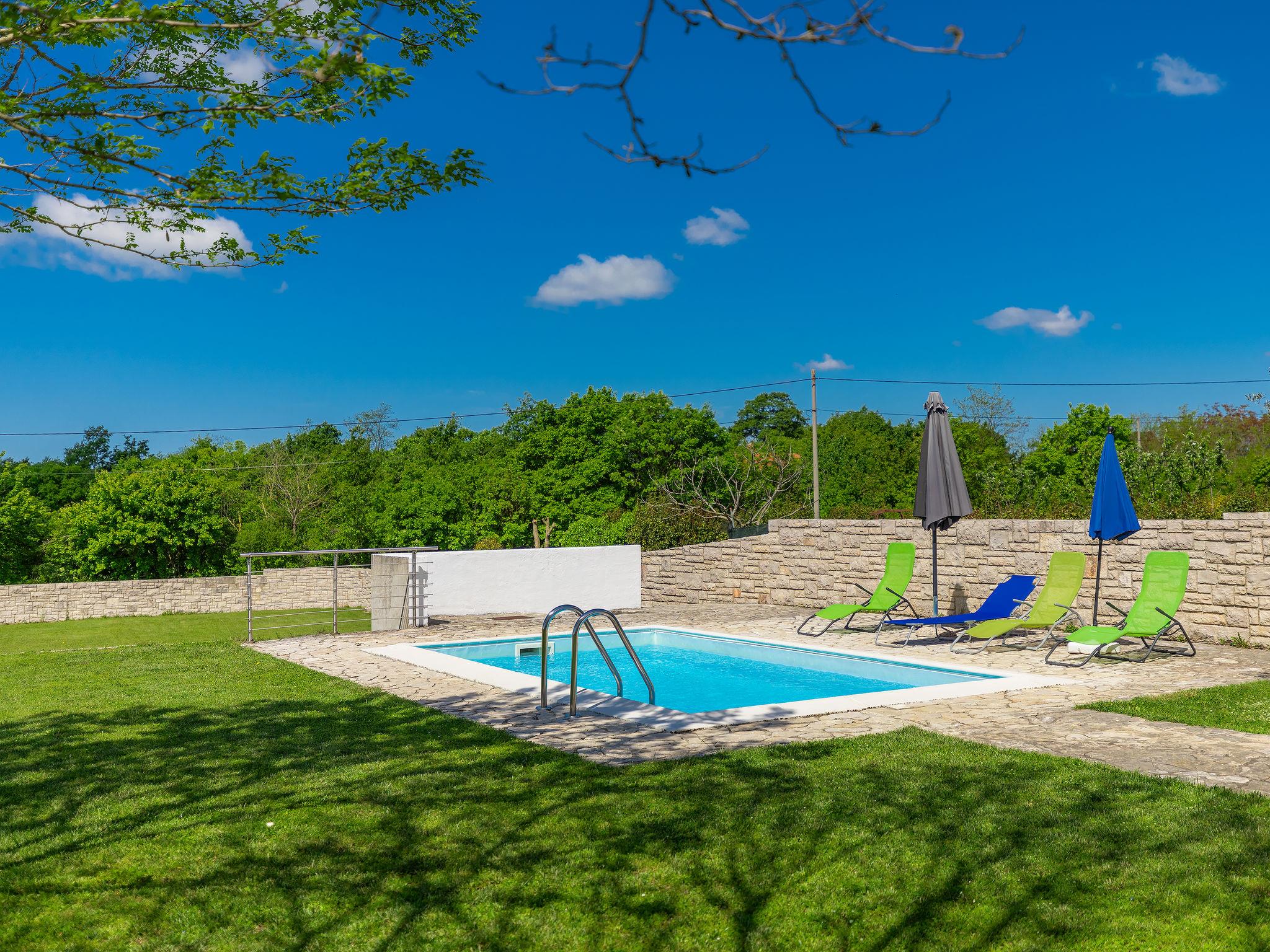 Single-family house "Dora". In the hamlet Macini 3 km from the centre of Kanfanar, 20 km from the centre of Rovinj, 20 km from the sea. Private: property 1'000 m2 (fenced) with lawn and trees, swimming pool angular (6 x 3 m, 21 m2, depth 135 cm, seasonal availability: 27.May. - 30.Sep.). Terrace. In the house: internet access, washing machine. Parking (for 3 cars) on the premises. Shop 3 km, restaurant 3 km, bus stop 2.1 km, rocky beach 20 km.
