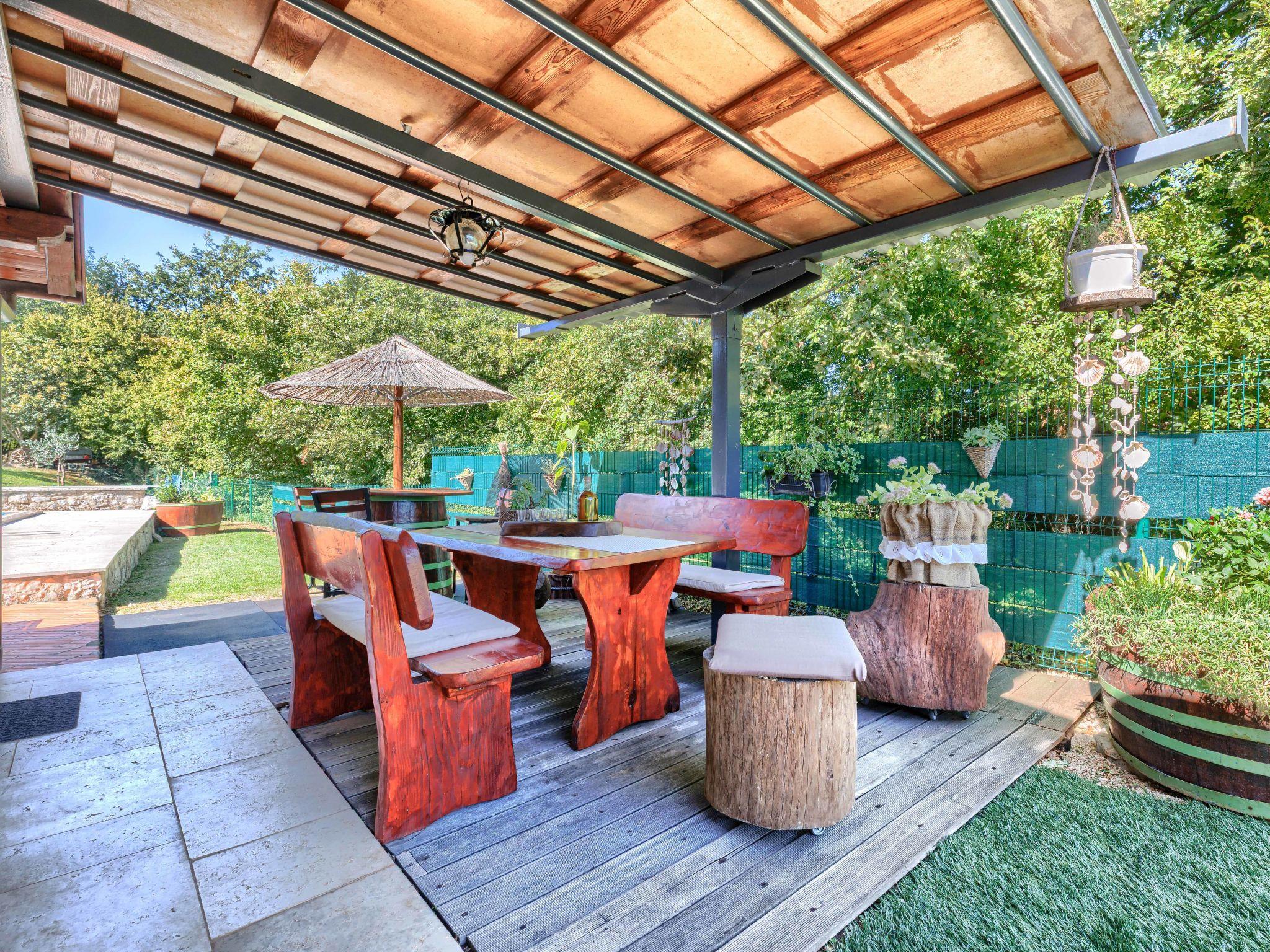 Apartment house "Viliam". 6 apartments in the residence. 100 m from the centre of Sošici, 3 km from the centre of Rovinjsko Selo, 11 km from the centre of Rovinj, 3 km from the sea. For shared use: property 3'500 m2 with lawn and trees, swimming pool angular (8 x 3 m, depth 130 cm, seasonal availability: 01.May. - 08.Oct.). Outdoor shower, terrace (30 m2), garden furniture, barbecue. In the house: internet access. Parking on the premises. Shop 1 km, supermarket 3 km, bus stop 700 m, rocky beach 11 km.