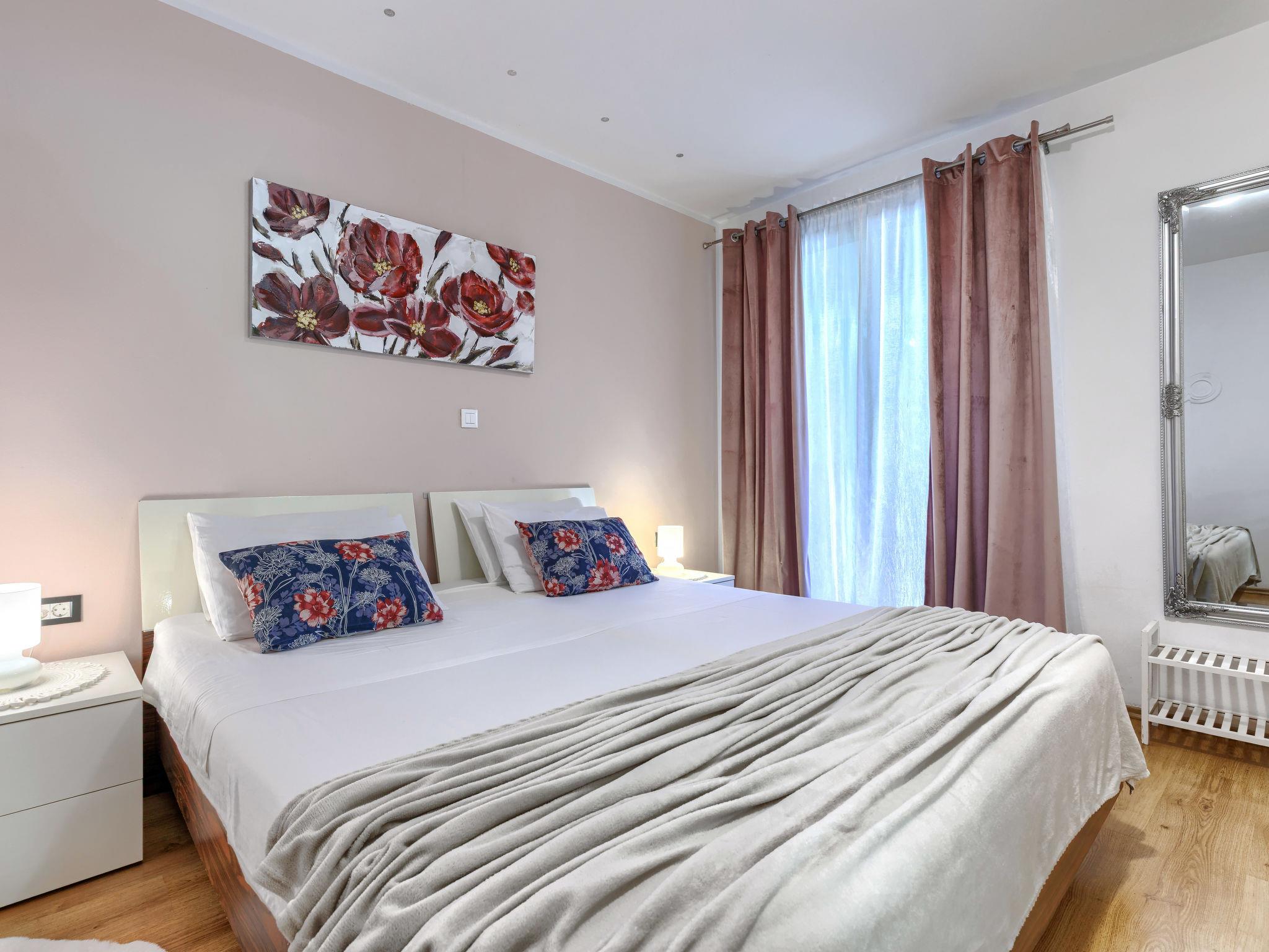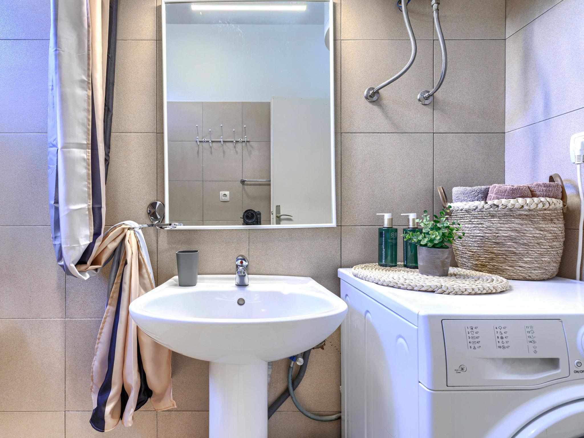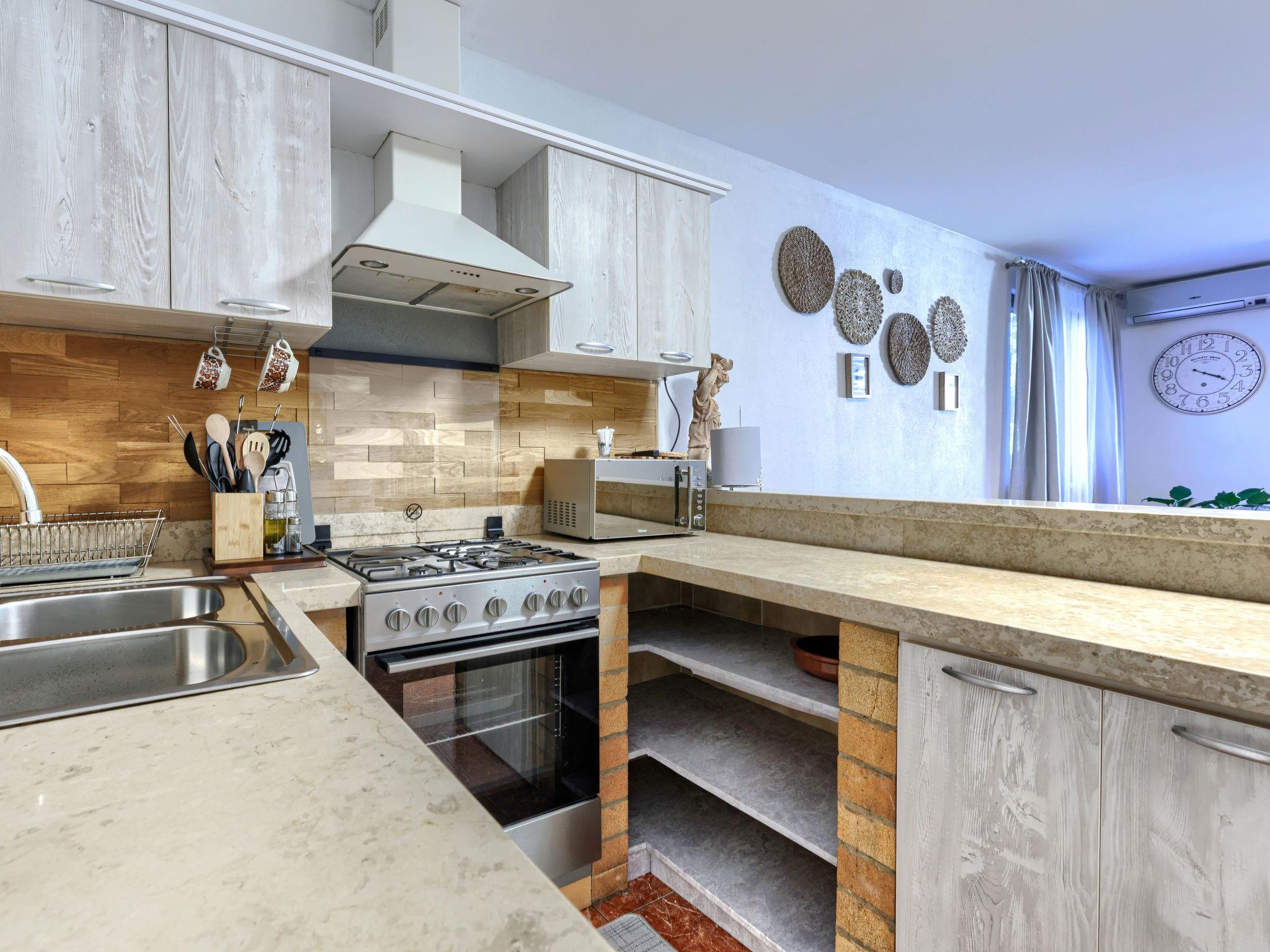 "Viliam", 2-room apartment 50 m2, on the lower ground floor. Living/sleeping room with 1 sofabed, dining table, satellite TV, electric heater and air conditioning. Exit to the terrace. 1 double bedroom. Exit to the terrace. Open kitchen (1 hot plate, oven, dishwasher, 3 gas rings, toaster, kettle, microwave, freezer, electric coffee machine). Shower/WC. Terrace 30 m2 partly roofed. Terrace furniture, barbecue (portable). Facilities: washing machine. Internet (WiFi, free). Please note: non-smokers only. Maximum 1 pet/ dog allowed.