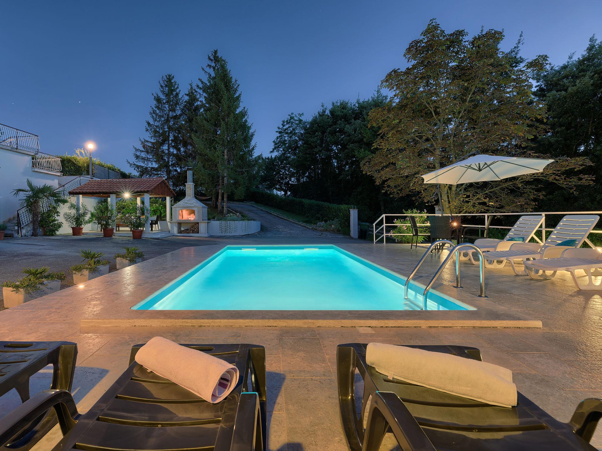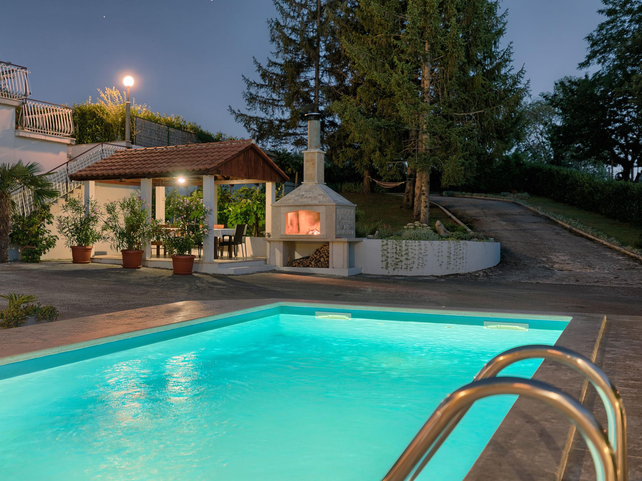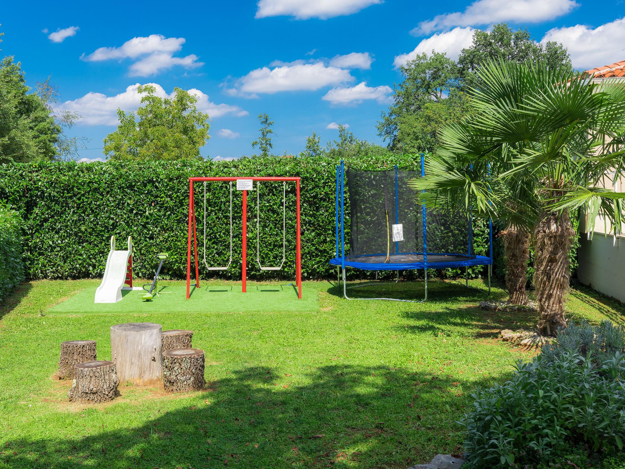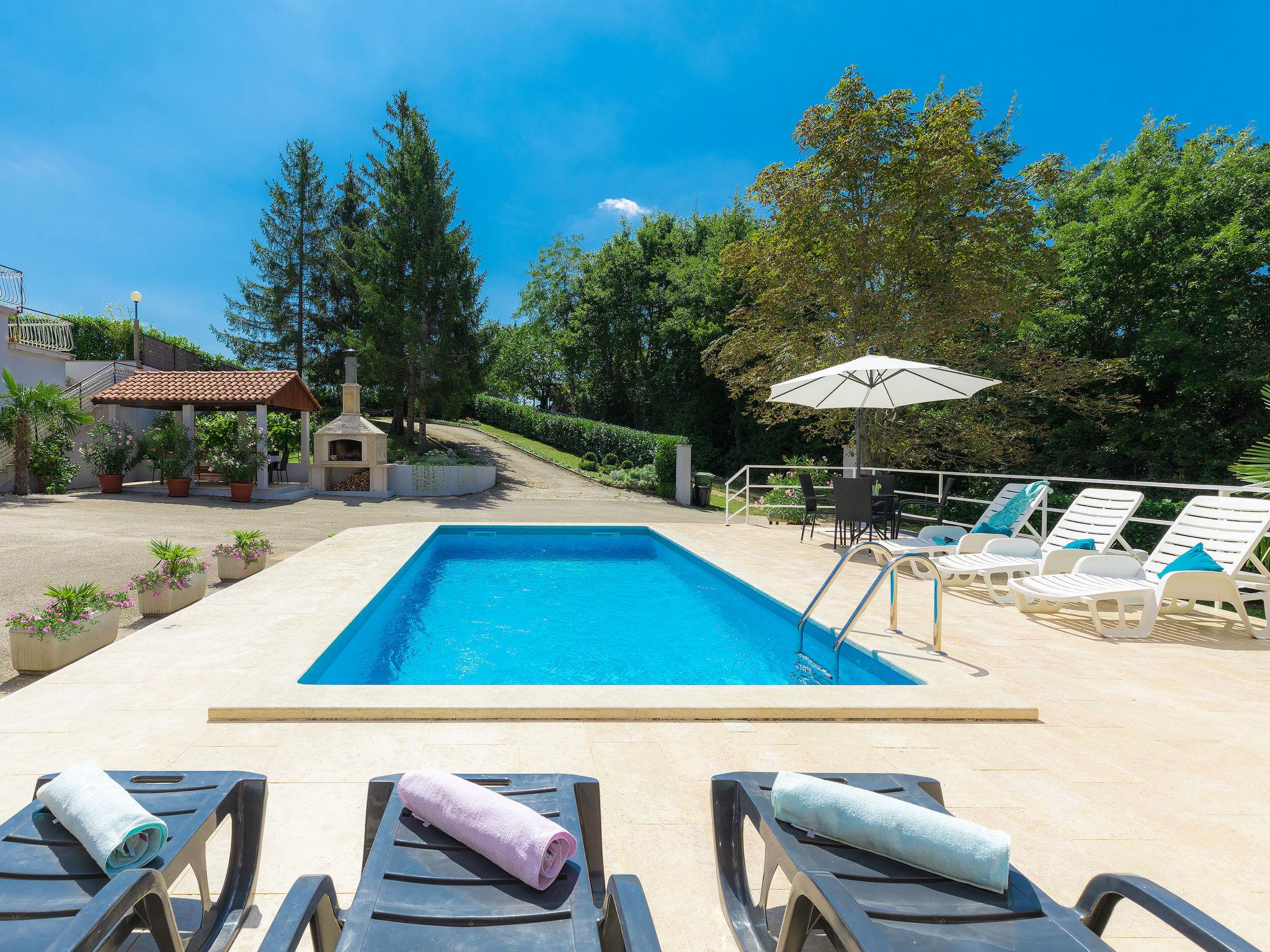 Single-family house "Liberat". In the hamlet Zgrablici 3 km from the centre of Žminj, 20 km from the sea. For shared use: property 5'000 m2 with lawn and plants. Private: swimming pool angular (7 x 3 m, 23 m2, depth 130 cm, seasonal availability: 15.May. - 30.Sep.). WC in the pool area, outdoor shower, arbour, terrace, garden furniture, barbecue, children's playground (slide, swing). In the house: internet access, washing machine. Parking on the premises. Shop 3 km, supermarket 3 km, restaurant 1 km, bus stop 4 km, rocky beach 28 km. Please note: the owner lives on the same property.