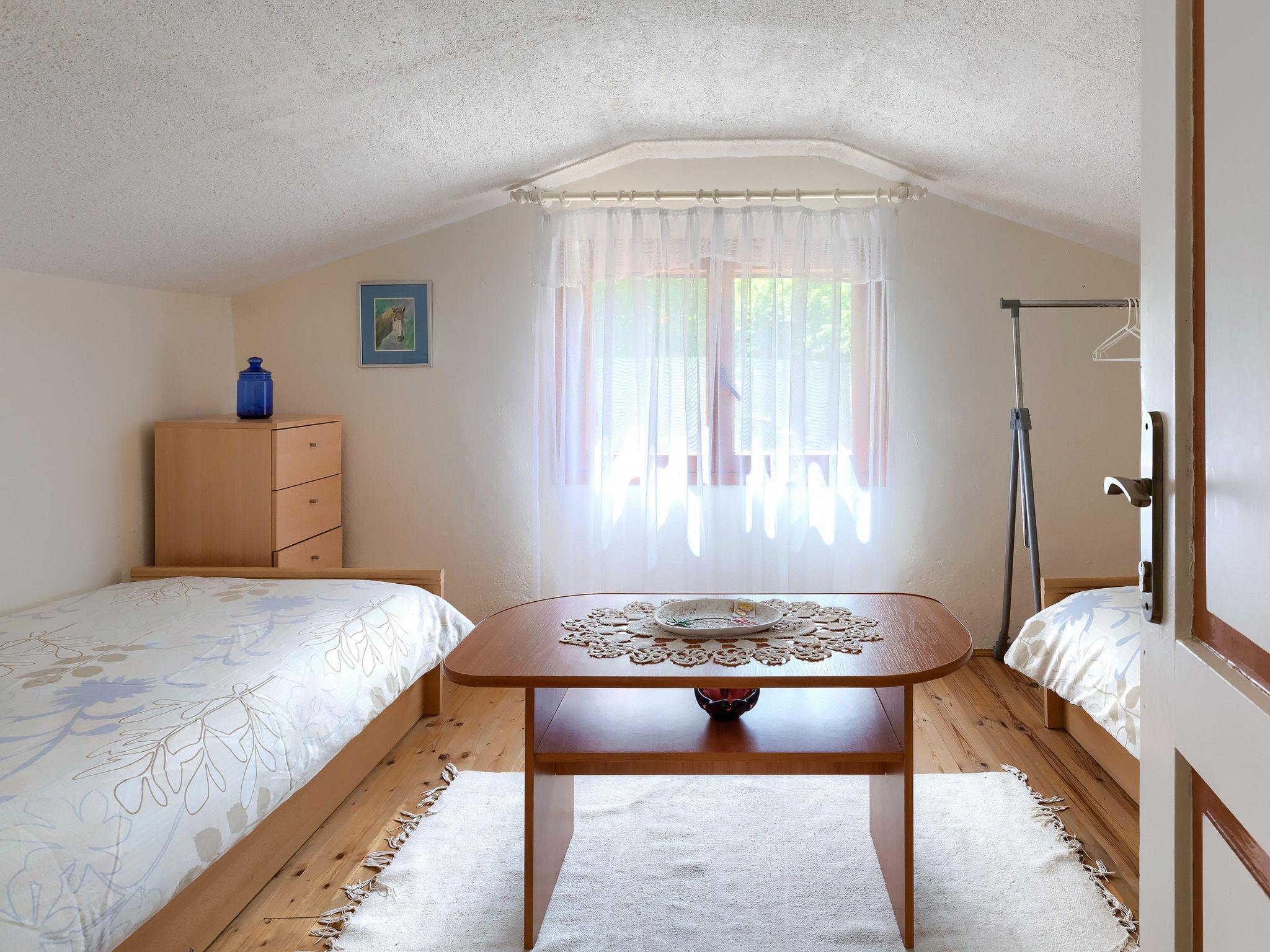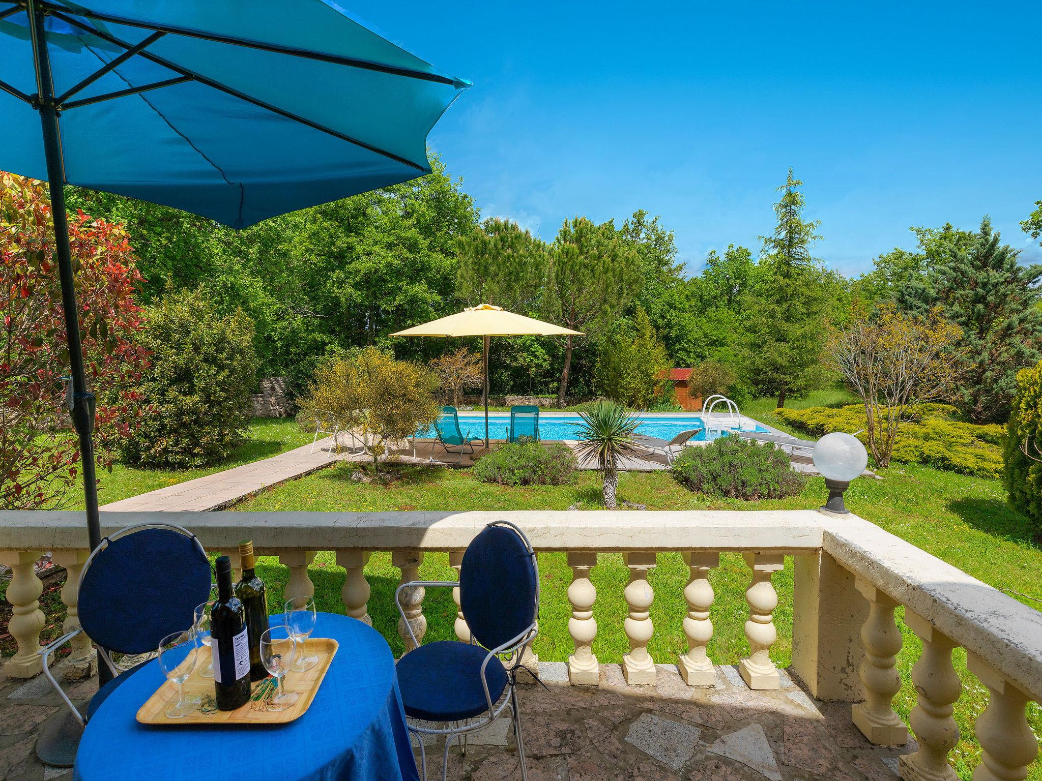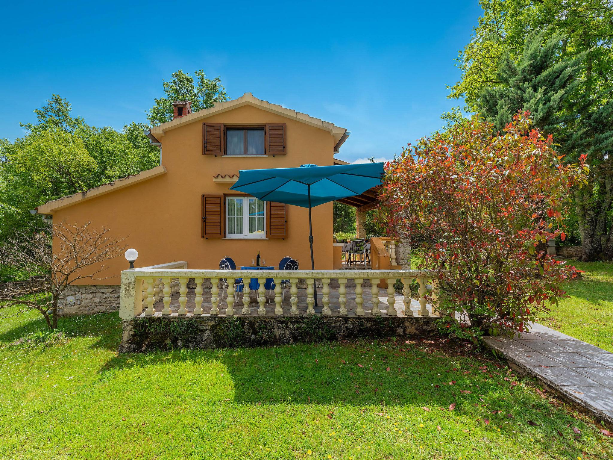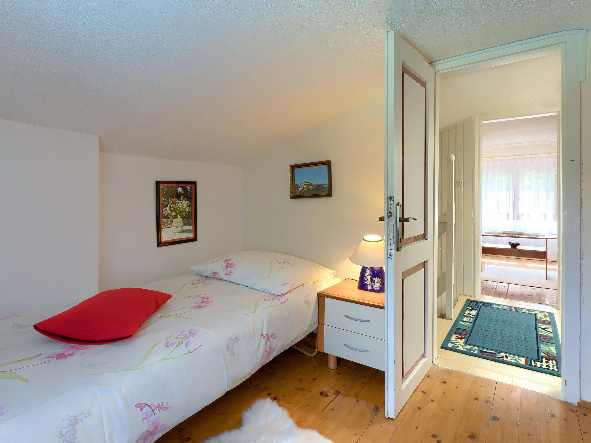 Single-family house "Lavanda", 2 storeys. In the hamlet Doncici 2 km from the centre of Kanfanar, 6 km from the centre of Žminj, 20 km from the centre of Rovinj, 18 km from the sea, in the countryside. Private: property 3'000 m2 (fenced) with lawn and trees, swimming pool angular (7 x 3 m, 24 m2, depth 120 cm, seasonal availability: 07.May. - 24.Sep.) with internal staircase. Patio, barbecue. In the house: internet access, washing machine. Motor access to the house (300 m via unmade road). Parking (for 3 cars) at the house on the premises. Shop 2 km, restaurant 6 km, bus stop 2.2 km, pebble beach 18 km. Please note: airfield 37 km from the property.